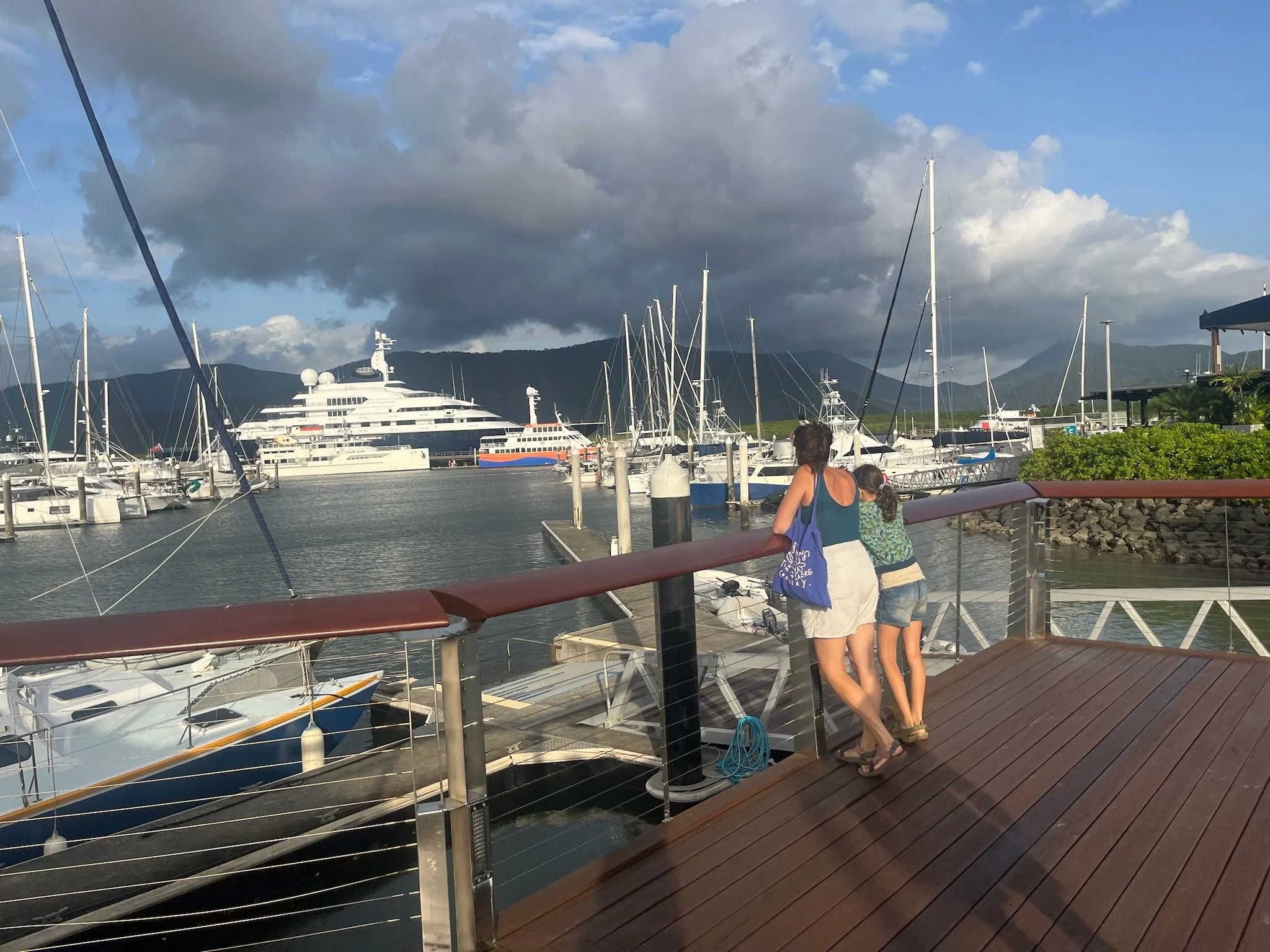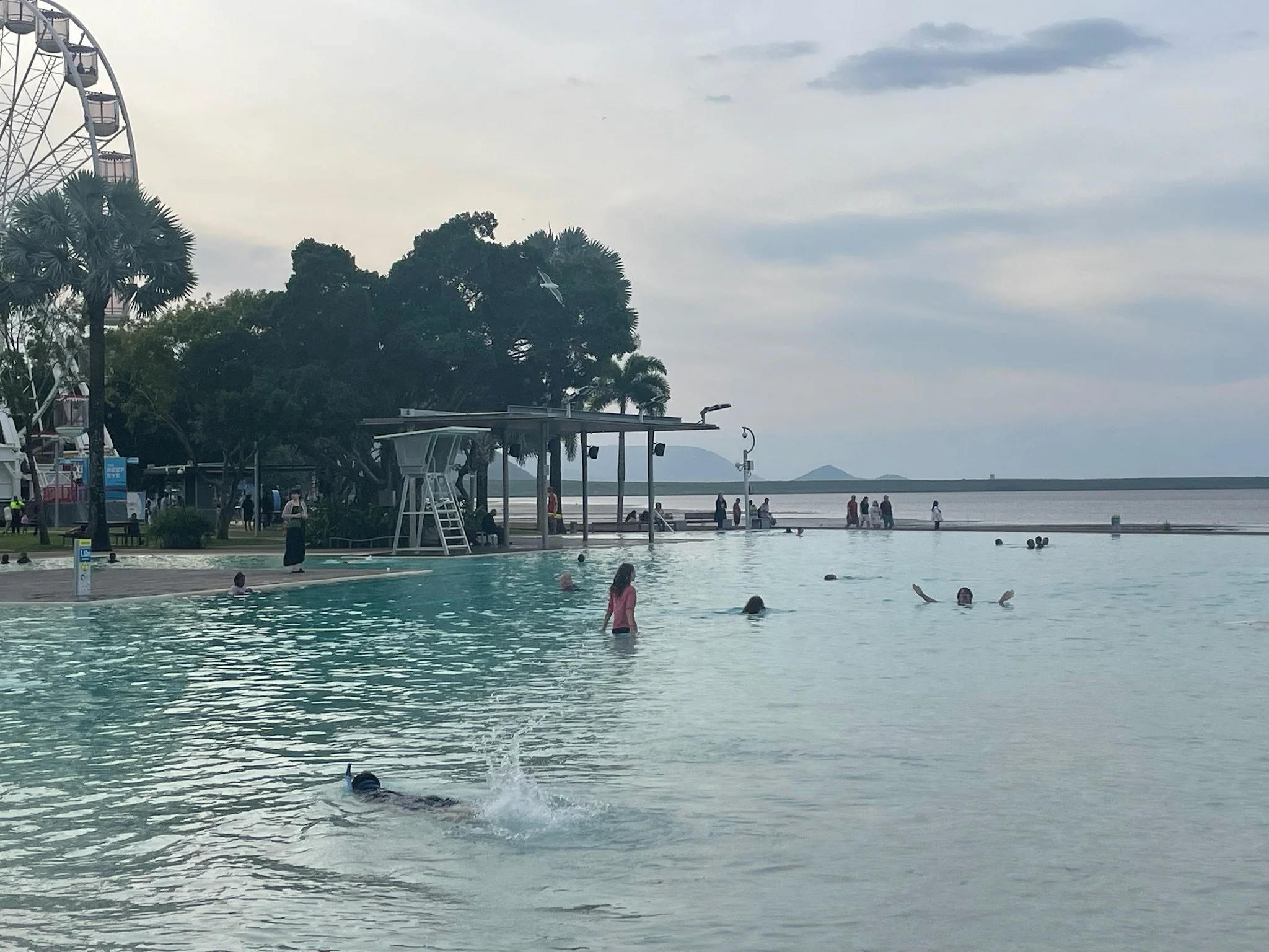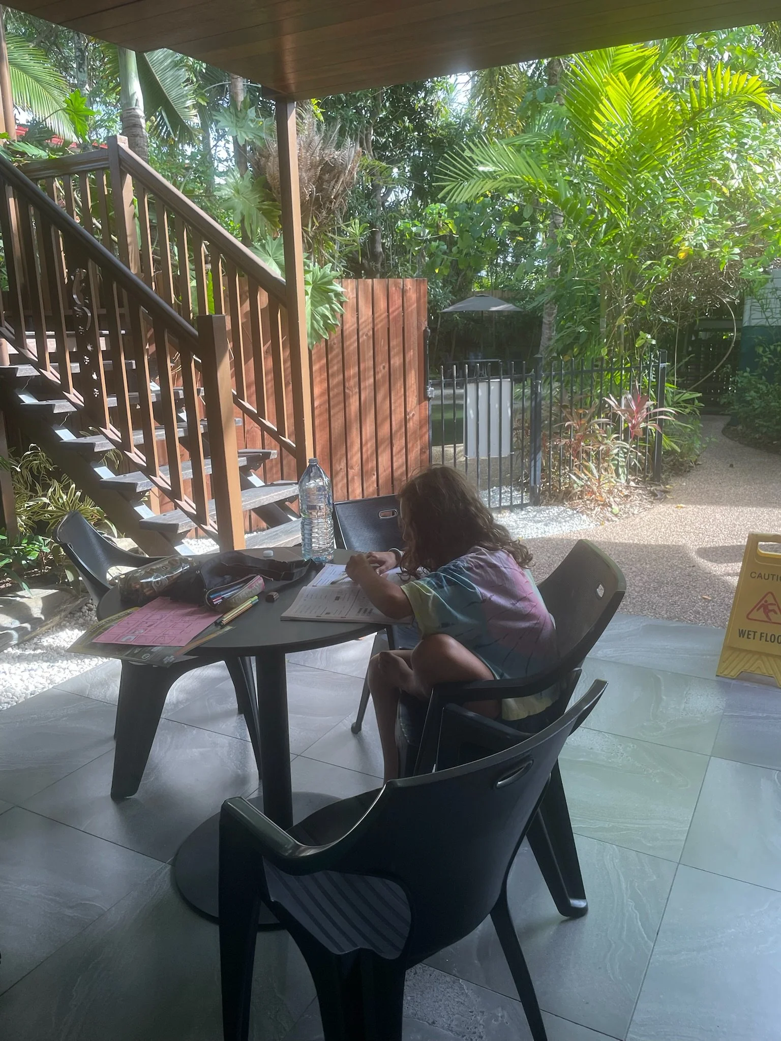 We blijven hier 5 dagen in Cairns en raken helemaal geacclimatiseerd. We lopen hier rond alsof het in Gent is. We gaan een paar keer zwemmen in de lagoon, eten in de nightmarket, wandelen naar de supermarkt, kopen een nieuw badpak voor Robin, homeschoolen, koffietje halen,.. De Traveller’s Paradise Hostel is een leuke plek, we zitten hier op ons gemak. Cairns is Westers, maar tegelijkertijd toch ook niet.
