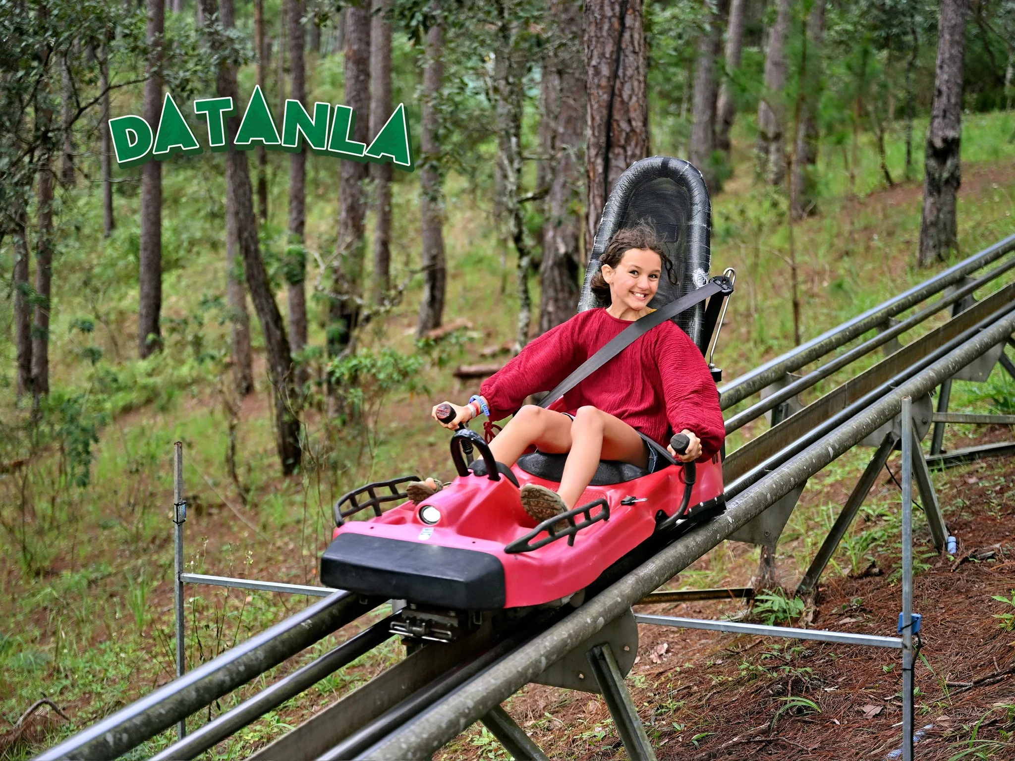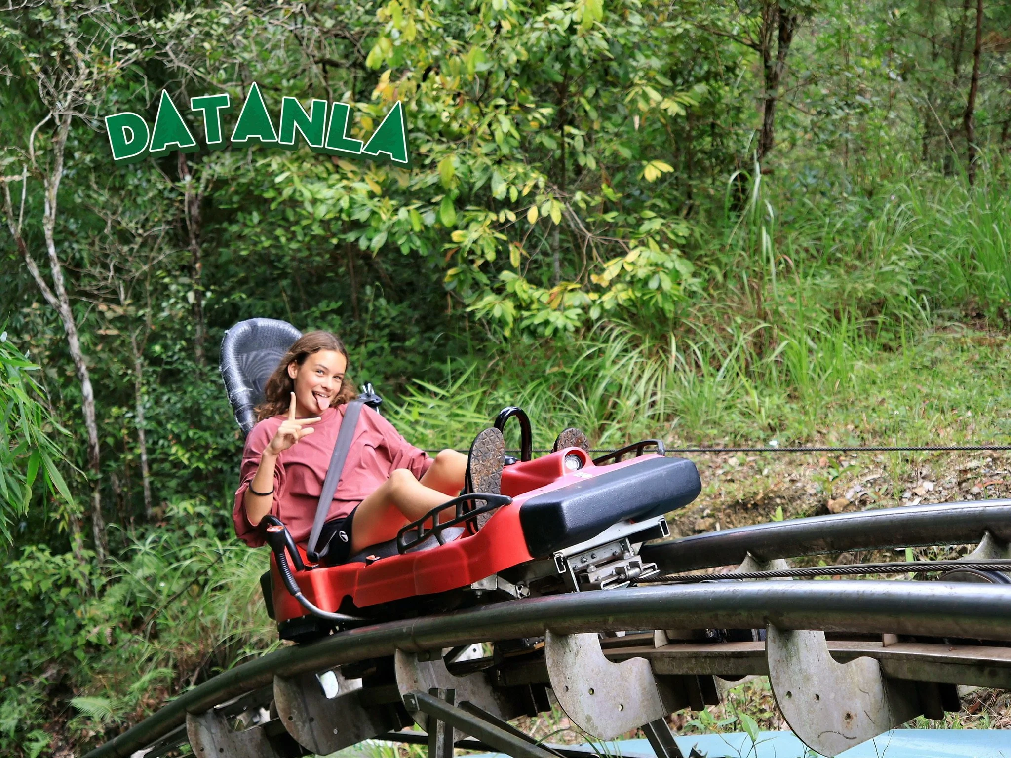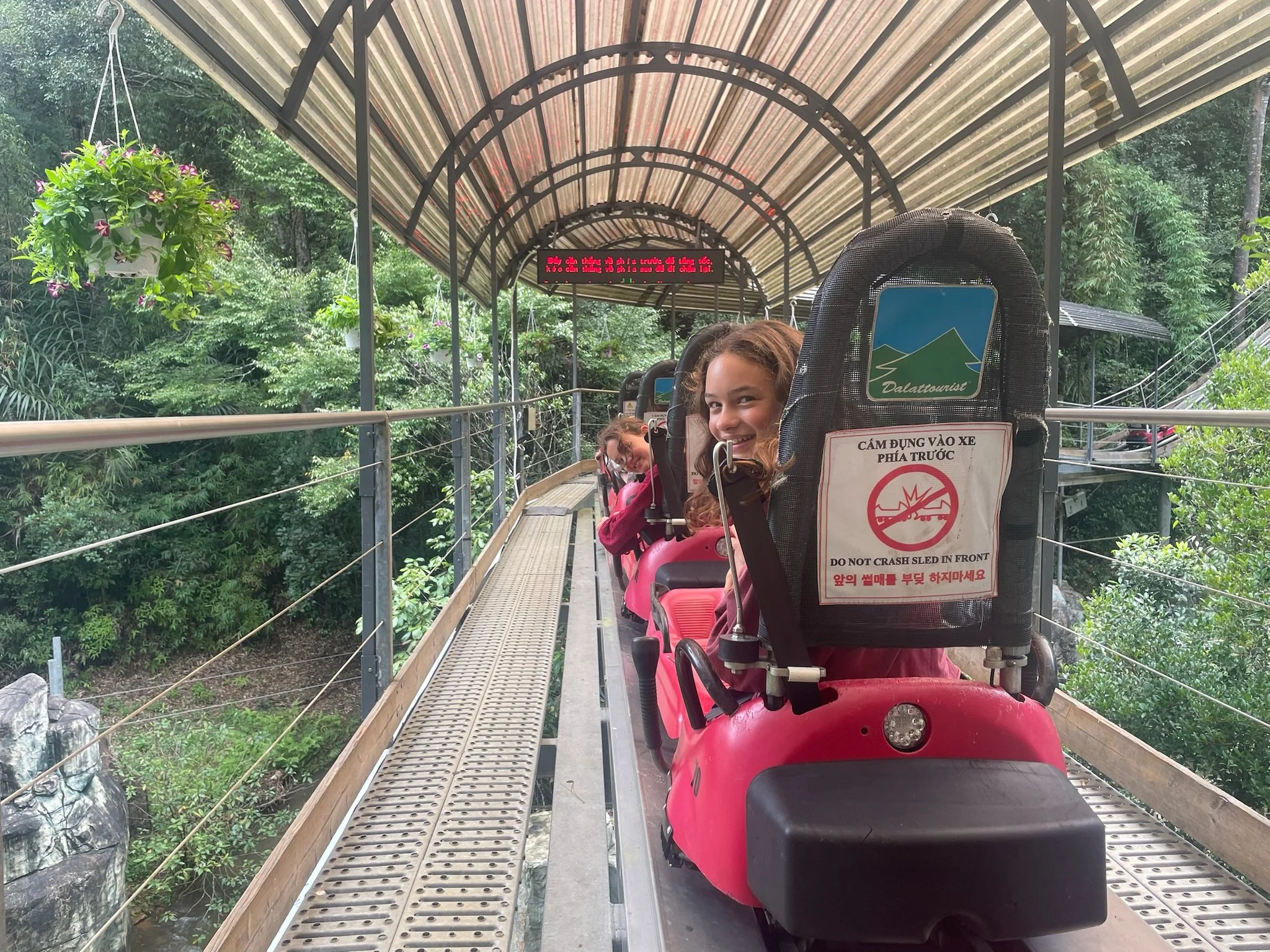 Op een dag huren we brommertjes en rijden we naar iets waar we allemaal naar uitkijken: de Datanla Alpine Coaster! Het is een bobslee parcours door watervallen en bossen. Je kan remmen en zo je eigen tempo bepalen, dus we beslissen om geen slee te delen zodat iedereen voluit op zijn eigen tempo kan gaan. Ik moet achteraan want ze vermoeden dat ik het meeste ga remmen :) Maar niets is minder waar want, in tegenstelling tot de kabelbaan en 99 % van de glijbanen in een waterpretpark, vind ik dit wel degelijk echt leuk! Al ben ik na de lange rit toch ook wat duizelig. Robin verlaat haar bobslee in een slecht humeur, er zaten immers trage meisjes voor haar en ze is niet voluit in de bochten kunnen gaan. Het is een emotie waar ze soms wat in kan blijven hangen, een mix van verontwaardiging en verongelijkt zijn. Er is steeds een klein relativeringsgesprekje nodig nadien; tenslotte kan je niet elke dag op een bobslee door de bergen zoeven en valt het dus, eigenlijk, allemaal toch wel reuzegoed mee. Het park heeft ook nog een hoogteparcours en een knettergekke zipline van meer dan een kilometer lang, en ook nog eens super hoog, boven de jungle, maar daar passen we voor. Er staan immers nog wat andere zaken op het programma voor die dag en aangezien het hier vaak ergens in de namiddag begint te regenen hebben we geen tijd te verliezen.