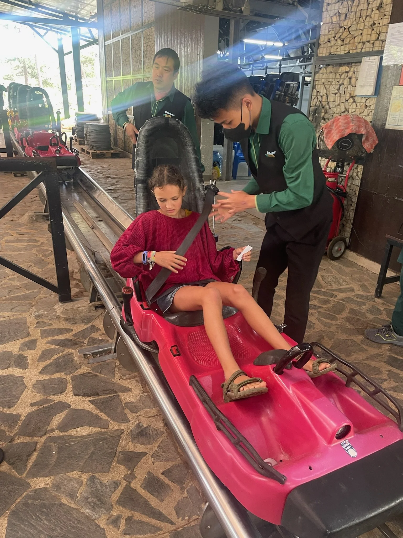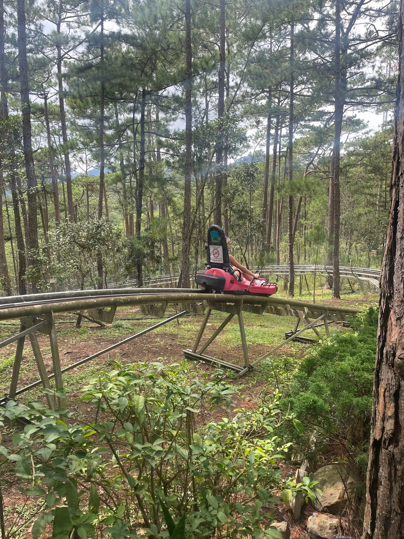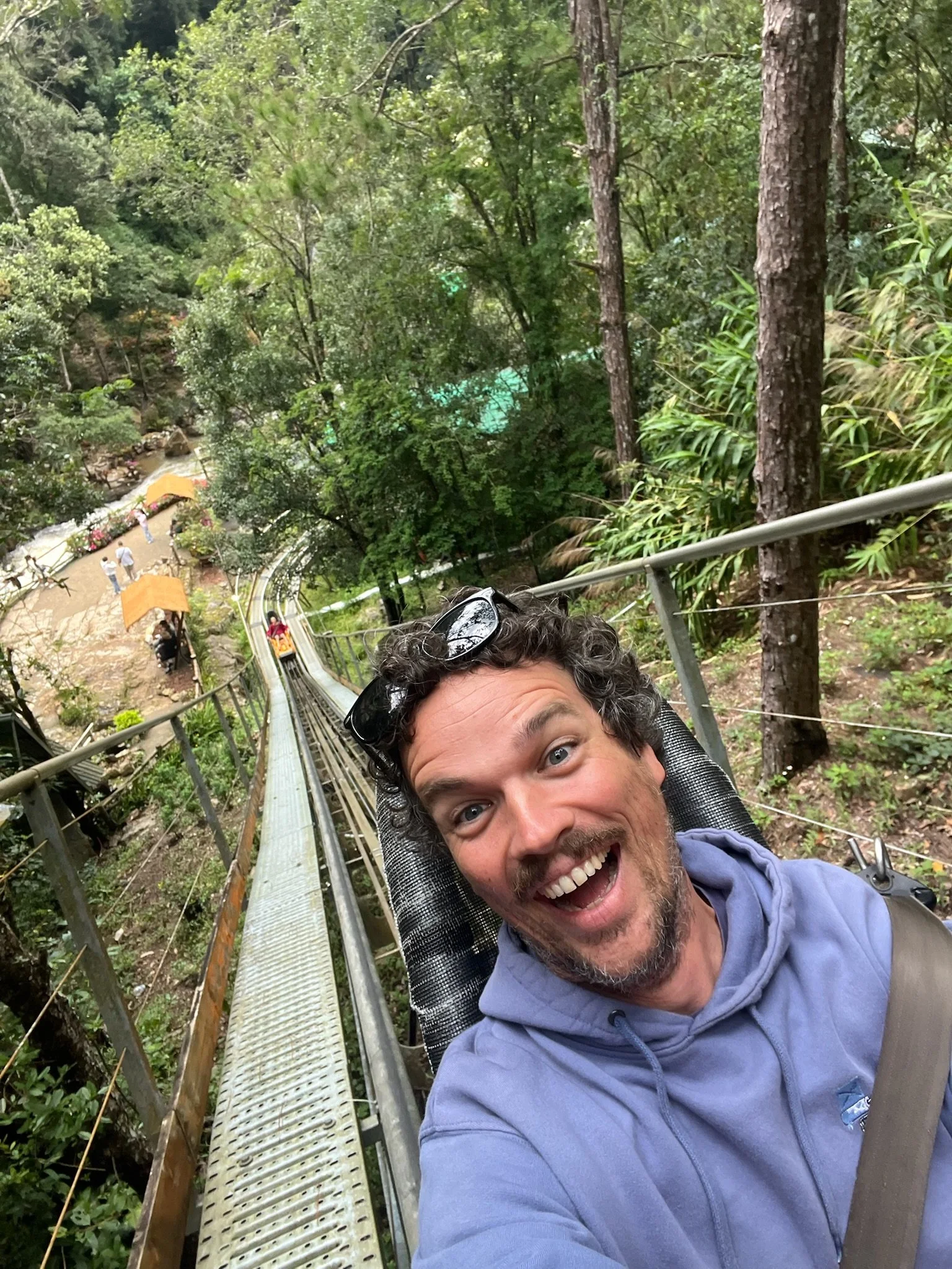 Op een dag huren we brommertjes en rijden we naar iets waar we allemaal naar uitkijken: de Datanla Alpine Coaster! Het is een bobslee parcours door watervallen en bossen. Je kan remmen en zo je eigen tempo bepalen, dus we beslissen om geen slee te delen zodat iedereen voluit op zijn eigen tempo kan gaan. Ik moet achteraan want ze vermoeden dat ik het meeste ga remmen :) Maar niets is minder waar want, in tegenstelling tot de kabelbaan en 99 % van de glijbanen in een waterpretpark, vind ik dit wel degelijk echt leuk! Al ben ik na de lange rit toch ook wat duizelig. Robin verlaat haar bobslee in een slecht humeur, er zaten immers trage meisjes voor haar en ze is niet voluit in de bochten kunnen gaan. Het is een emotie waar ze soms wat in kan blijven hangen, een mix van verontwaardiging en verongelijkt zijn. Er is steeds een klein relativeringsgesprekje nodig nadien; tenslotte kan je niet elke dag op een bobslee door de bergen zoeven en valt het dus, eigenlijk, allemaal toch wel reuzegoed mee. Het park heeft ook nog een hoogteparcours en een knettergekke zipline van meer dan een kilometer lang, en ook nog eens super hoog, boven de jungle, maar daar passen we voor. Er staan immers nog wat andere zaken op het programma voor die dag en aangezien het hier vaak ergens in de namiddag begint te regenen hebben we geen tijd te verliezen.
