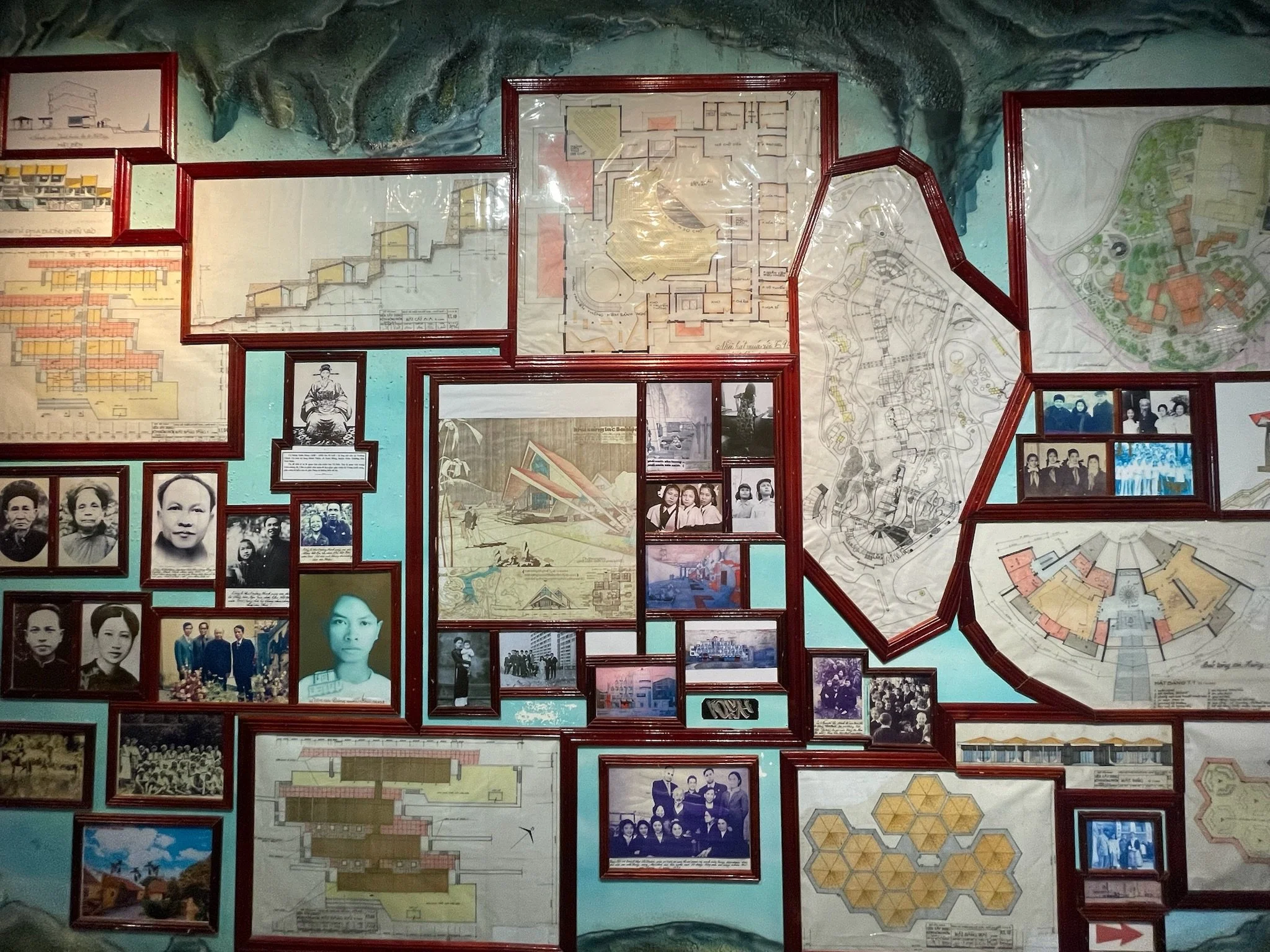 Hoewel het huis knotsgek is, ben ik nog het meest onder de indruk van de fotomuur van de architecte hoe ze tot dit project kwam. En welke weirdo’s hier allemaal aan meewerkten.