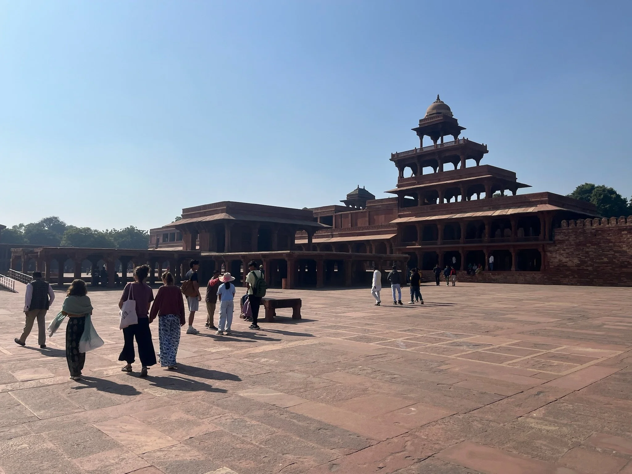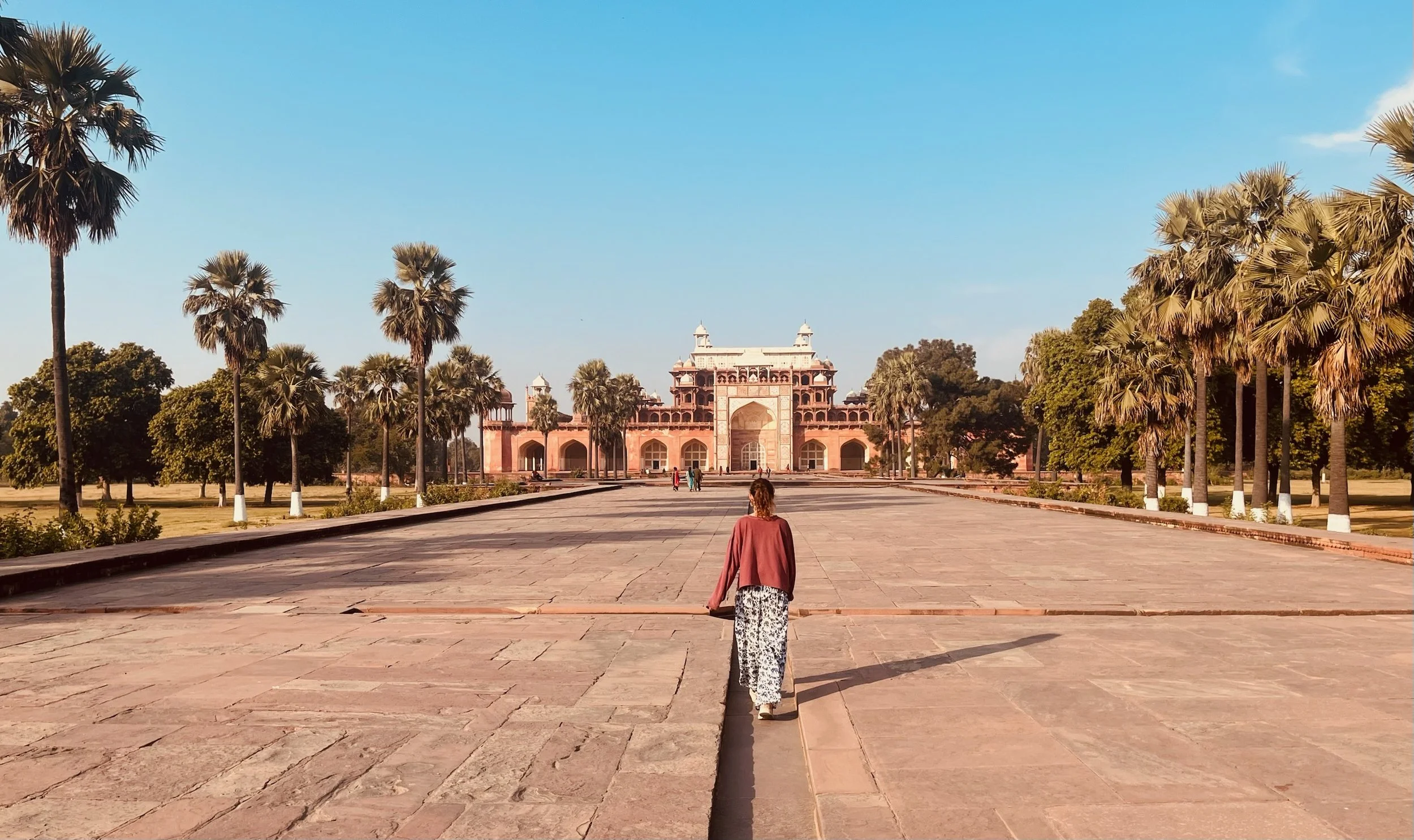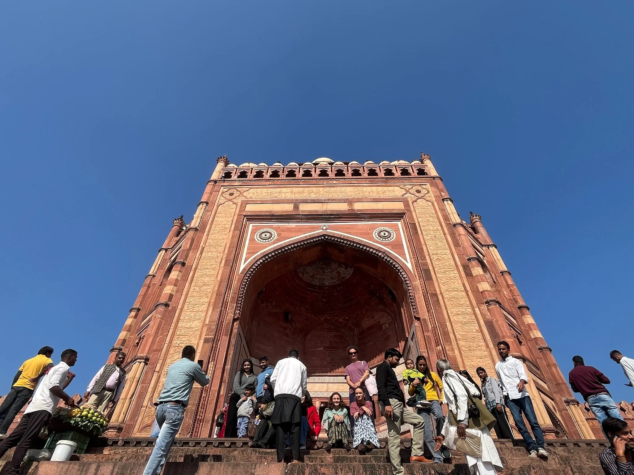 Als afsluiter van onze reis door India is Agra ook een volgend hoofdstuk in de Noord-Indische geschiedenis. Terwijl we in Rajasthan 1000 jaar overbrugd hebben met de periode van de Rajputs en de Hindoe-koninkrijken, duiken we hier in 1500 het moslim Mogul-rijk binnen. Deze Perzisch-Afghaanse heersers hadden het hier tussen 1500 en 1700 (voor de Britten arriveerden) voor het zeggen, vielen geregeld de koninkrijken in Rajasthan binnen en bouwden zich - zoals het goede heersers betaamt - uiteraard een ongeluk. De grootste Mogul-keizer is niet Shah Jahan van de Taj Mahal, maar Akbar The Great, zoals ze hem dan ook toepasselijk noemen. Hij was de derde in het rijtje (de grootvader van Shah dus) en toen het het niet echt vlotte om een opvolger voor de troon te produceren, ging hij samen met z’n vrouw ten rade bij een soefi heilige in Fatehpur Sikri. Welk standje die man precies heeft voorgeschreven blijft een raadsel, maar de zoon kwam er en Akbar was zo dankbaar dat hij dacht: awel, ik ga m’n volledige hoofdstad eens naar hier verplaatsen zie, hold my beer.