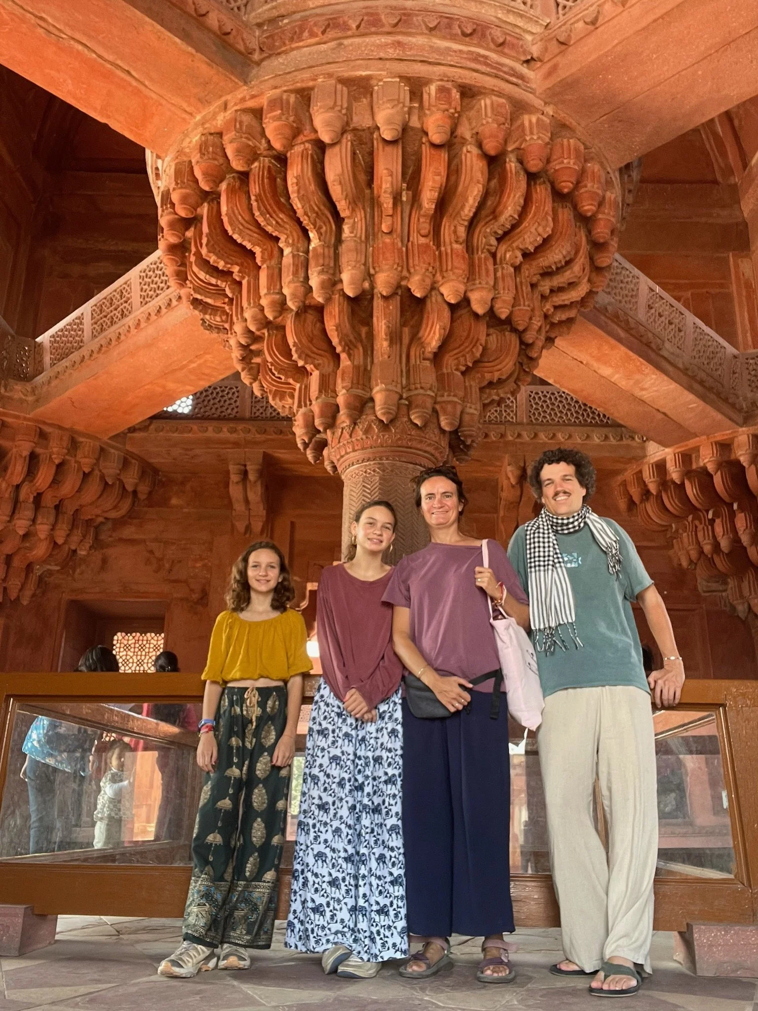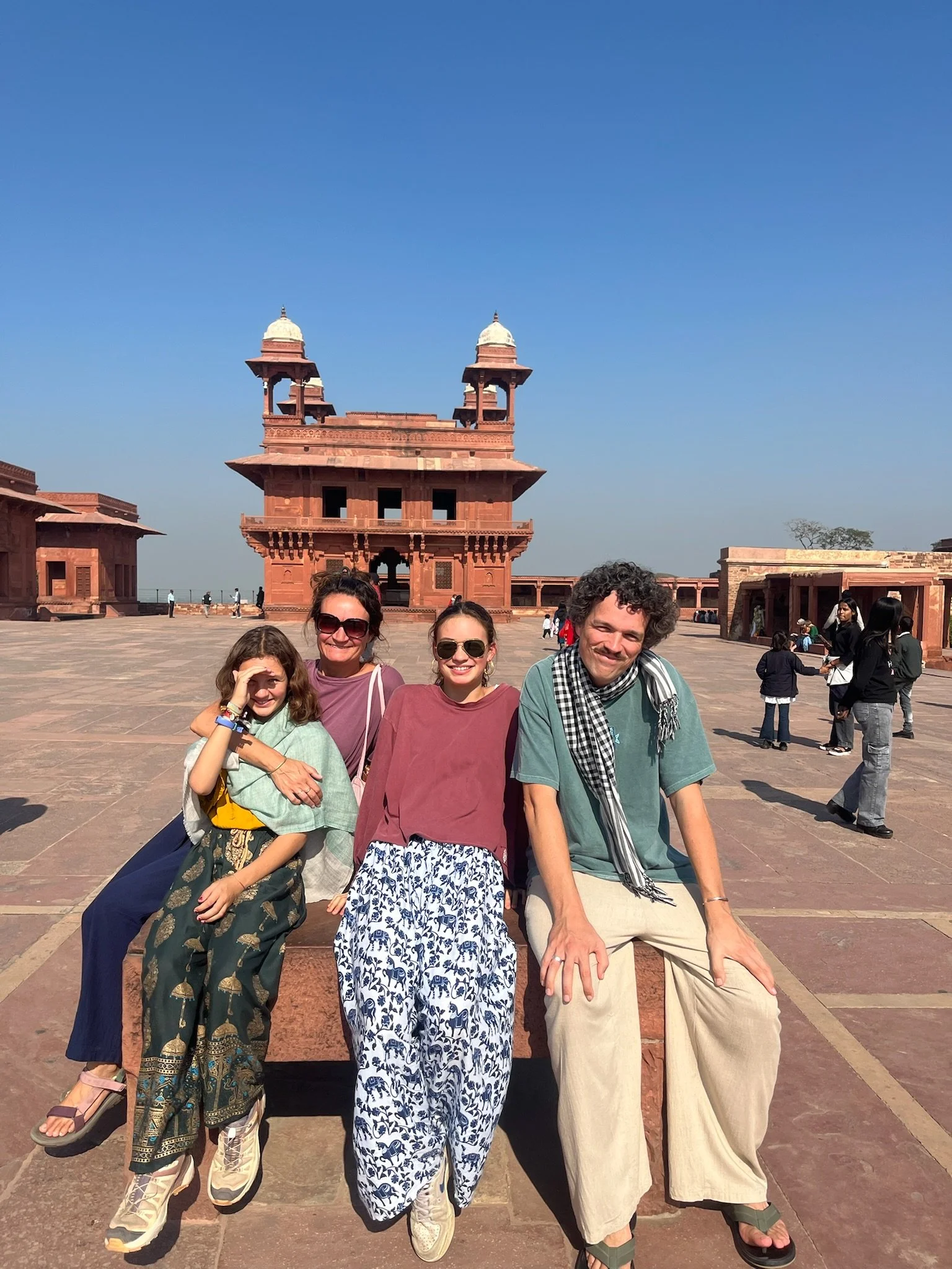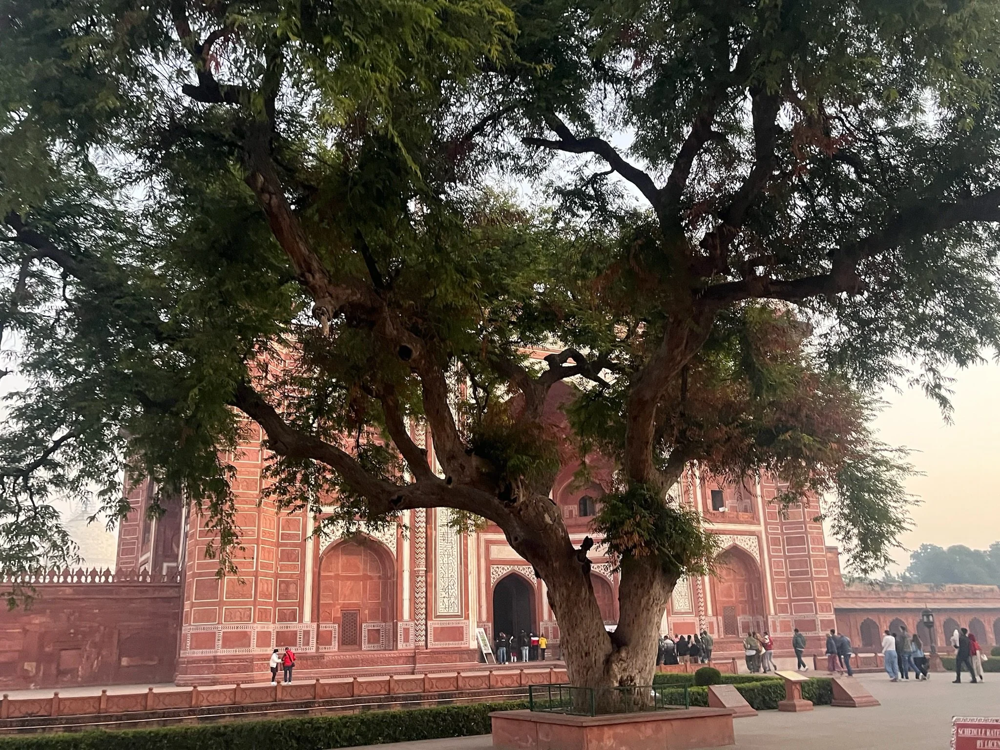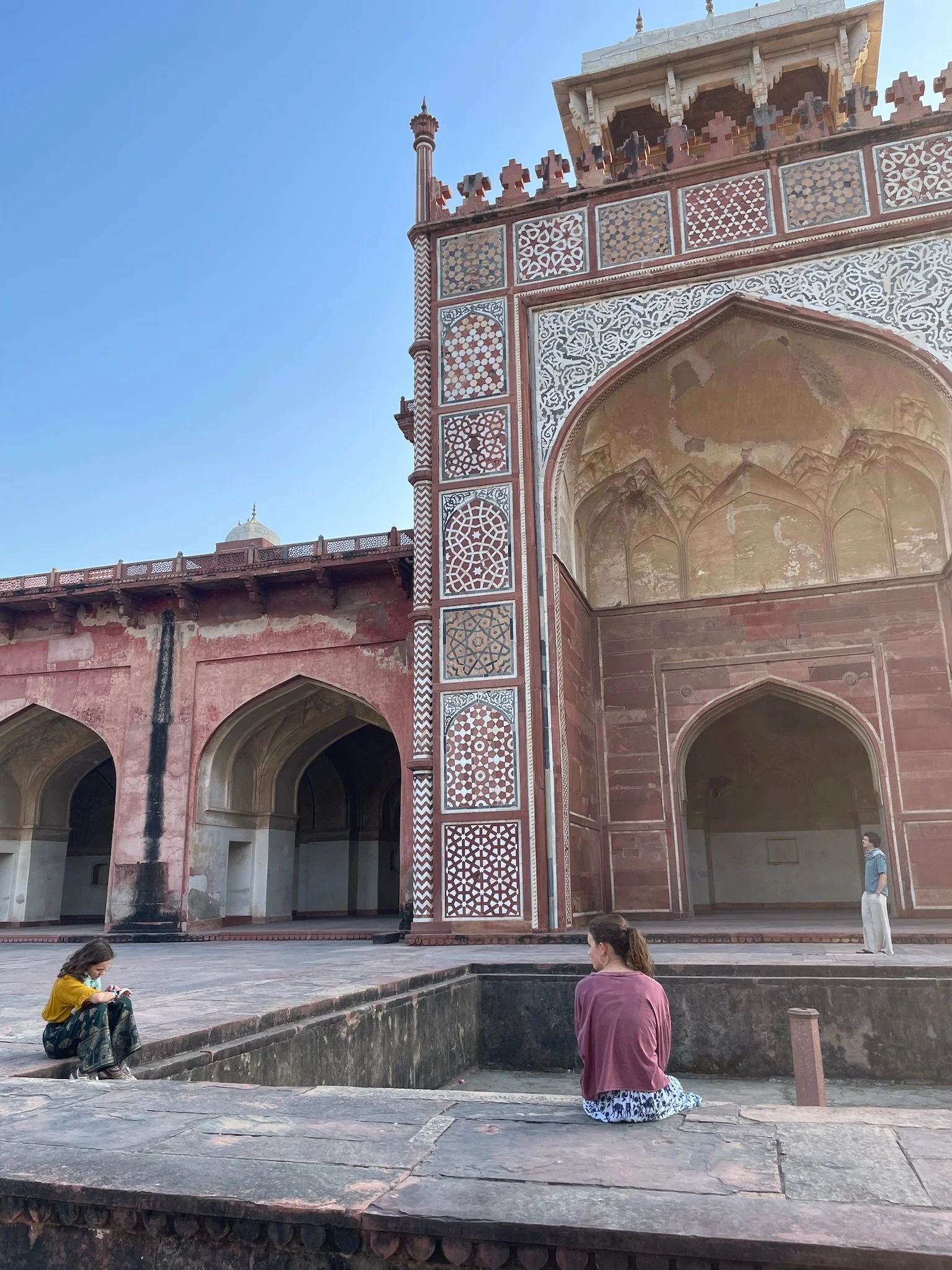 Als afsluiter van onze reis door India is Agra ook een volgend hoofdstuk in de Noord-Indische geschiedenis. Terwijl we in Rajasthan 1000 jaar overbrugd hebben met de periode van de Rajputs en de Hindoe-koninkrijken, duiken we hier in 1500 het moslim Mogul-rijk binnen. Deze Perzisch-Afghaanse heersers hadden het hier tussen 1500 en 1700 (voor de Britten arriveerden) voor het zeggen, vielen geregeld de koninkrijken in Rajasthan binnen en bouwden zich - zoals het goede heersers betaamt - uiteraard een ongeluk. De grootste Mogul-keizer is niet Shah Jahan van de Taj Mahal, maar Akbar The Great, zoals ze hem dan ook toepasselijk noemen. Hij was de derde in het rijtje (de grootvader van Shah dus) en toen het het niet echt vlotte om een opvolger voor de troon te produceren, ging hij samen met z’n vrouw ten rade bij een soefi heilige in Fatehpur Sikri. Welk standje die man precies heeft voorgeschreven blijft een raadsel, maar de zoon kwam er en Akbar was zo dankbaar dat hij dacht: awel, ik ga m’n volledige hoofdstad eens naar hier verplaatsen zie, hold my beer.