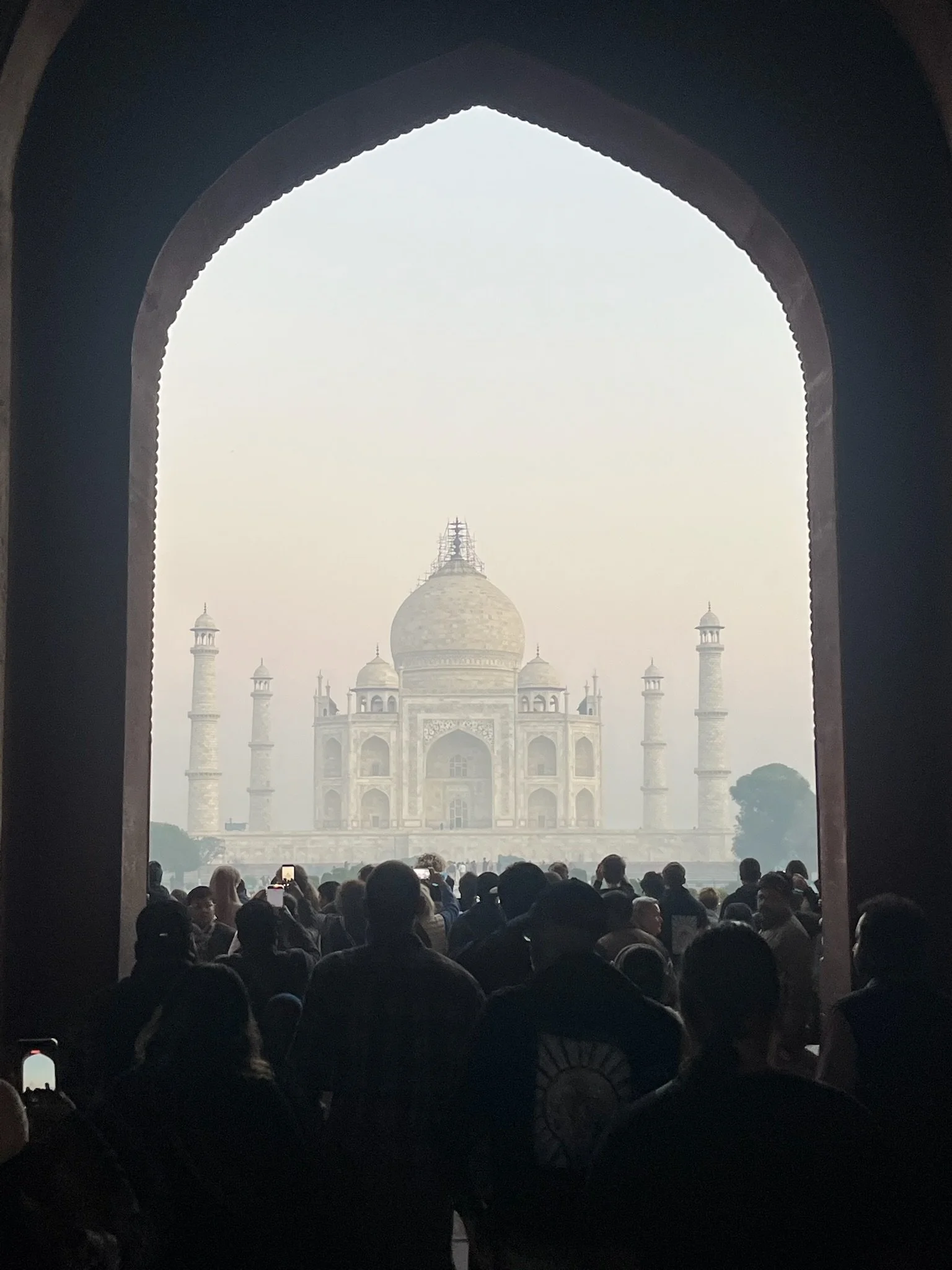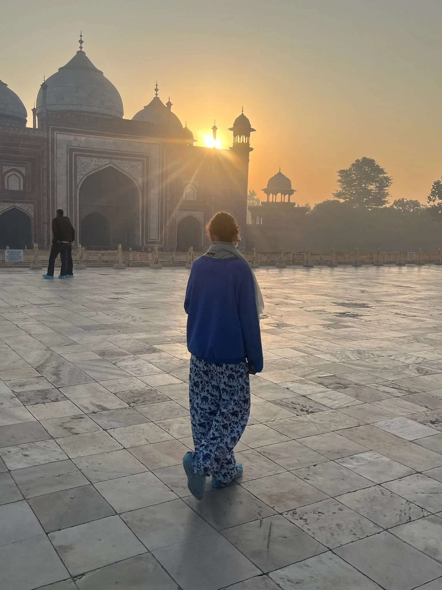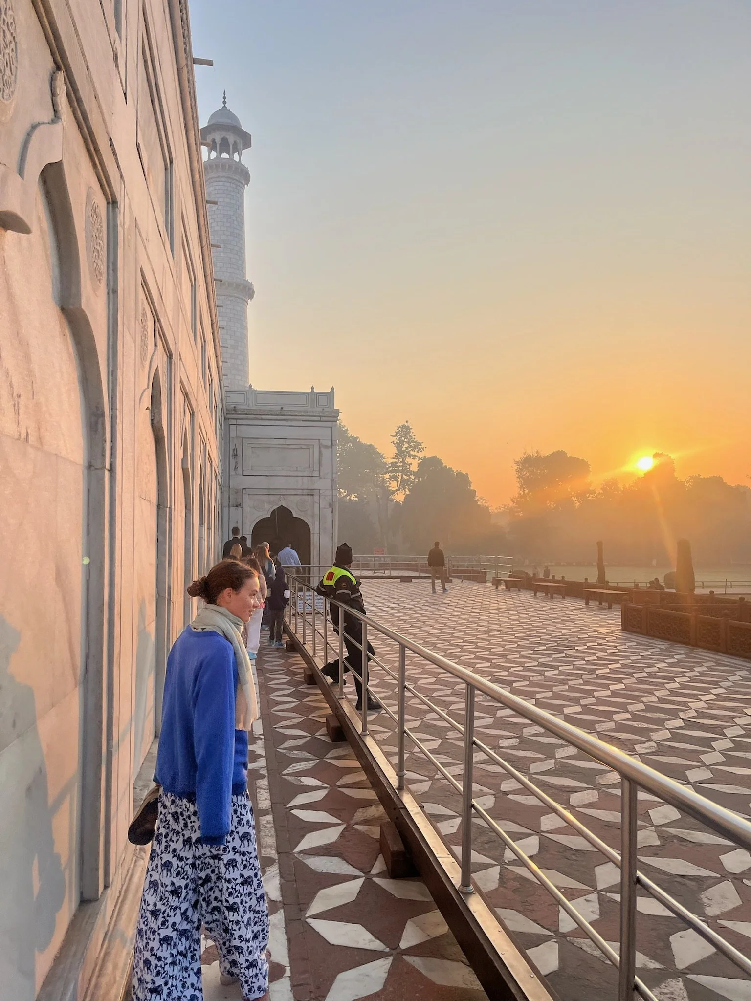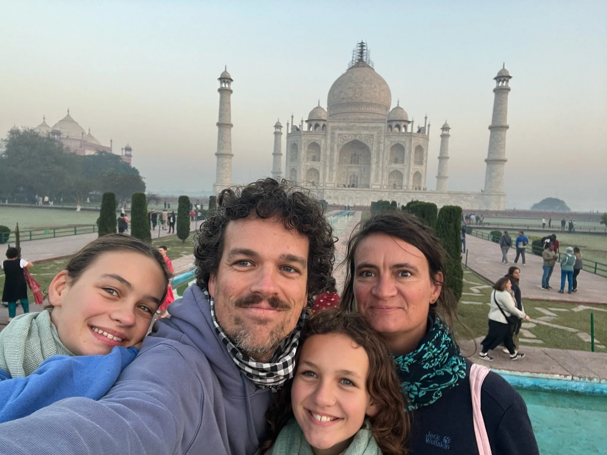 Dé must-see in Agra is uiteraard de Taj Mahal. Of zoals ingewijden mogen zeggen: D’n Taj. Wij doen niet flauw en beslissen om na onze treinrit van een dikke twaalf uur de volgende morgen toch om 5u30 op te staan. Het gebeurt niet elke dag dat je de zonsopgang kan meemaken bij een wereldwonder. We wandelen tien minuutjes in het donker van onze homestay naar de Western Gate, passeren alle security checks en nadat Griet haar briquet heeft afgegeven (je kent ze, voor ze ‘t weet steekt ze’t spel daar in brand) mogen we in het spoor van een horde andere toeristen naar binnen.