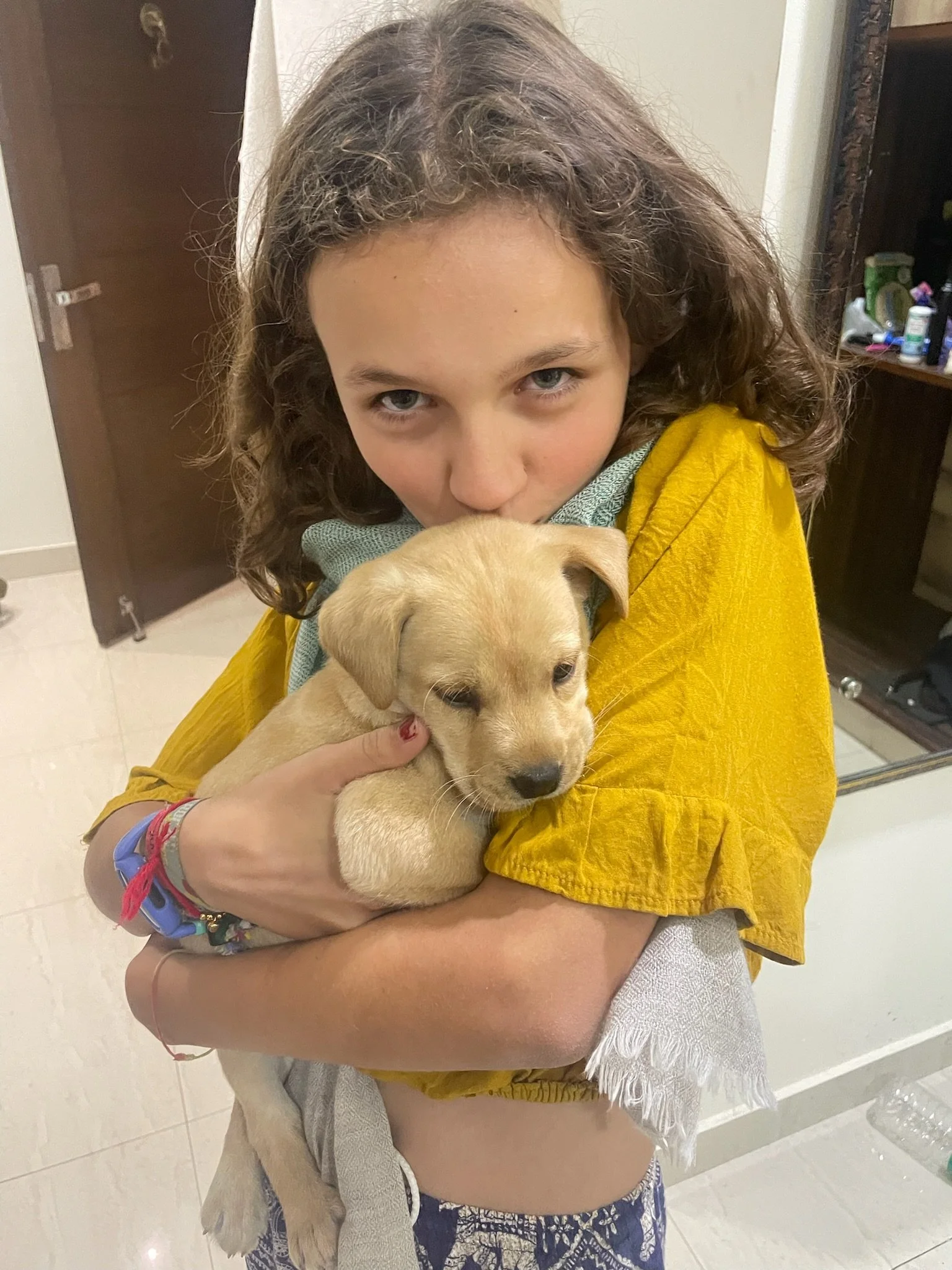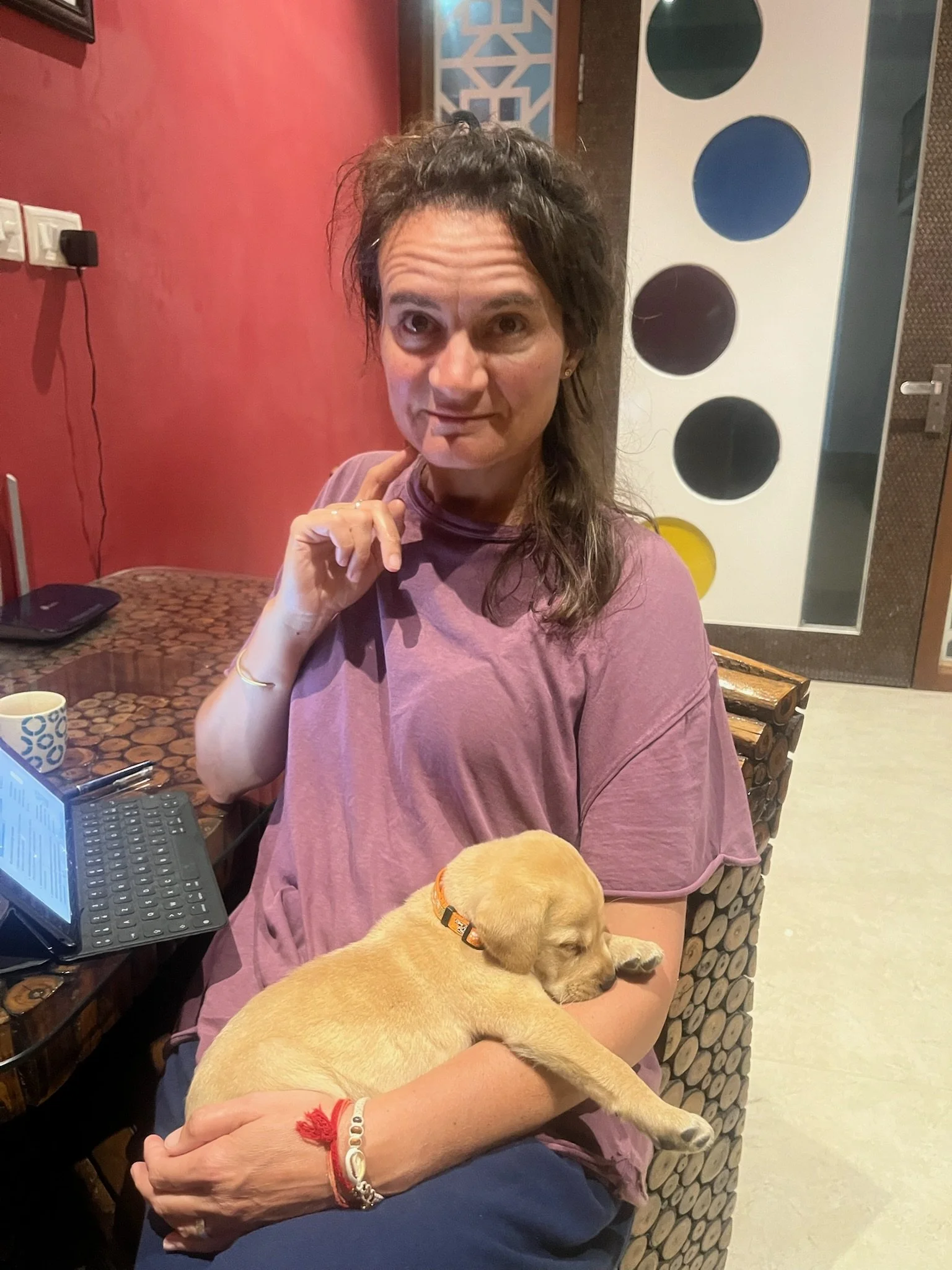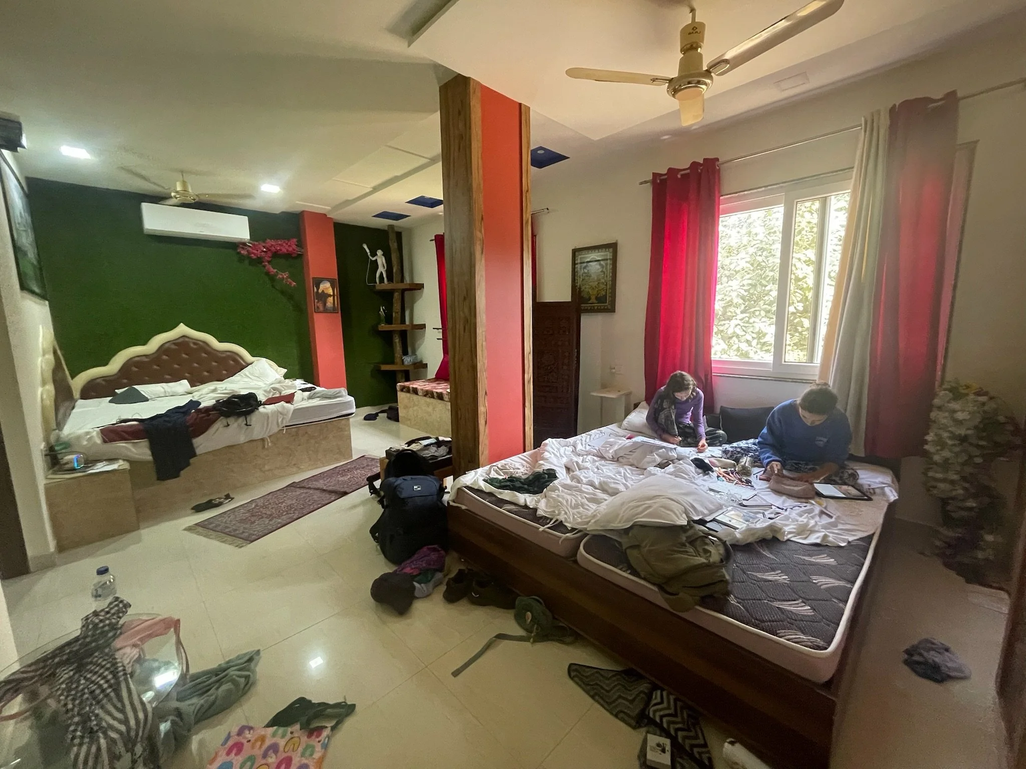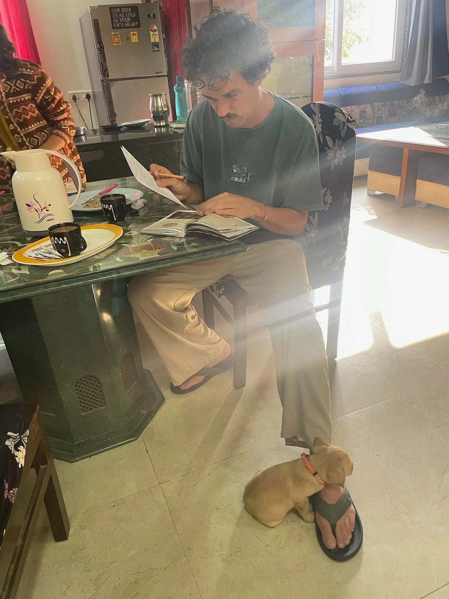 We zijn twee dagen in Agra en maken van de extra tijd gebruik om het homeschoolen zo goed mogelijk af te werken, kwestie van nooit meer op Smartschool te moeten inloggen en de leerkrachten een update te kunnen doorsturen voor de laatste klassenraden. Ik heb het zo stilaan wel gehad met cijferen met komma-getallen, de bouw van het oog, het opstellen van chemische reacties of de lichtbreking in bolle lenzen en qua geschiedkundige periodes is het leenstelsel nu niet bepaald Griet haar favoriet, om van de Franse impératif of bijwoordelijke bepalingen in samengestelde zinnen nog maar te zwijgen. Soit, ik hoop dat we geslaagd zijn en goeie punten krijgen. Sam en Robin hebben hun ouders alleszins voorbeeldig geduld als leerkracht, weliswaar met frisse tegenzin. Het blijft ten slotte school, dus we gaan dat niet plots “leuk” vinden he zeg. In Agra is er tijdens de laatste lessen ook extra afleiding omdat de eigenaar er ineens met een kersverse extreem schattige puppy komt binnenwandelen “for my kids”, die echter pas over 2 dagen thuiskomen. Het beestje is dus even helemaal van ons en steelt al spelend, klauwend, knuffelend en jankend onze harten. Als we vertrekken merkt Sam niet helemaal onterecht op dat we nog nooit zo hard bijná overtuigd waren om thuis zelf een exemplaar aan te schaffen. Ze heeft haar alvast een account aangemaakt op adopteereendier.be, maar vooralsnog zie ik het toch nog niet zo direct gebeuren met Diesel, Stefaantje of Missa.