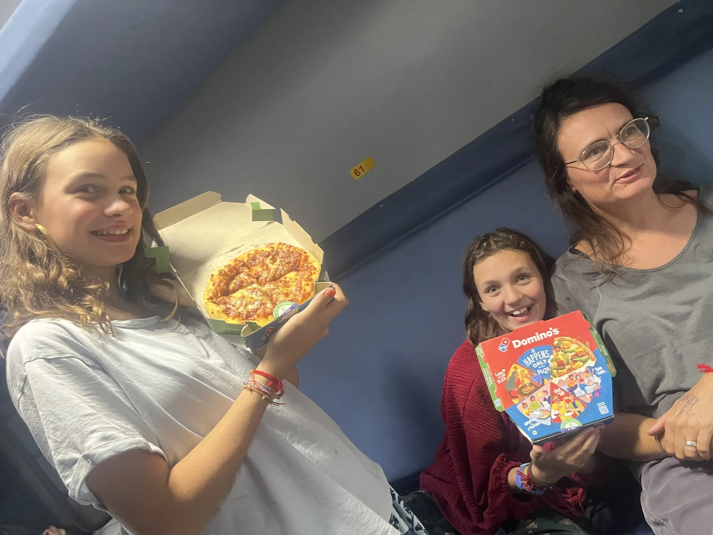 Wat je tijdens het reizen ook leert is dat er weinig “nooit”, “altijd”, “niemand” of “iedereen” bestaat. Als je na een tijdje denkt dat je een land, cultuur of gebruik eindelijk begrijpt en er een uitspraak over doet om het in een hokje te steken, mag die boutade twee steden verder gegarandeerd weer de vuilbak in. Op het terras in Jodhpur, wachtend op onze trein, kijken we naar de eindeloze stroom verkeer. “Wat ook zot is”, zegt Griet, “is dat niemand hier een helm draagt.” Waarna uiteraard ineens de ene na de andere brommer mét helm passeert. “Je kan over Indische chaos veel zeggen”, antwoord ik, “maar ondertussen hebben we al zes keer de trein genomen en dat hebben ze hier echt goed geregeld.” Waarop onze volgende met 3 uur vertraging vertrekt en er onderweg nog 1 uur bijlapt. Na drie weken rondrijden in Rajasthan ben ik er ook zeker van dat er echt nérgens iets westers te bespeuren is, tot we plots ontdekken dat we Domino’s pizza kunnen bestellen óp de trein. Je moet op voorhand aanduiden in welk station je de pizza geleverd wil hebben, dus we wagen het erop en gaan voor 3 margherita’s in Jaipur. Omdat onze trein dus bijna 4 uur te laat is, hebben we er weinig hoop op als we rond 16u het station binnen tuffen, maar nog voor we goed en wel stil staan, komt er een plaatselijke Deliveroo-boy enthousiast zwaaien aan ons vensterke. De pizza’s zijn warm en smaken heerlijk. India, dat is nu eens een land waar iedereen altijd vriendelijk is en niemand ooit zijn werk niet goed doet.