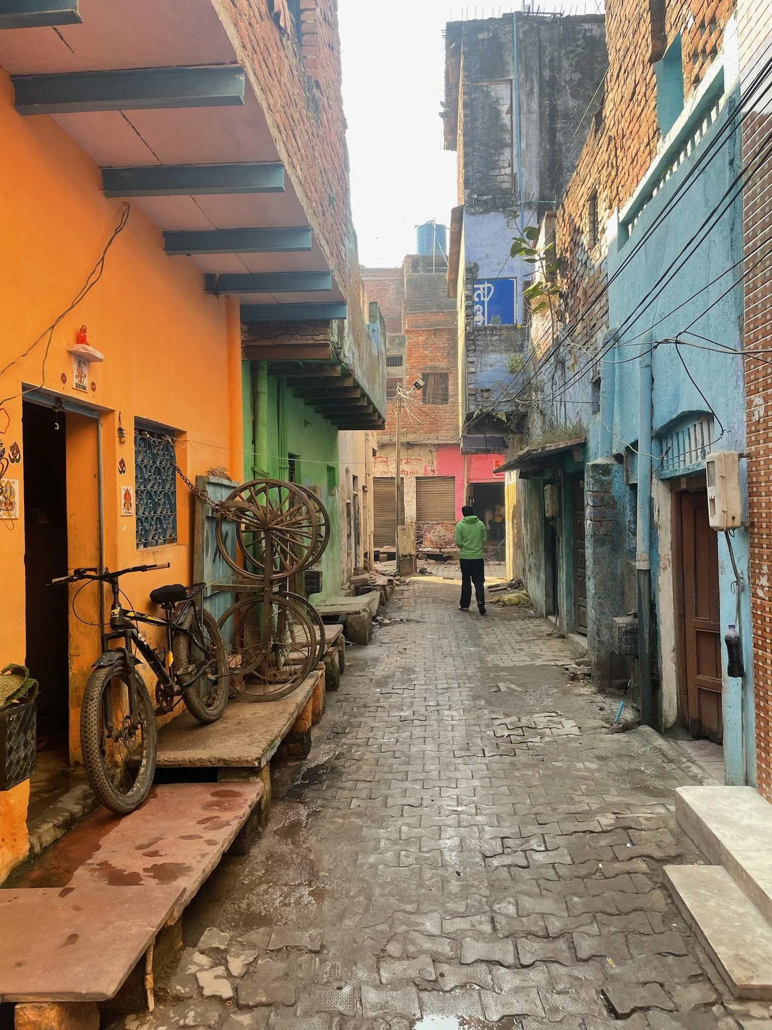 Na onze uitgebreide fotosessie gaan we voor een snelle ontbijtstop in de wijk naast de Taj Mahal (‘t is ten slotte nog maar 9u) en wandelen we door de kleine straatjes terug richting de hostel. De Agra Hideout is me ook weer een plek. De eigenaar blijkt een tandarts te zijn, die z’n huis heeft omgebouwd tot hostel voor “medical tourists”, die een weekje willen verpozen in de schaduw van de Taj Mahal, terwijl ze hun gebit taj mahal white laten bleachen of wachten op een nieuw implantaat. ‘t Is veruit de properste plek waar we in 3 weken India gezeten hebben en ook de minst charmante. De eigenaar is vriendelijk, daar niet van, maar over z’n landgenoten in de toeristische sector heeft hij niet veel goeds te zeggen. De tuktuk-drivers zijn oplichters die hun geld verdoen met gokken en de gidsen zijn nog veel erger. ‘t Is niet de eerste keer dat ‘t ons hier opvalt dat good karma verzamelen vooral voor de bühne is. Dagelijks naar een tempeltje wandelen, een gebedje voor Krishna, een aalmoes geven aan een bedelaar, geen probleem. Maar ondertussen wordt er achter de rug stevig geroddeld. Don’t trust anyone: de gidsen, de drivers, de moslims, de handelaars, de restaurants,… ze zijn allemaal jaloers op het succes van de enige eerlijk Indiër, die hier nu toevallig voor jullie zit, wat een geluk! Vishnu hoort alles, behalve als je fluistert.