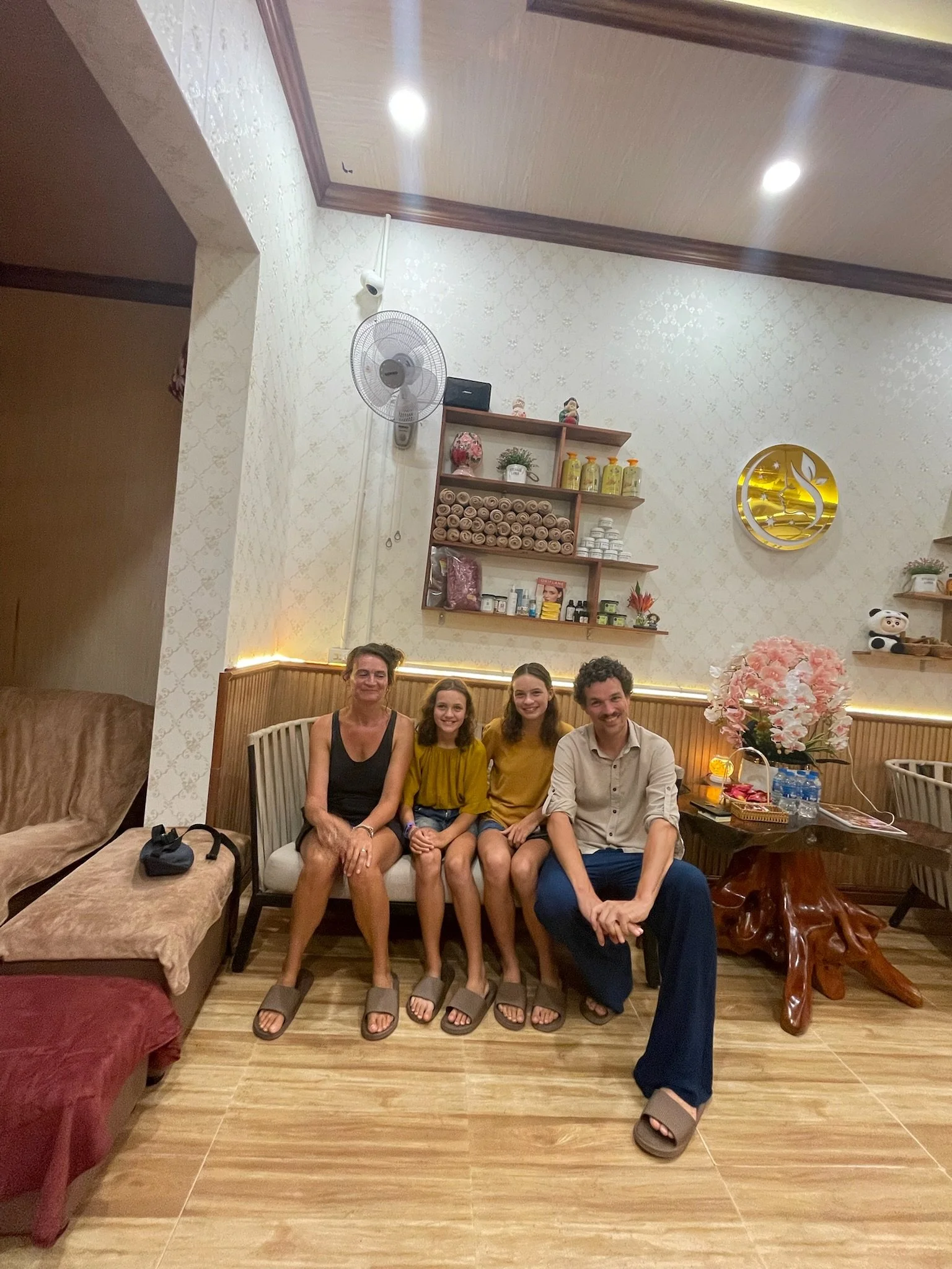 Om toch nog een snuif cultuur op te doen stoppen we op de terugweg nog bij de Dinh Cau vuurtoren in Duong Dong, maar die stelt niet veel voor en de night market in het stadje zelf spreekt ons tussen alle scooters, flashy winkels en neonreclame ook niet meteen aan. Wellicht zijn we voor eventjes genoeg geprikkeld en de volgende dag doen we het dus ook maar weer rustig aan. We brengen de namiddag door op het strand door in Ong Lang. ‘t Is een heerlijk kalme zee om in te zwemmen en we komen zowaar eindelijk wat in eilandstemming. It’s about time, want morgen zijn we hier weg. Omdat we ook niet eindeloos “maybe later!” kunnen blijven zeggen, voegen we uiteindelijk de daad bij het woord en gaat het volledige gezin Guns ‘s avonds ook voor een massage. “Thirty minutes? Not possible, only one hour!”, dus daar liggen we dan, met z’n vieren naast mekaar en de gordijntjes dicht, allemaal een full Vietnamese body massage, heel grappig. Robin vindt het de beste dag van haar leven en wil in België bij een welnessclub, desnoods richt ze er zelf een op. Ideeën voor hobby’s genoeg hier overigens ondertussen, want Sam zit sinds Phu Quoc bij 35 graden ineens in een ijshockey-loophole. Als Italië plots in Vietnam ligt, kan werkelijk alles.