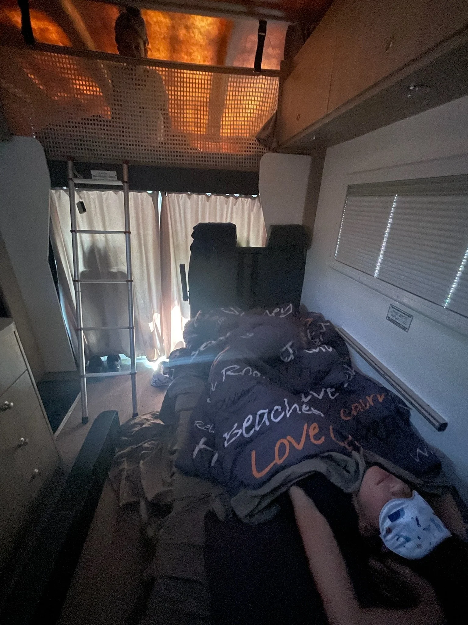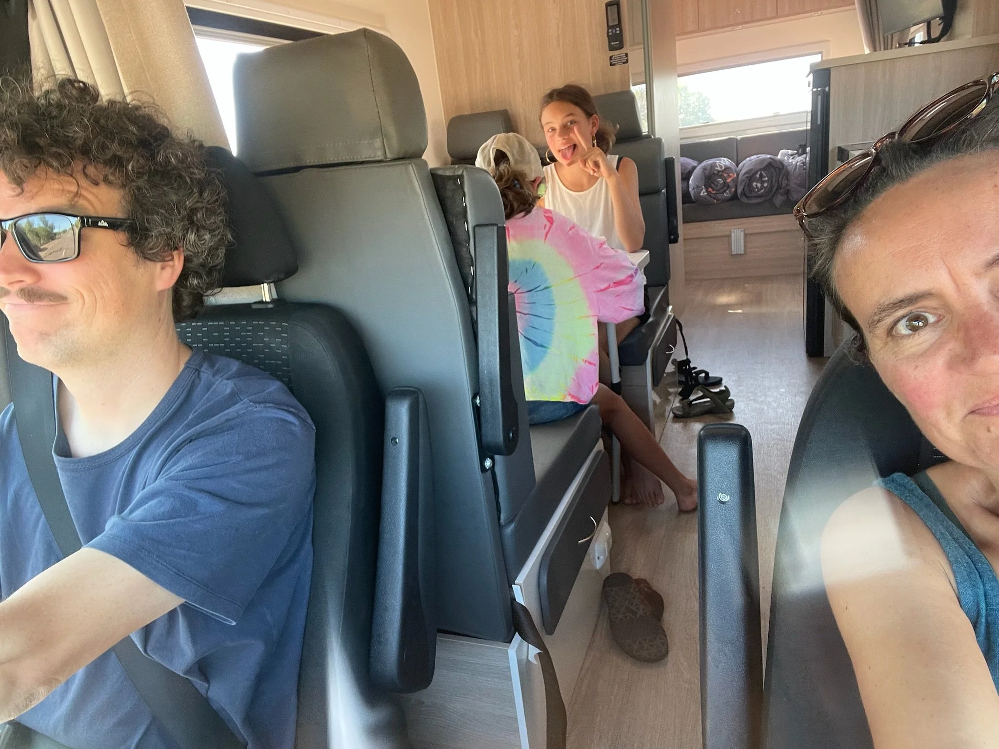 Ja, niet dus hé. Ze zijn te laat. We kunnen ze pas een dag ná onze eerste camperdag ophalen. Plan B: we spreken af dat we er ons in eerste instantie zullen proberen doorheen lullen en tonen in het verhuurbedrijf - nietsvermoedend, mijnheer de juge - Griet haar vervallen internationaal rijbewijs. Zo’n internationaal rijbewijs klinkt heel fancy, maar dat zijn gewoon wat blaadjes die met een schaartje uitgeknipt zijn en aan mekaar geniet (echt waar), waardoor de stagiaire denkt dat het geen geldig document is. Ze roept haar chef erbij die er een vluchtige blik op werpt en haar verzekert dat het ok is, “as long as they know how to drive it’s fine, dear” Niet veel later merkt dear op dat de geldigheidsdatum verstreken is, waarop wij haar halfslachtig beginnen uitleggen dat this is indeed an old document, maar het new document is on the way en hier is alvast een digitaal fotootje, yes, normally it should have been here, but yeah, DHL and all, you know, and so forth and so further. Dear denkt er duidelijk het hare van, maar durft haar chef er niet nog eens bijroepen, zucht, draait eens met haar ogen en besluit dan uiteindelijk “allright then”, lastige Belgen. Hoera! We krijgen een snelle rondleiding in de camper, laden alles in en weg zijn we, rap, voordat ze ons doorhebben. “En we rijden links!”, zegt Griet (ook na dag 10 trouwens, nog altijd, bij elk vertrek. Kléin beetje overbodig misschien, allez, soms he, schat, maar veiligheid voor alles, love you.)