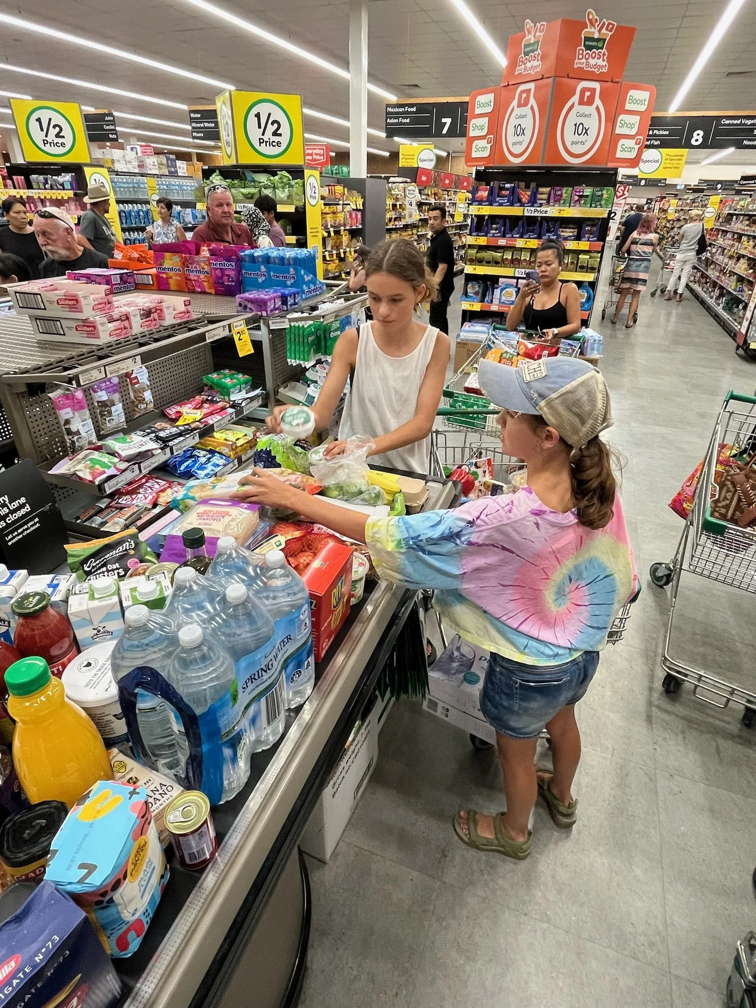 Omdat we ons al op het ergste voorbereid hadden, hebben we de route een klein beetje aangepast. We maken zondag vanuit Darwin een “klein” ommetje door Litchfield Park, zullen daar ‘s avonds slapen in Florence Falls en keren dan maandag terug richting Darwin. Daar halen we die rijbewijzen op (ze liggen er dan toch en anders al die moeite voor niets), waarna we het bekendere grotere broertje van Litchfield zullen verkennen, Kakadu National Park. Maar eerst: commiskes. We stoppen achtereenvolgens bij de JB Hifi voor nóg een extra e-reader (iedereen eentje en gedaan met zagen!), bij Mitchell’s Adventure voor een kleine verrekijker (vaneigens!), wc-tabletten (extra, tot die darmen weer ok zijn) en een koordje voor aan de sleutelbos en tot slot de supermarkt, Woolworths, voor een paar dagen eten en drinken. Sam en Robin hebben de voorgaande dagen de menu mogen samenstellen, dus het worden handig te bereiden, typisch Australische kampeergerechten, zoals daar zijn macaroni, frikandon met appelmoes, wortelpuree met worst, verse sushi en vol-au-vent met diepvrieskroketjes. Ik ga zo blij zijn als we in Vietnam zijn. Griet en ik gaan nog tevergeefs op zoek naar een pintje, maar dat gaat hier niet zomaar. Alcohol wordt apart verkocht in Bottle-O’s of BWS (Beer, Wine & Spirits) en die zijn niet open op zondag; dan drinken de mensen niet. Chance dat we hier maandag terug zijn. Maar eerst: Litchfield!