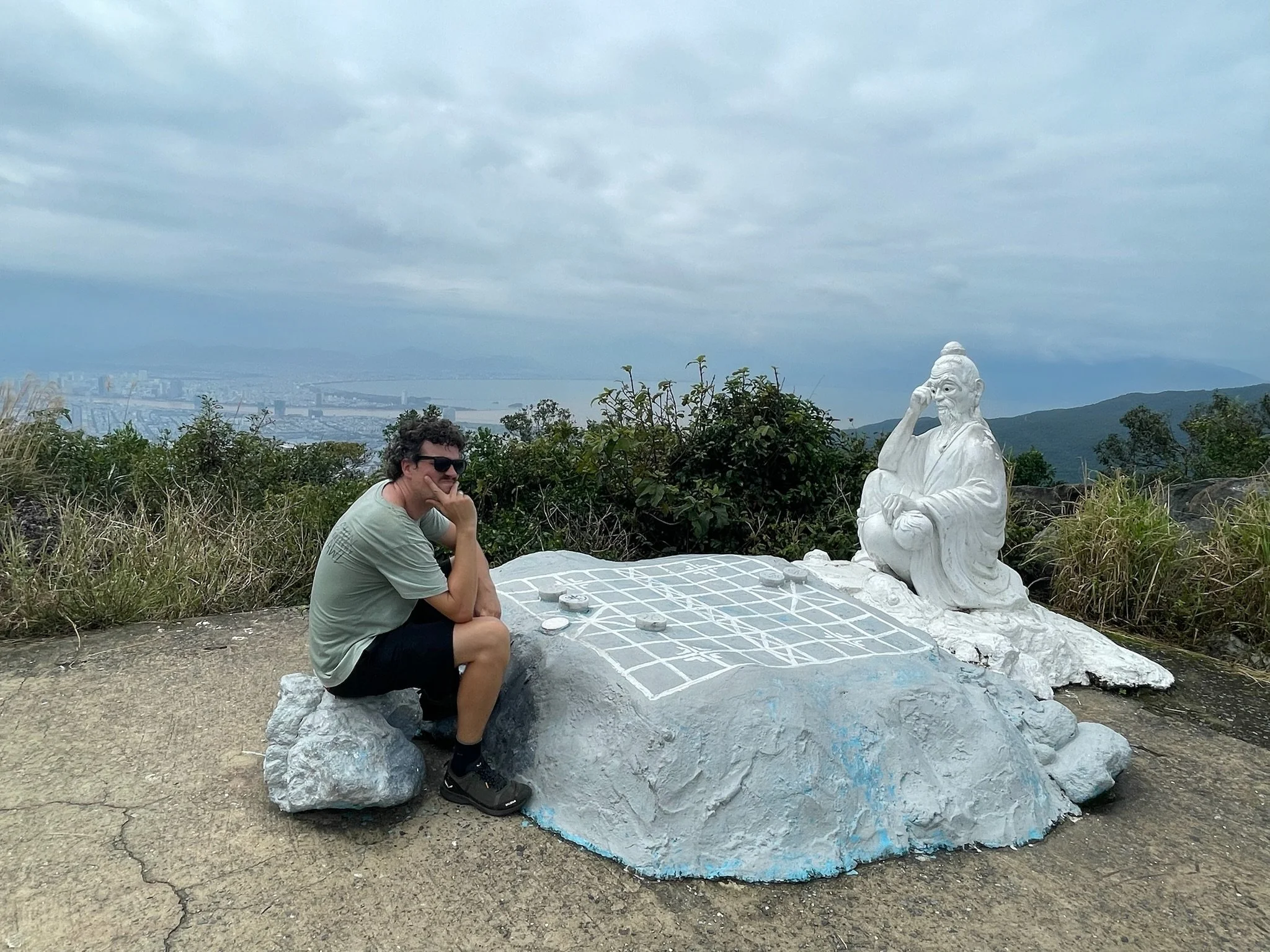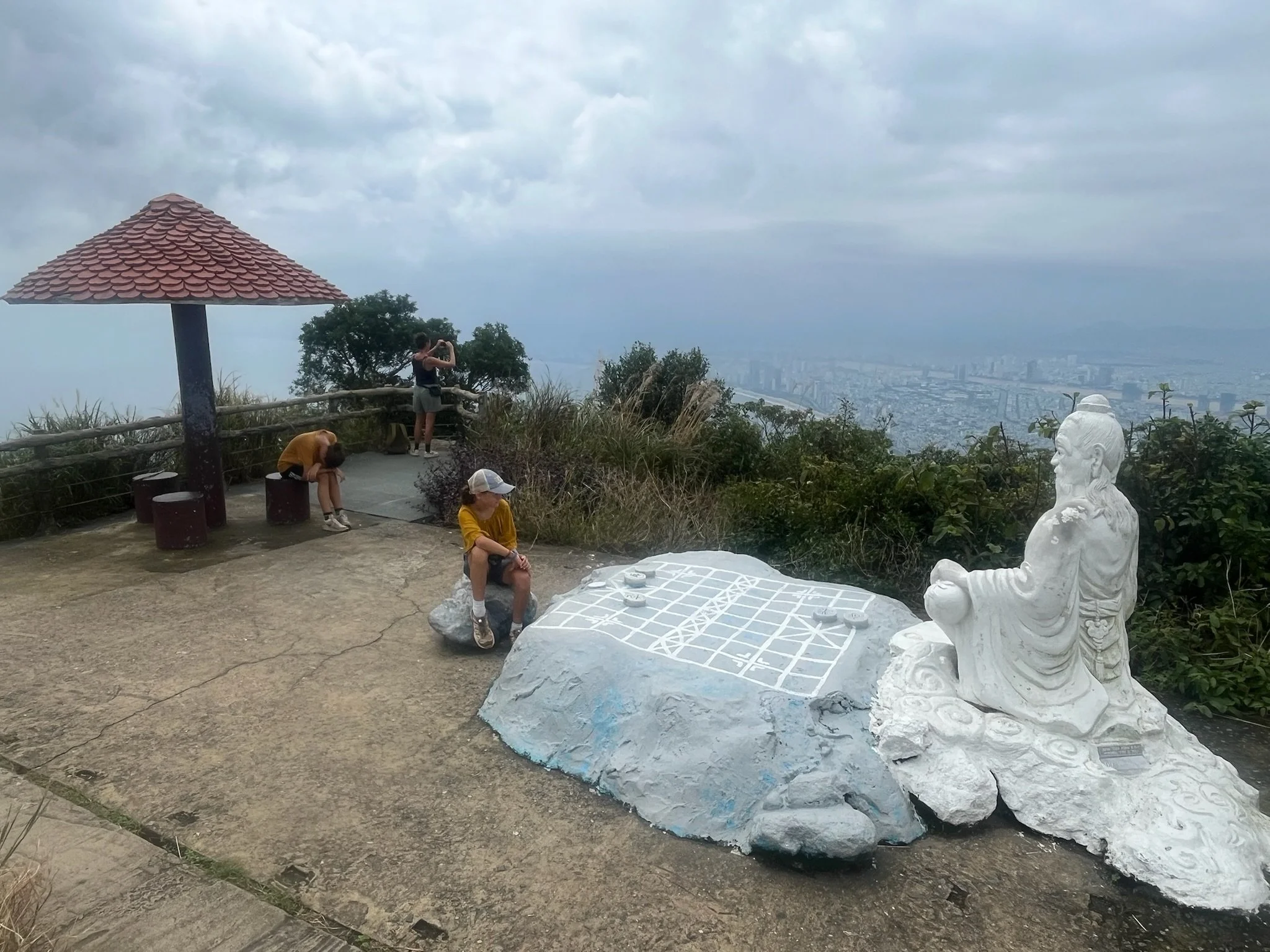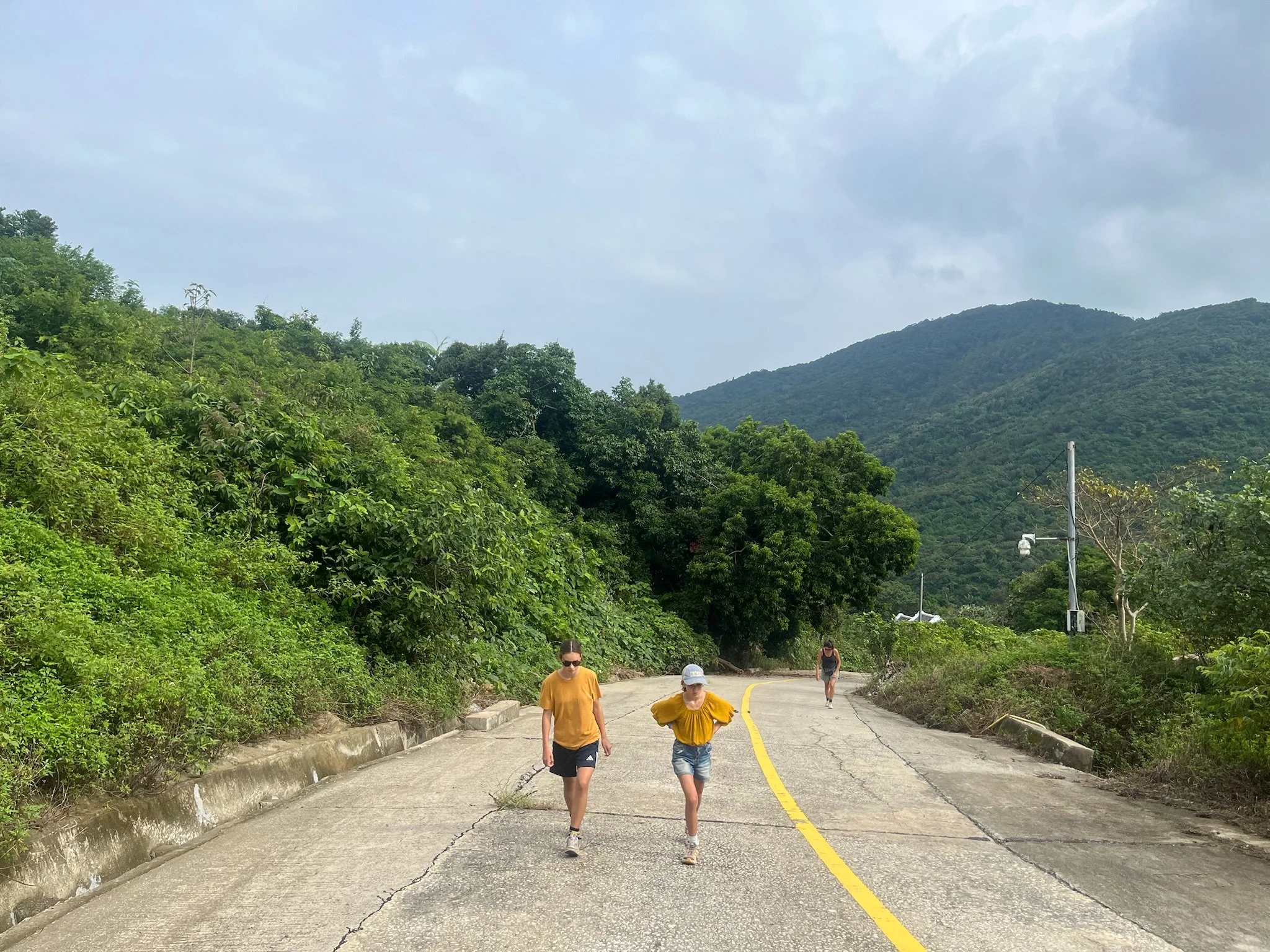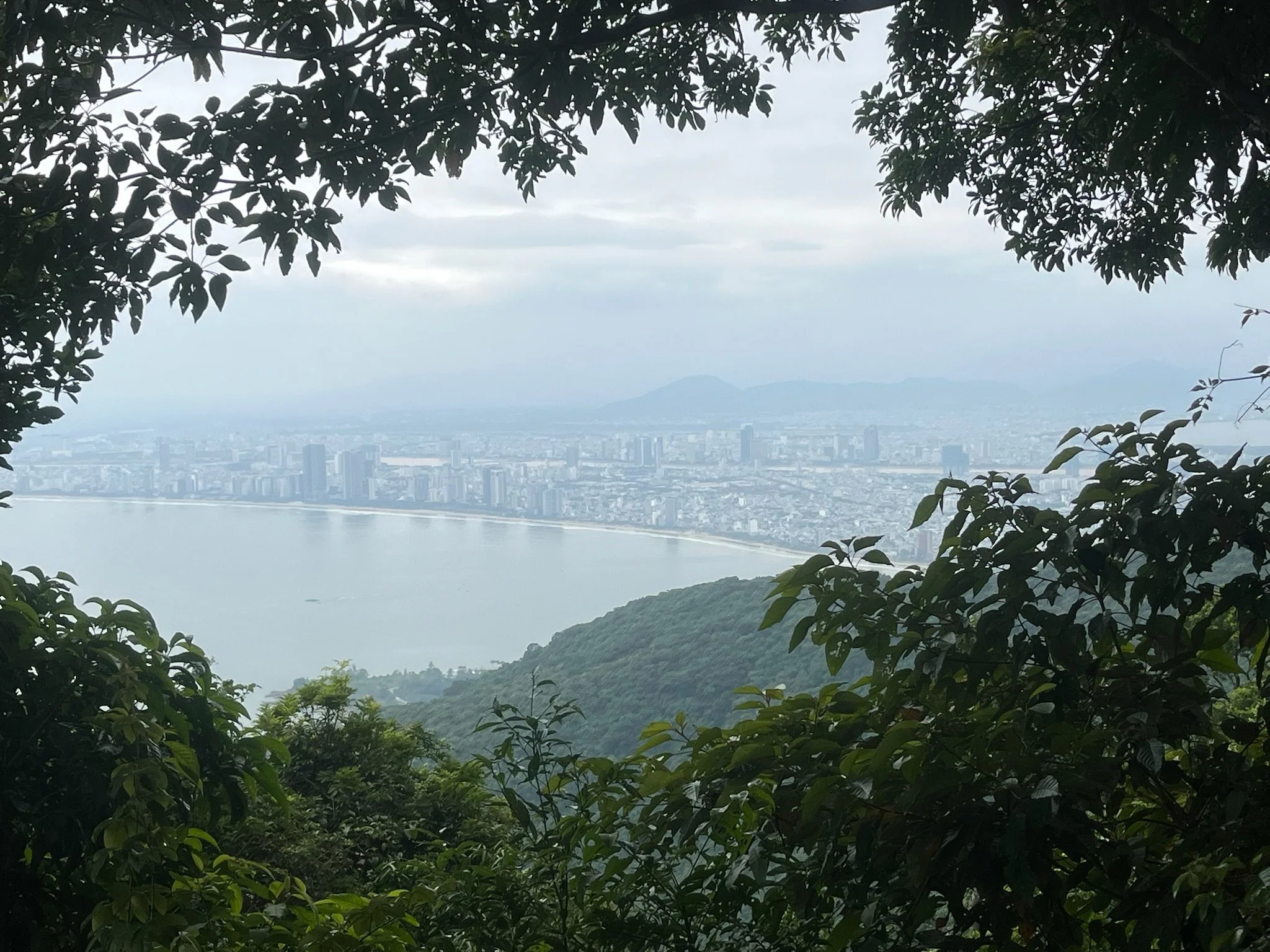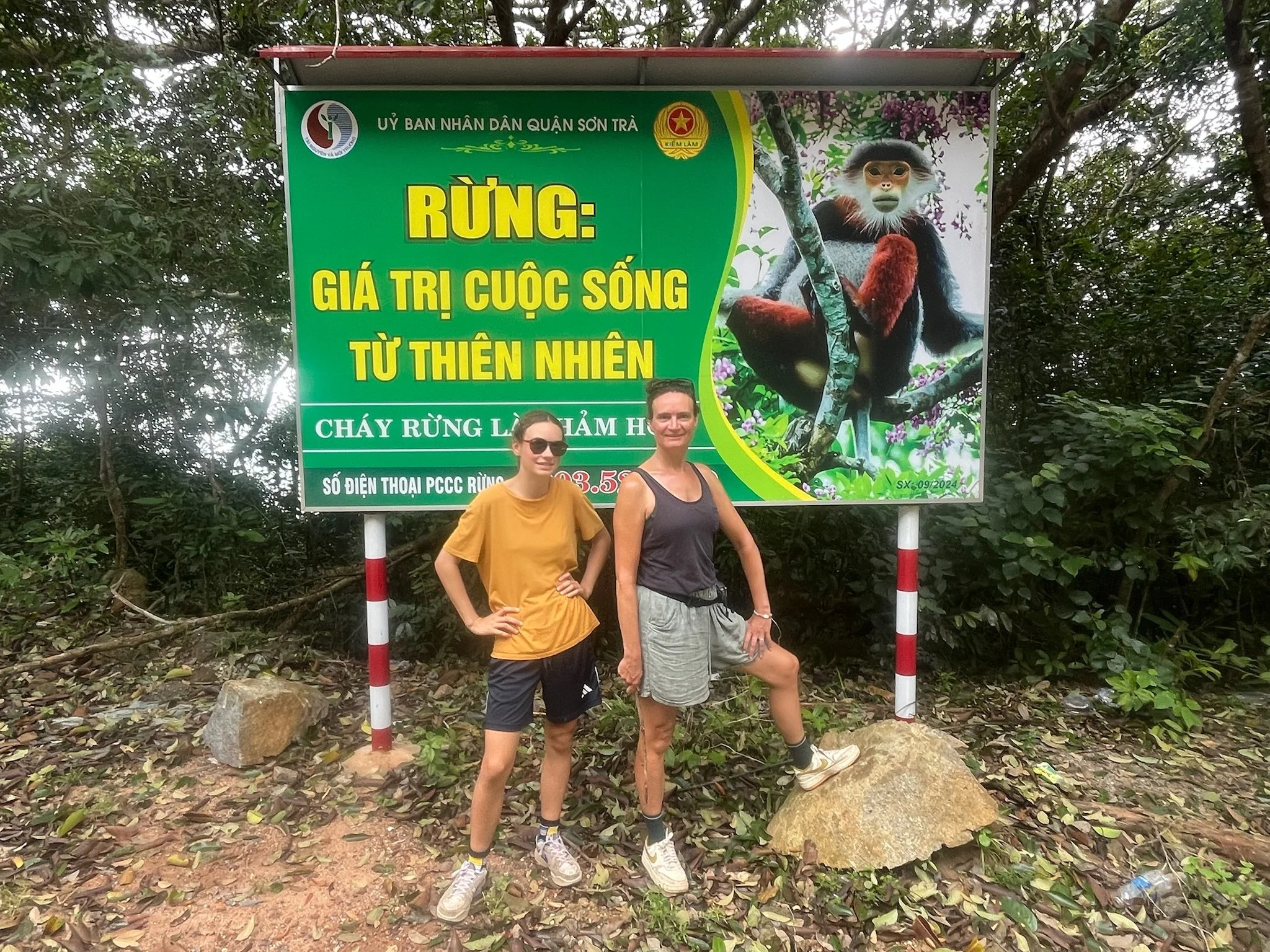 Een dag doen we een brommer-uitstap naar Son Tra Mountain. Die ligt helemaal op het uiterste puntje van het schiereiland boven Da Nang. Het is een stevige beklimming van 6 kilometer, maar dat zien we zitten. Wanneer we onze brommers parkeren en aan de tocht beginnen gaat de weg echt zot steil naar omhoog. Mijn kuiten protesteren onmiddellijk. Gelukkig is het af en toe wat minder steil, maar het blijft een beproeving voor het gezin, ook mentaal. Niet iedereen heeft er evenveel zin in, en er wordt wat om en weer gezaagd, afijn, een classic wandelmomentje met het gezin :)