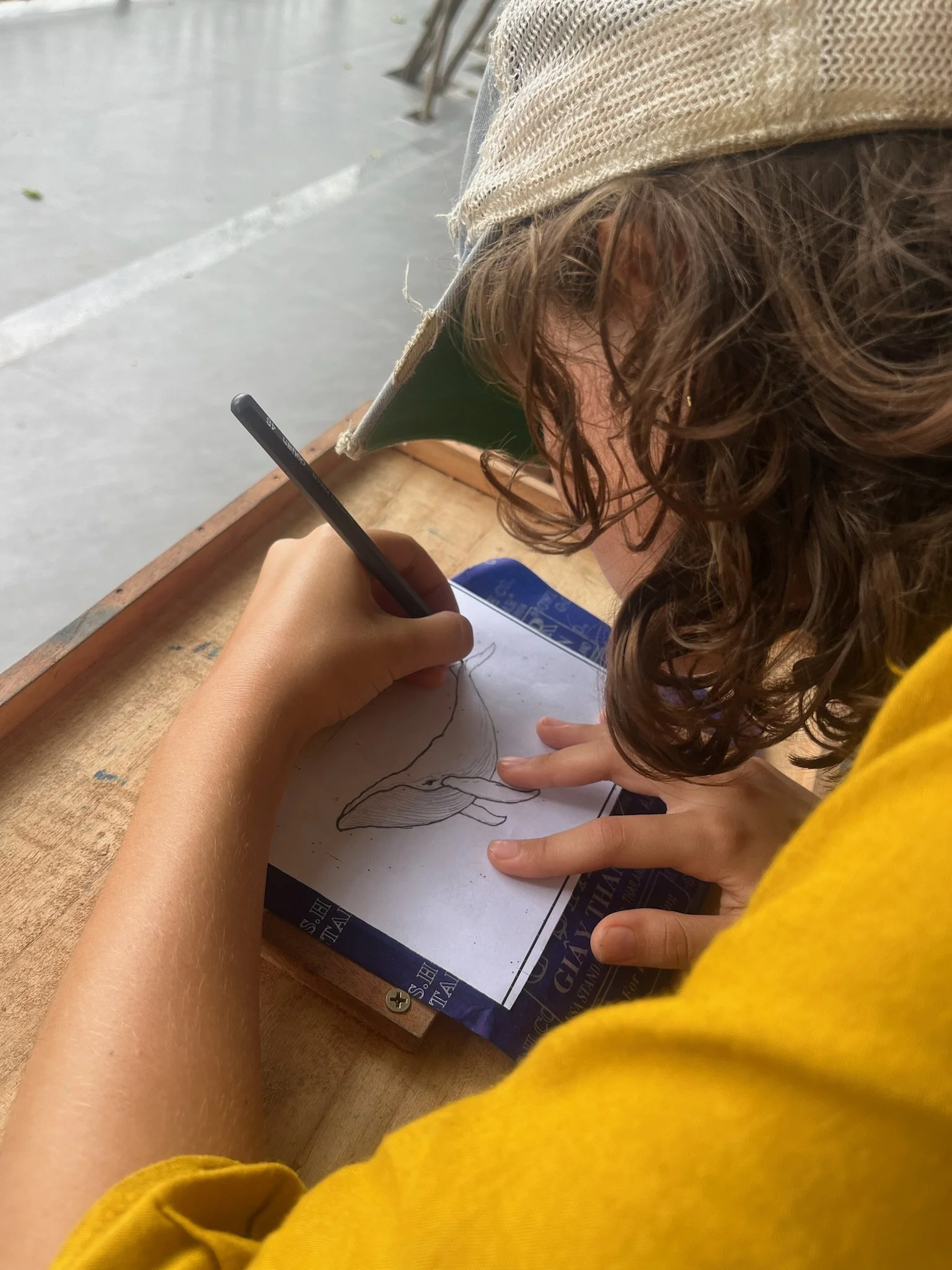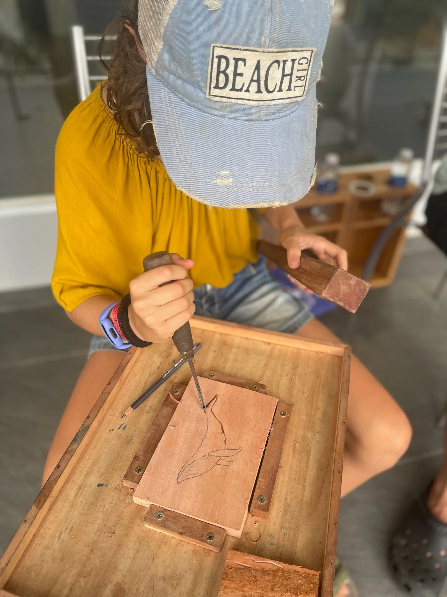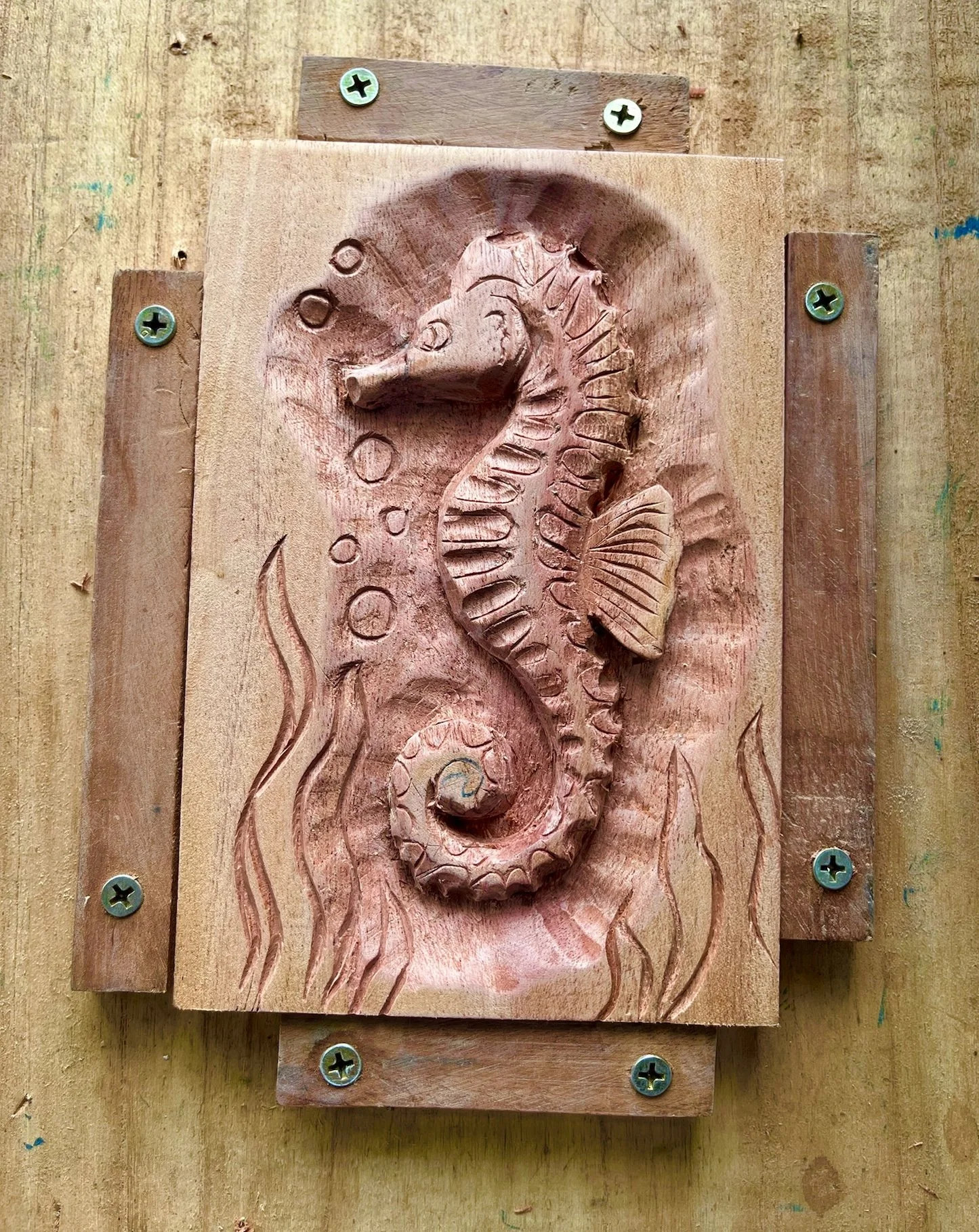 De Woodcarving is een schot in de roos. We moeten ervoor naar een plek naast de rivier buiten de stad. We zijn er helemaal alleen en hebben enkele getalenteerde woodcarvers als gids. We krijgen elk een plankje en wat werkmateriaal. Eerst tekenen we onze afbeelding en daarna mogen we in verschillende stappen beginnen carven. Wij kiezen met onze vis, walvis en zeepaardje voor een oceanografisch thema maar Senne zit al in Indische sferen en kiest voor Ganesha. Na een uurtje of drie gaan we tevreden met onze plankjes naar huis.