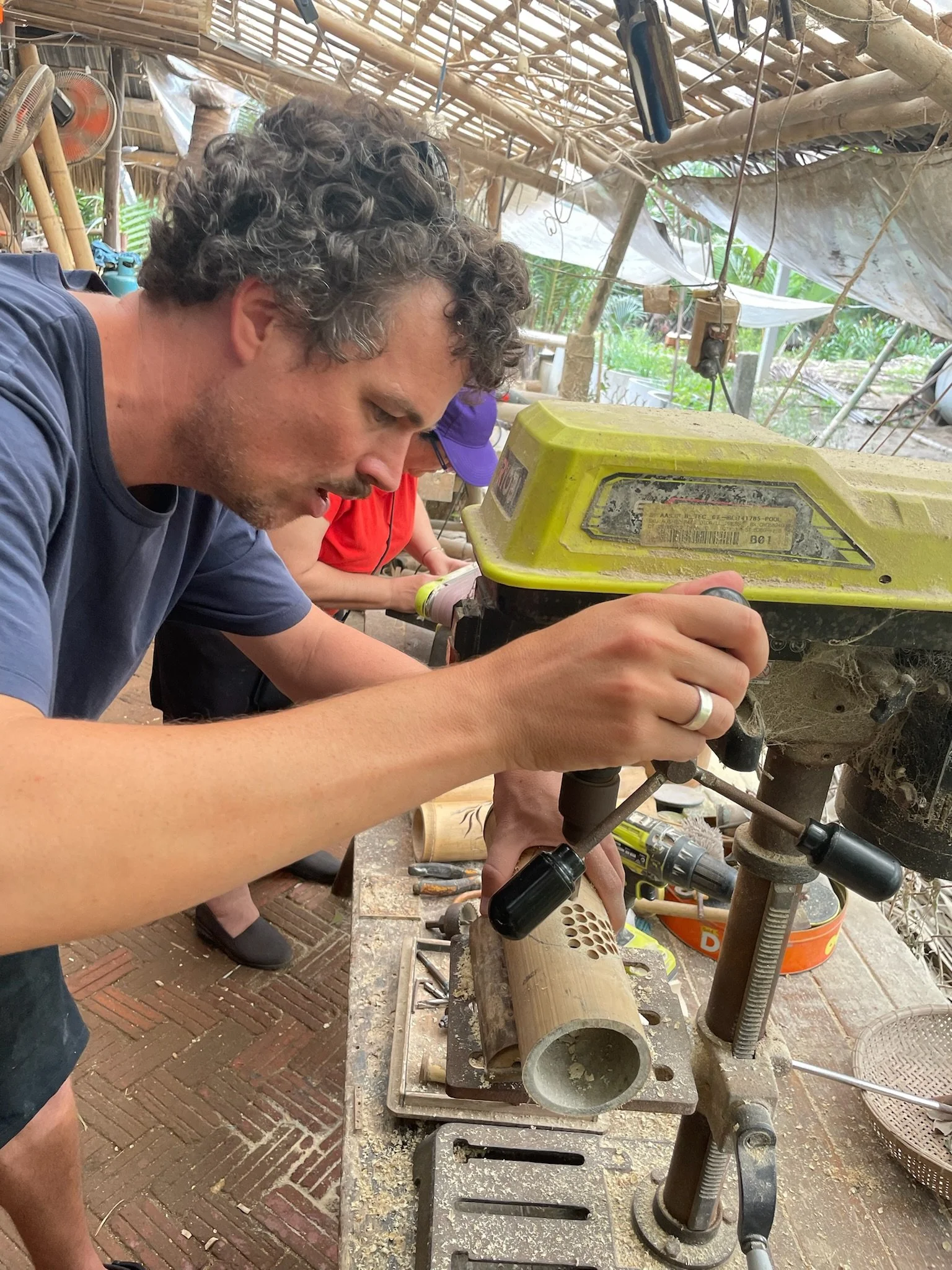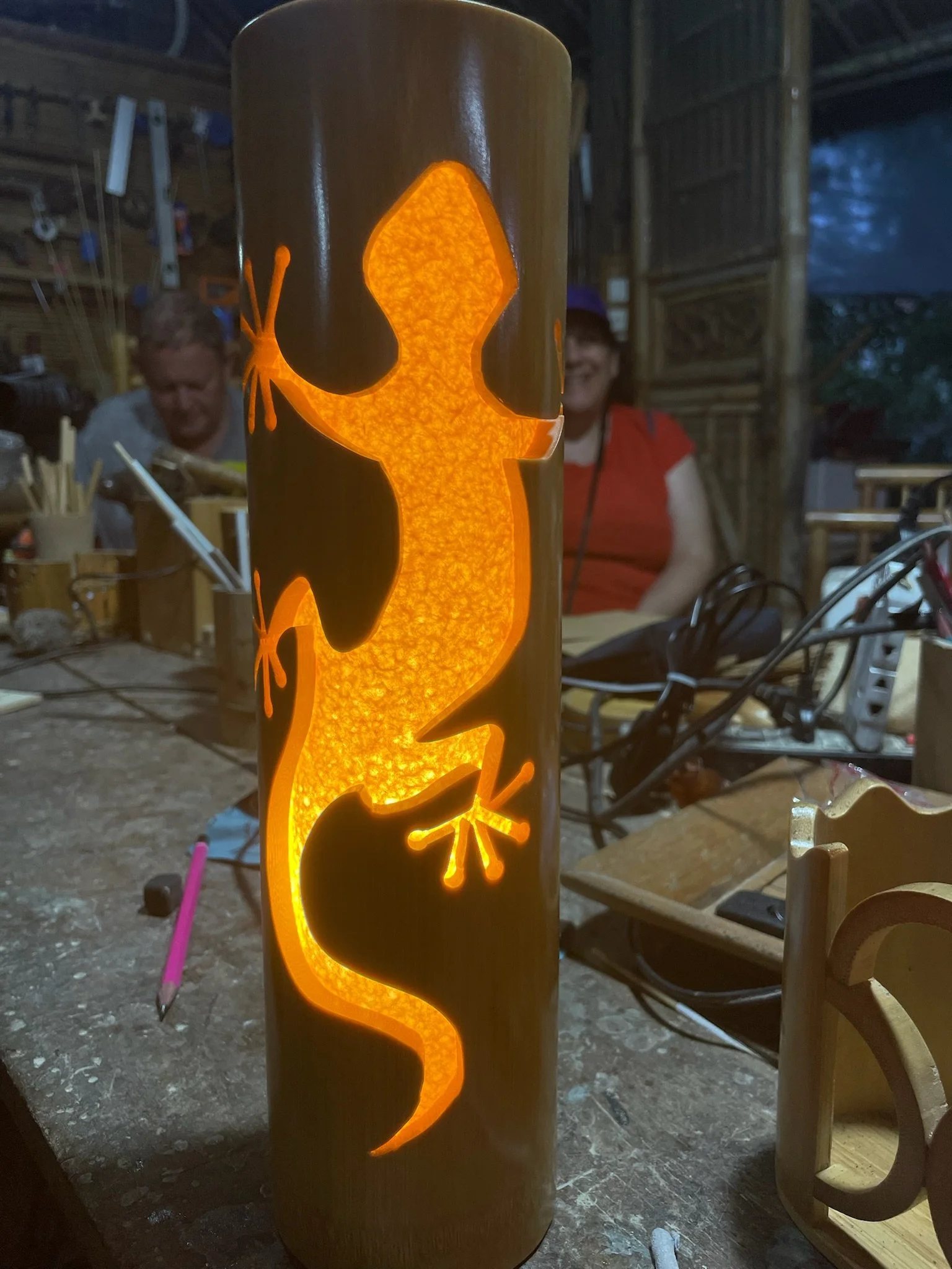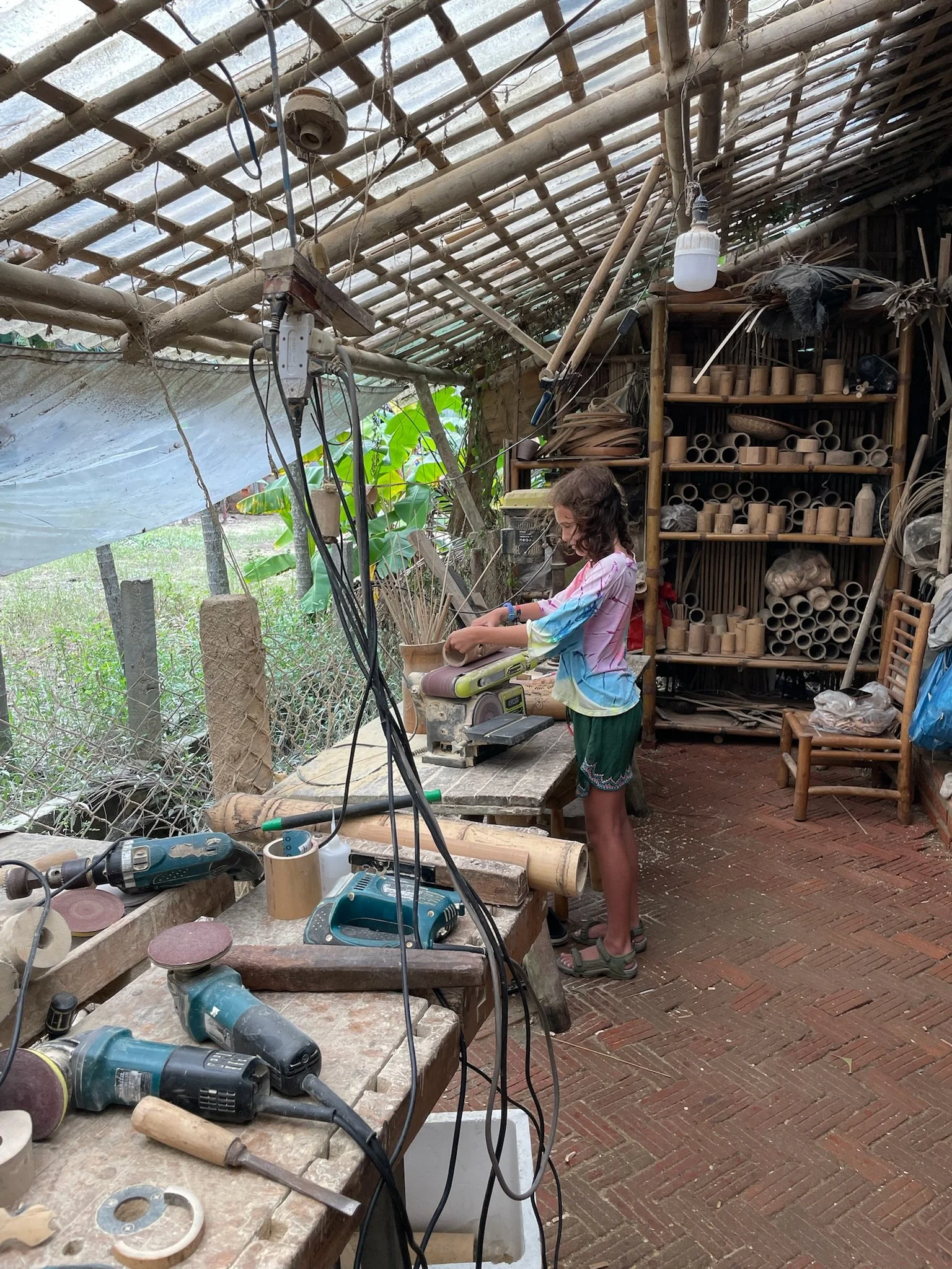 De Bamboo Making Class is helaas iets anders van sfeer. Het helpt ook niet dat we de class samen doen met zes Israeli waarvan er enkele vol overtuiging een Israëlische vlag in hun bamboe schaakbord branden. De kinderen mogen wel aan de slag met uitdagende machinerie, en krijgen daar gelukkig wel genoeg hulp bij. Uiteindelijk maken Senne, Sam en Robin wel een heel mooi bamboe lampje. Deze keer heeft Senne zich aan Boeddha gewaagd, de kinderen bleven bij het dierenthema. De organisator van deze Steinerweek heeft bij nader inzien weinig affectie met bamboelampen en laat deze workshop aan zich voorbij gaan. Bovendien begint er zich stilletjesaan een bezoek aan het postkantoor op te dringen.