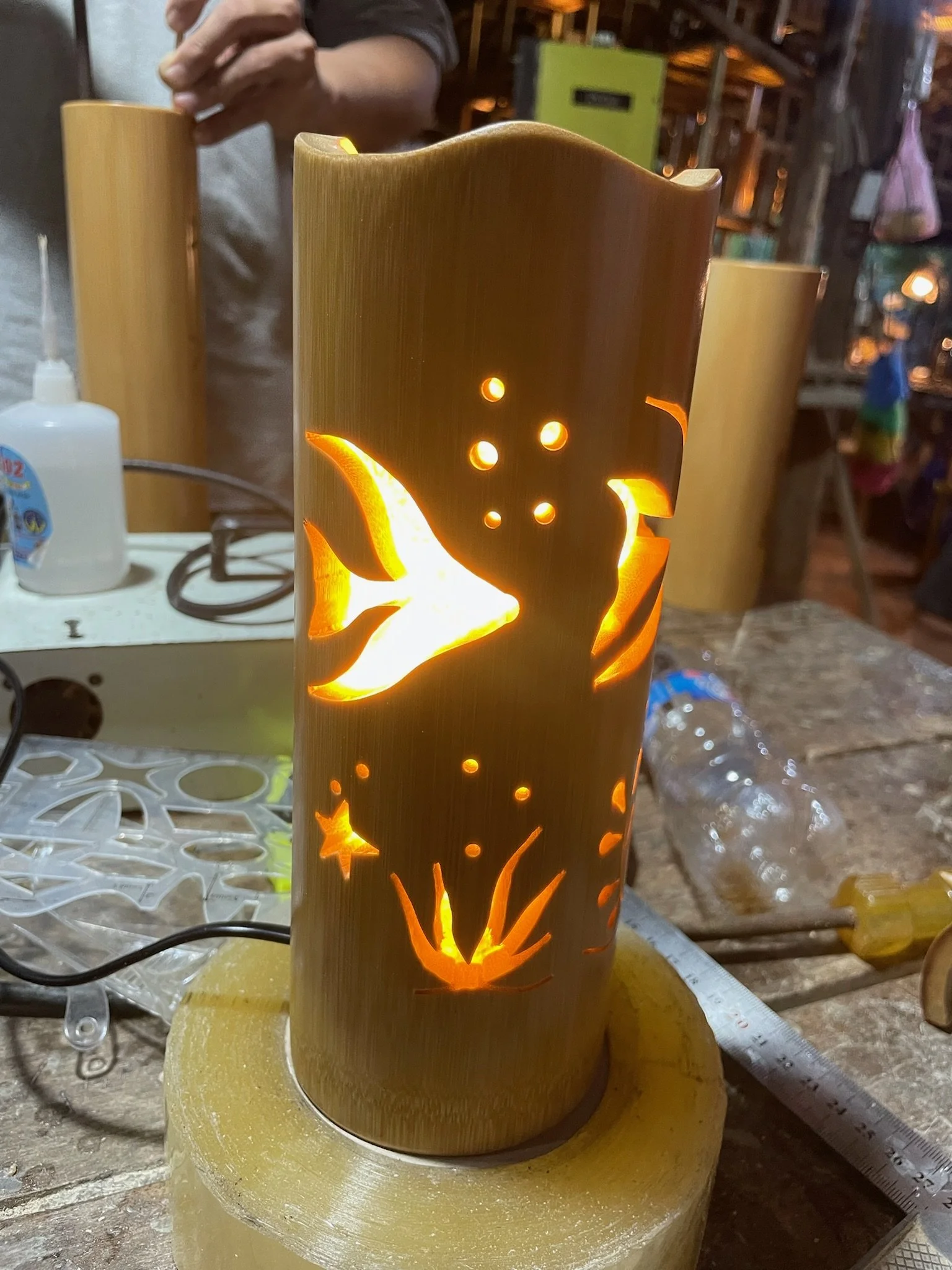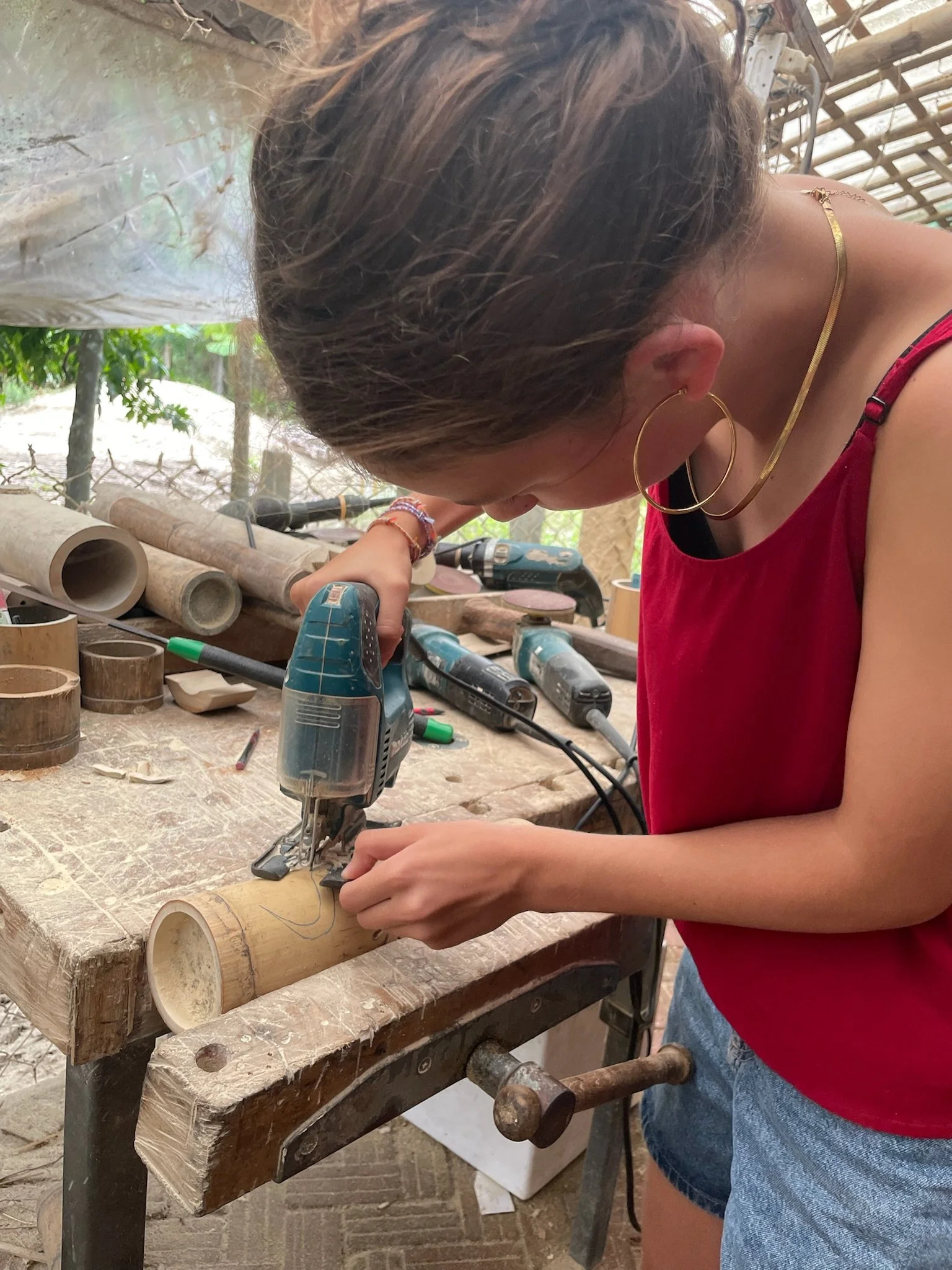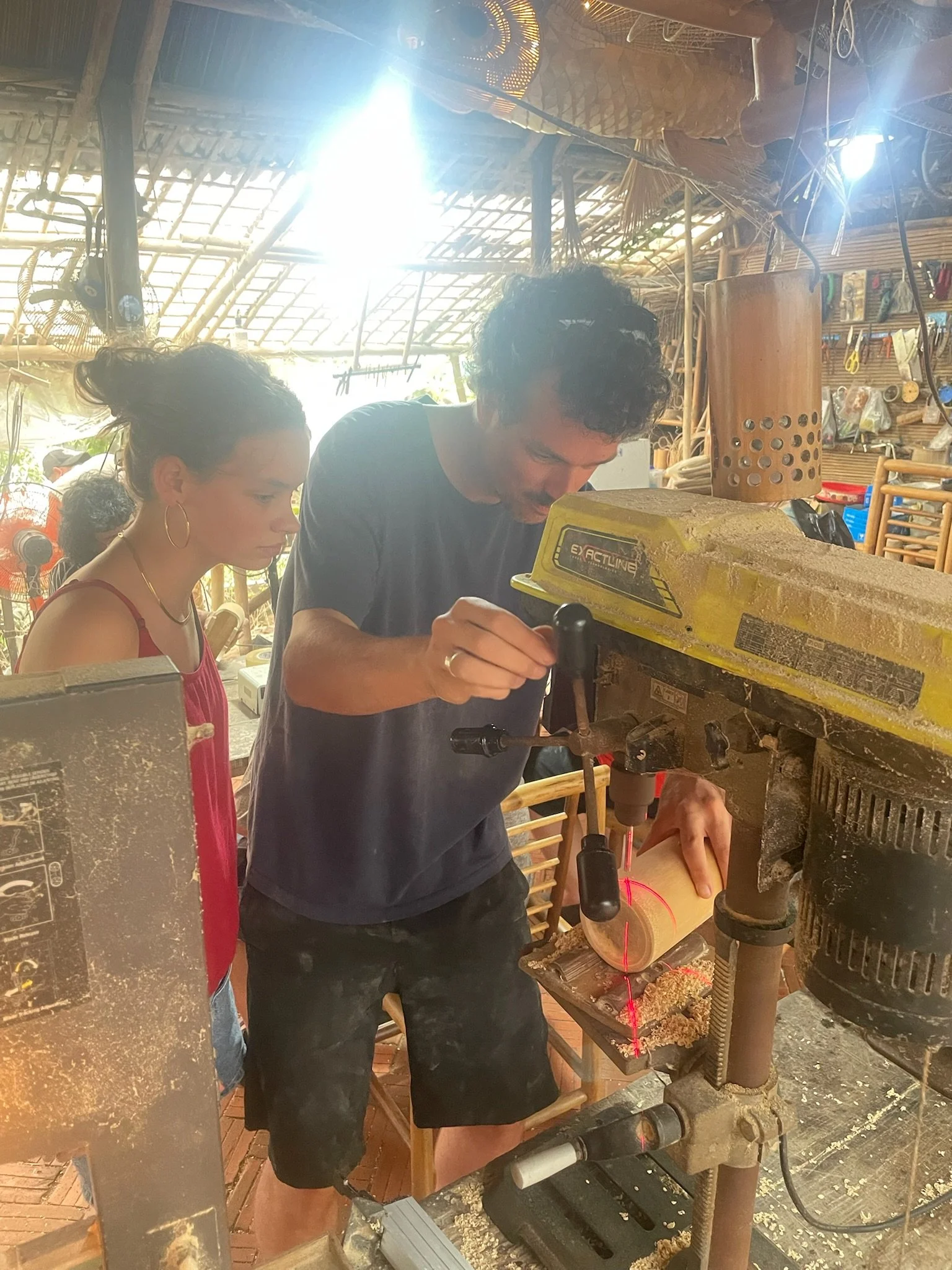 De Bamboo Making Class is helaas iets anders van sfeer. Het helpt ook niet dat we de class samen doen met zes Israeli waarvan er enkele vol overtuiging een Israëlische vlag in hun bamboe schaakbord branden. De kinderen mogen wel aan de slag met uitdagende machinerie, en krijgen daar gelukkig wel genoeg hulp bij. Uiteindelijk maken Senne, Sam en Robin wel een heel mooi bamboe lampje. Deze keer heeft Senne zich aan Boeddha gewaagd, de kinderen bleven bij het dierenthema. De organisator van deze Steinerweek heeft bij nader inzien weinig affectie met bamboelampen en laat deze workshop aan zich voorbij gaan. Bovendien begint er zich stilletjesaan een bezoek aan het postkantoor op te dringen.
