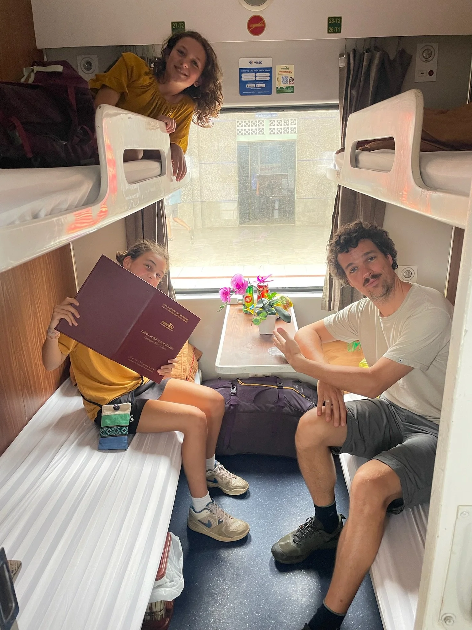 Na de nachtelijke busrit om het ondergelopen deel te omzeilen mogen we terug de trein op om nog 5 uur verder te tuffen naar Hoi An. En zo zal dit verslag beginnen en eindigen op de trein.