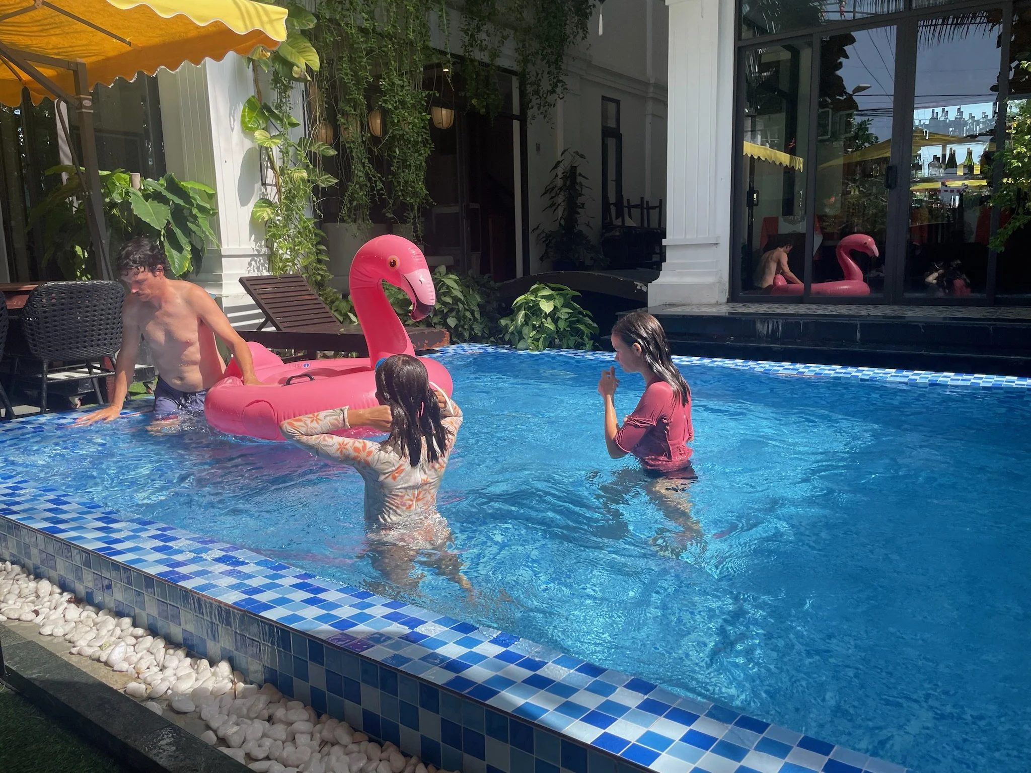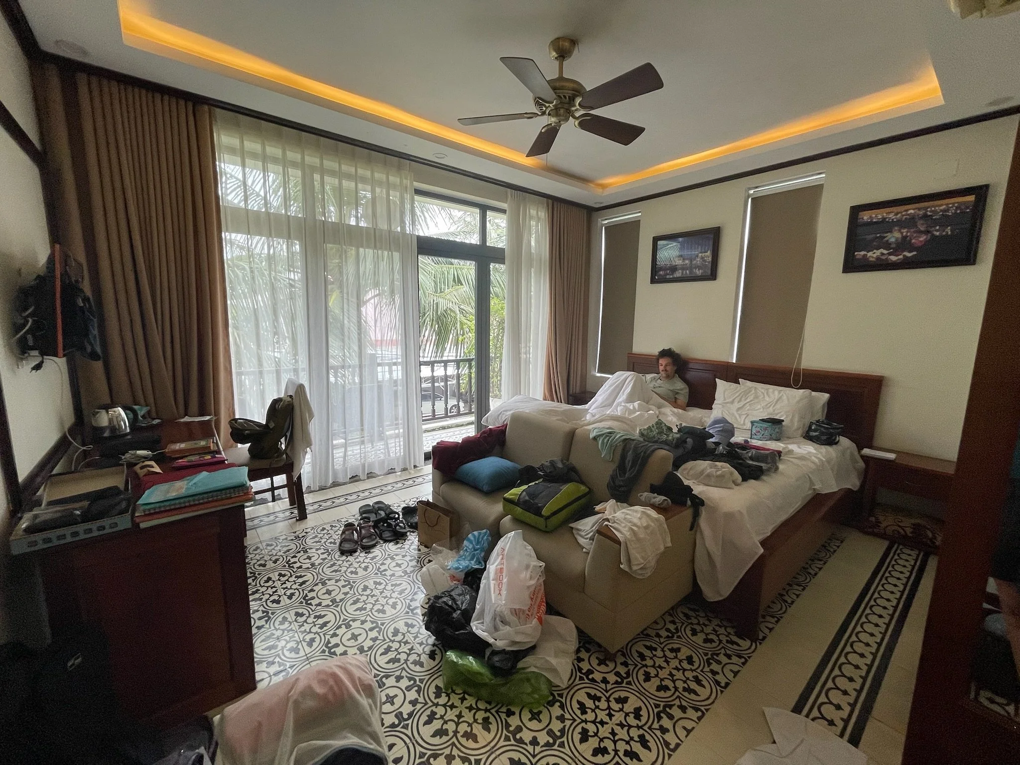 Hoewel het uiteindelijk 2 uur ‘s nachts is en we redelijk gaargekookt arriveren in Hoi An is het direct heerlijk thuiskomen. Onze hostel ligt ietsje buiten the Old Town maar de straat ernaartoe hangt vol lampionnetjes. Voor mij is het allang goed. De Hoi An Discovery Villa, waar we zullen blijven, is echt prachtig. Er is een leuk zwembadje om in te verkoelen - want het wordt hier nu wel warmer. In de kamers staat er donker houten meubilair en leuke tegeltjes. Dat alles kost 15 euro voor een nacht. De villa ligt in een heel leuke buurt, net boven de Old Town, we kunnen er elke dag op nog geen 10 minuutjes naartoe fietsen. Maar ook de wijk waarin we zitten heeft leuke authentieke eetplekjes en koffiebars. We zullen uiteindelijk een goeie tien dagen in Hoi An blijven. De vorige reis waren dat er ook zoveel Het moet zijn dat het ons hier toch bevalt.