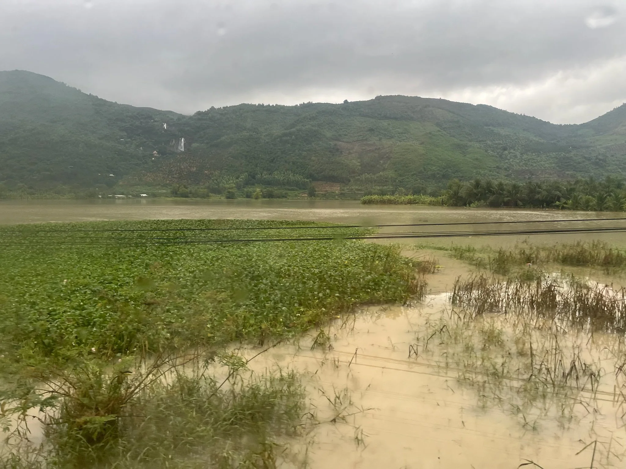 Wij vertrekken tegen de middag ook, we nemen de trein naar Ho Chi Minh City, een rit van zomaar eventjes 17 uur. Maar dat is buiten de regen gerekend, die alweer vlotjes naar beneden plenst in midden Vietnam. Deze keer staat Nha Trang onder water, lezen we. En ook die prachtige bergpas die we met de brommers deden van Da Lat naar Na Trang is door landslides helemaal dicht. En tenslotte blijken ook onze treinsporen onder water te staan. Ergens rond 20 uur staat onze trein stil. De hele trein gaat na een tijdje collectief slapen, dus we doen maar mee. Het is een vreemde sfeer in de stille trein, in een godvergeten station, zonder veel info over wat er precies aan de hand is. Rond half 4 ‘s nachts zet de trein zich opeens in beweging en rijden we verder. Om 7 uur laten ze een triomfantelijk wekker-muziekje door de boxen knallen en komen ze rond met wat rijstsoep, mais en een ei. De dag begint alsof er niets gebeurd is. We komen aan na een treinreis van 26 uur.