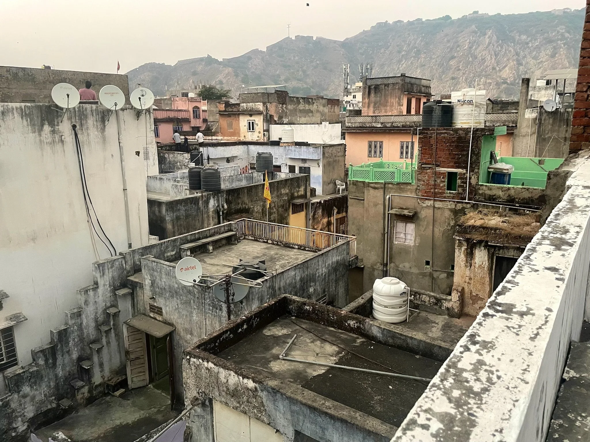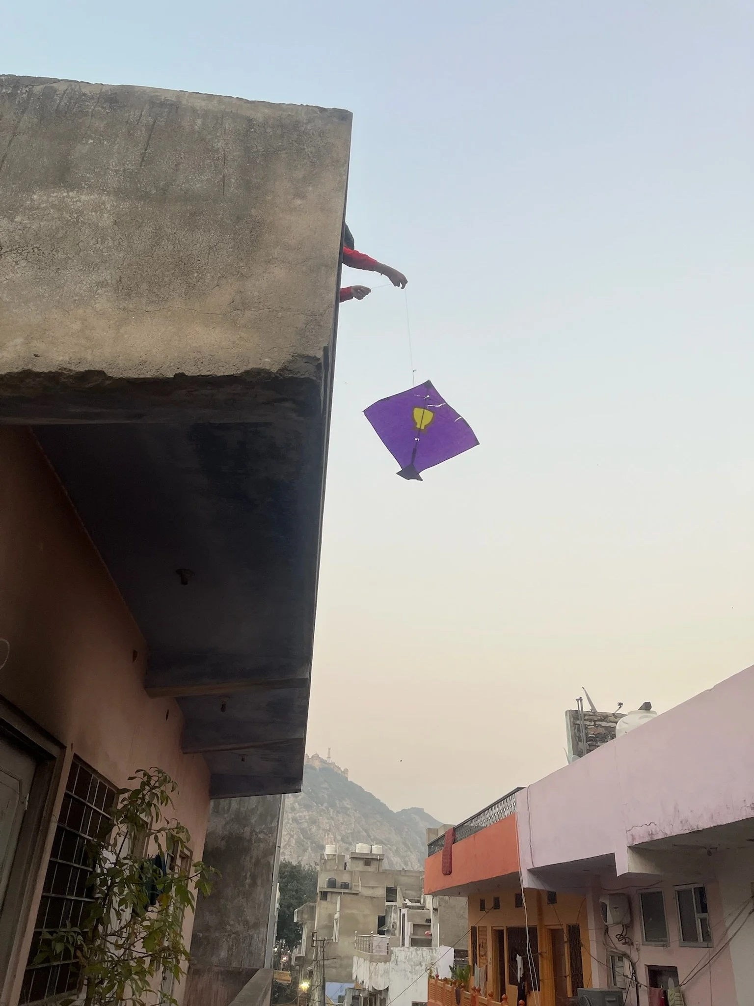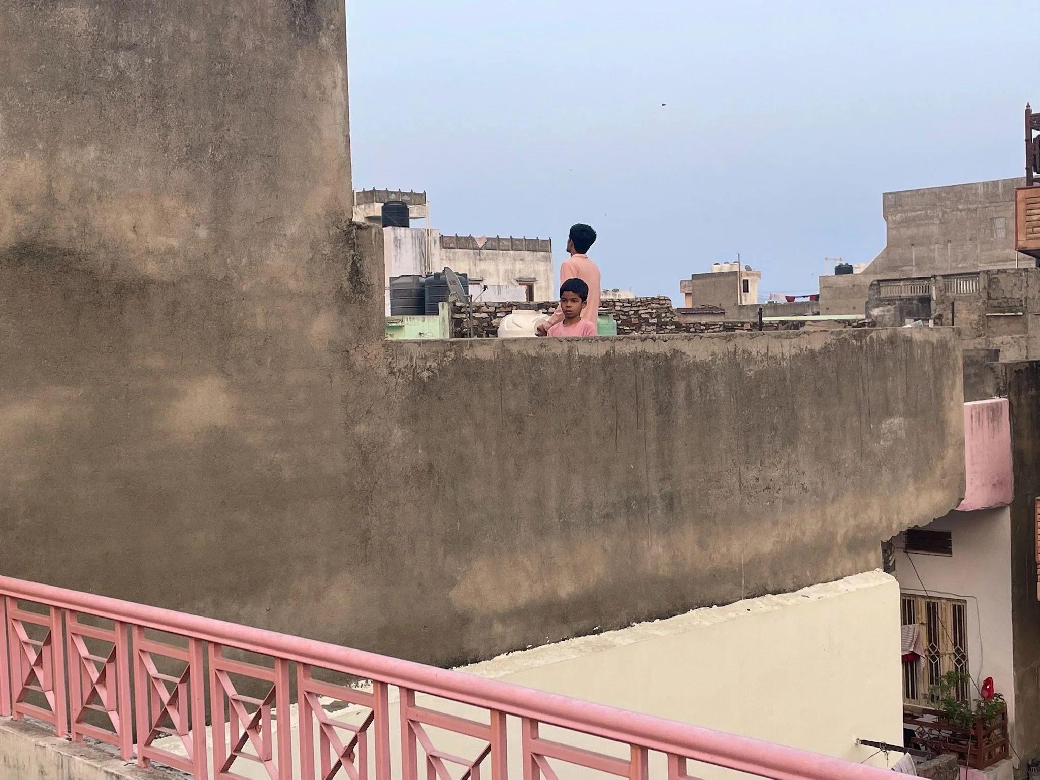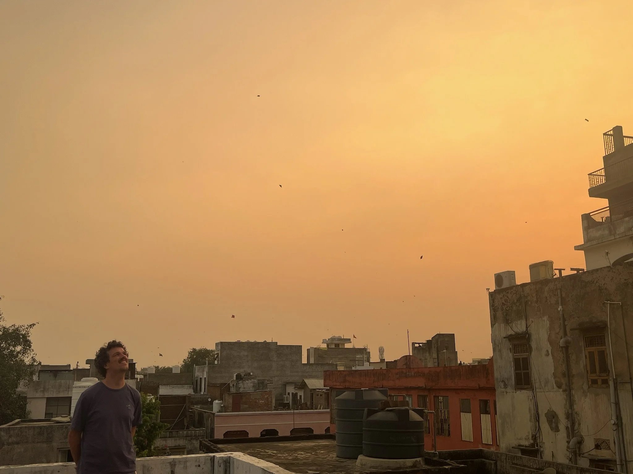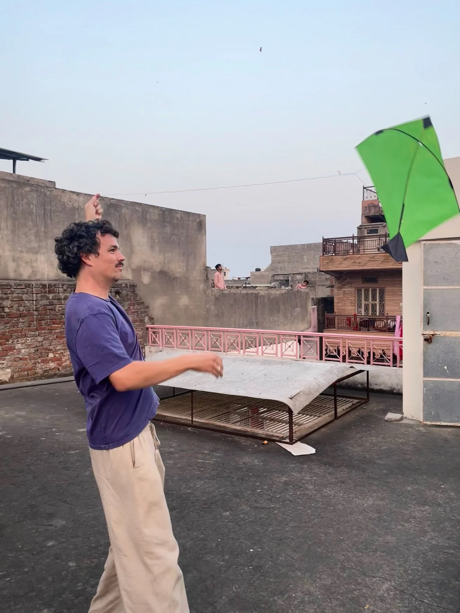 De stad heeft eigenlijk twee lagen, de eerste laag is op de grond, waar het toeterende verkeer altijd in beweging is, de andere laag speelt zich af op de daken. Via allerlei trapjes en halve verdiepjes zijn precies alle daken met elkaar verbonden. Na schooltijd hangen honderden vliegers boven de daken en zie je overal kinderen, maar evengoed volwassenen, op hun dak vliegeren. Het lijkt alsof we een video van Francis Alys zijn binnen gestapt. Prachtig.