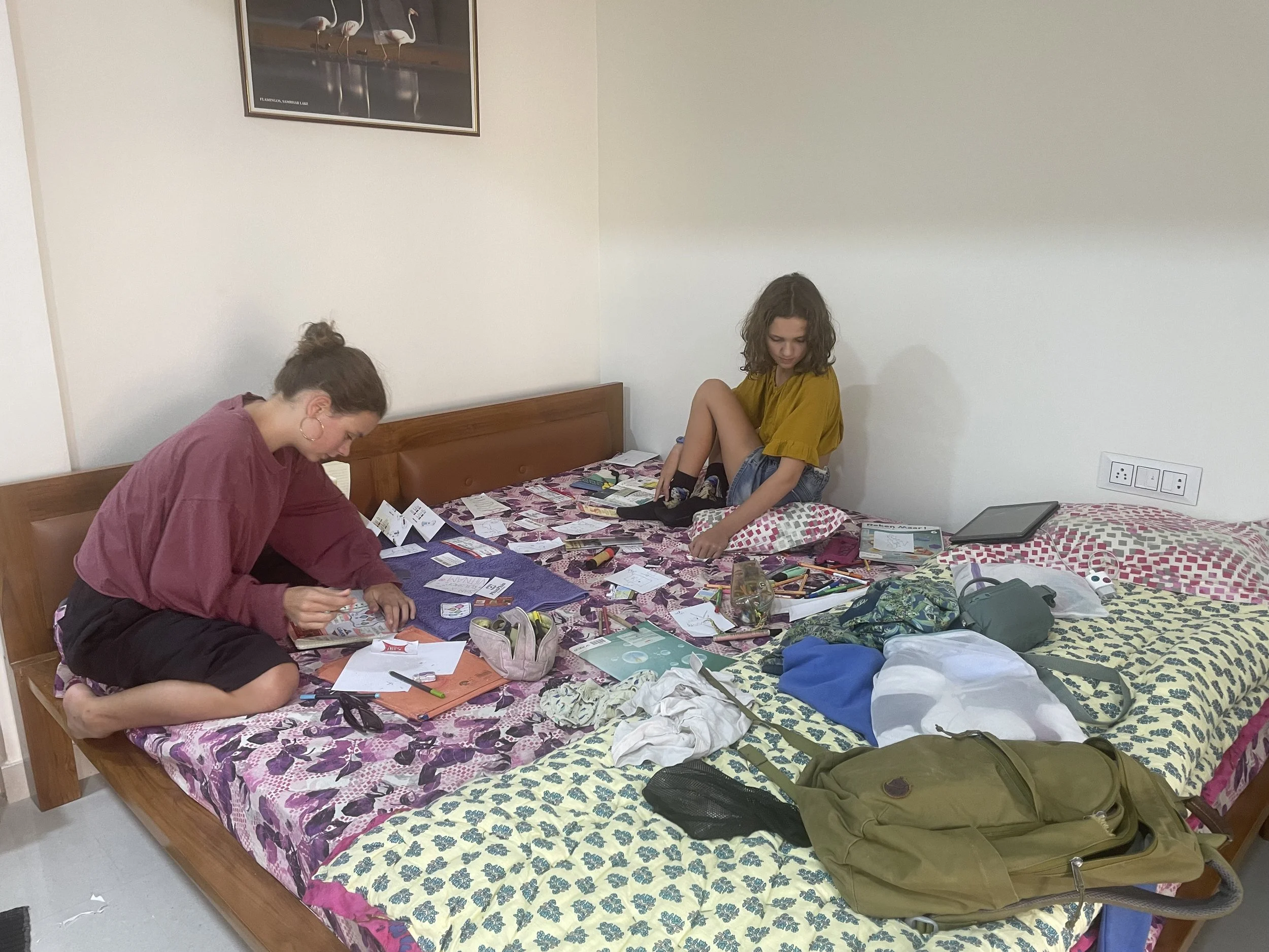 het is zover, we zijn op weg naar India. Ik ben enerzijds heel benieuwd, maar anderzijds heb ik ook heel veel bedenkingen. Hoe zal het daar zijn? Ik denk aan die oplichterij en scams, en dat je overal op je hoede moet zijn, of aan onze twee knappe dochters, zullen ze heel de tijd aangestaard worden? De aanslag in Delhi een week voor we arriveren helpt ook niet echt. Maar naast deze gezonde spanning is er toch vooral veel nieuwsgierigheid. En tijdens het reizen heb ik al geleerd dat je vaak je angsten moet loslaten en het onbekende tegemoet gaan. Meestal valt het allemaal wel mee. Naar India dus.