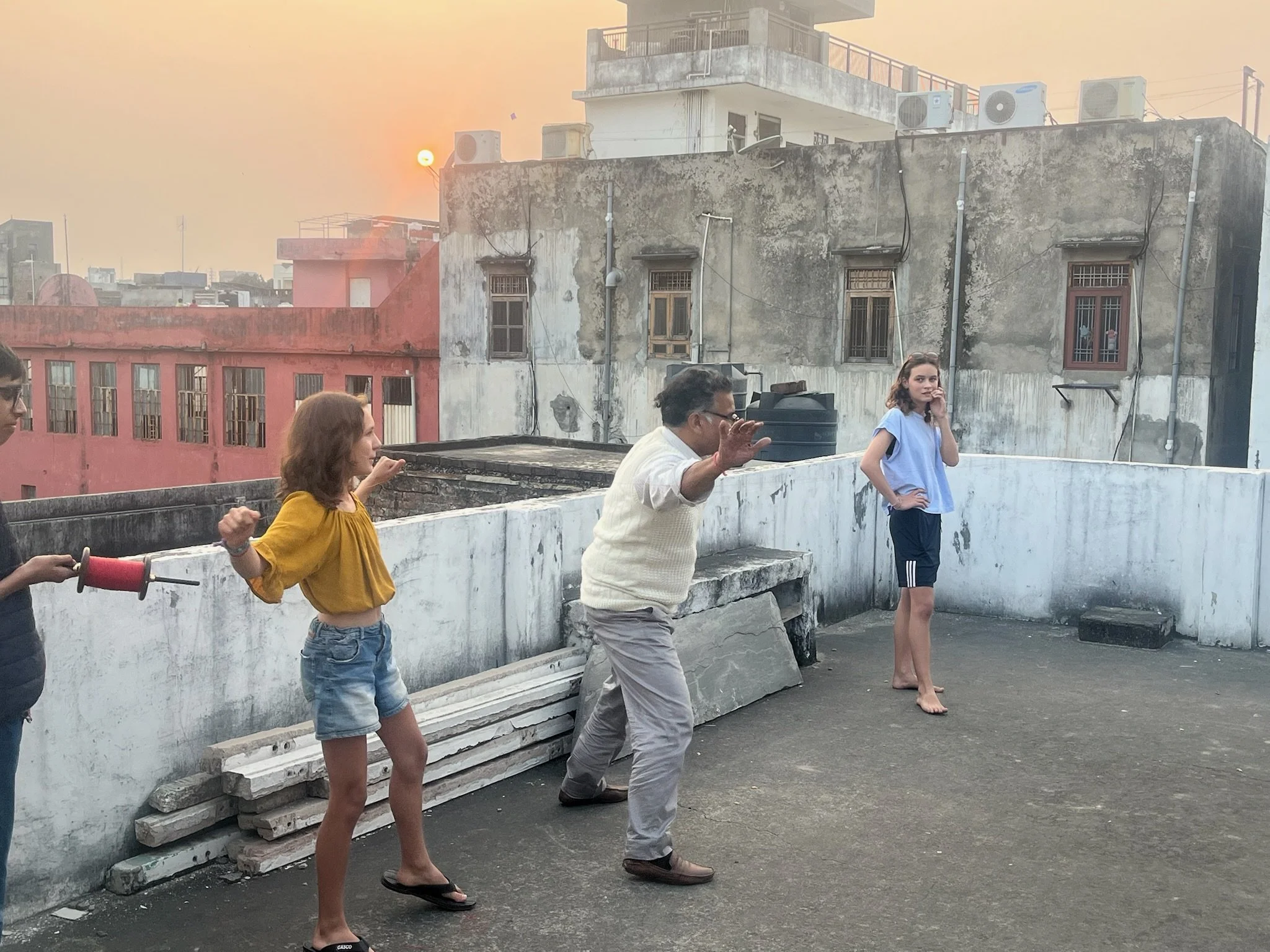 We laten Prakesh weten dat we graag ook eens zouden vliegeren, dus de volgende dag staan we op het dak in een poging onze vlieger langer dan een minuut in de lucht te houden. Het ziet er zo simpel uit, maar het is een moeilijke techniek. We zullen nog veel moeten oefenen. In januari is hier het Kite festival, dat moet zeker ook de moeite zijn! Een ander festival, vertelt Prakesh, is het color festival (in maart), of Holi. Het is een Hindu festival dat het begin van de lente aankondigt. Naast muziek, dans en vuurwerk, gooit iedereen met kleurbommen naar elkaar. Dat is op zich is al een super leuk idee, maar daar bovenop is het die dag ook regel-loze dag. Niet dat het nu lijkt alsof er regels zijn, maar in het verkeer bijvoorbeeld vallen alle regels weg, en ook iedereen mag marihuana roken, de politie doet die dag gewoon vrolijk mee. Moeilijk om je voor te stellen dat het hier allemaal nog gekker kan.
