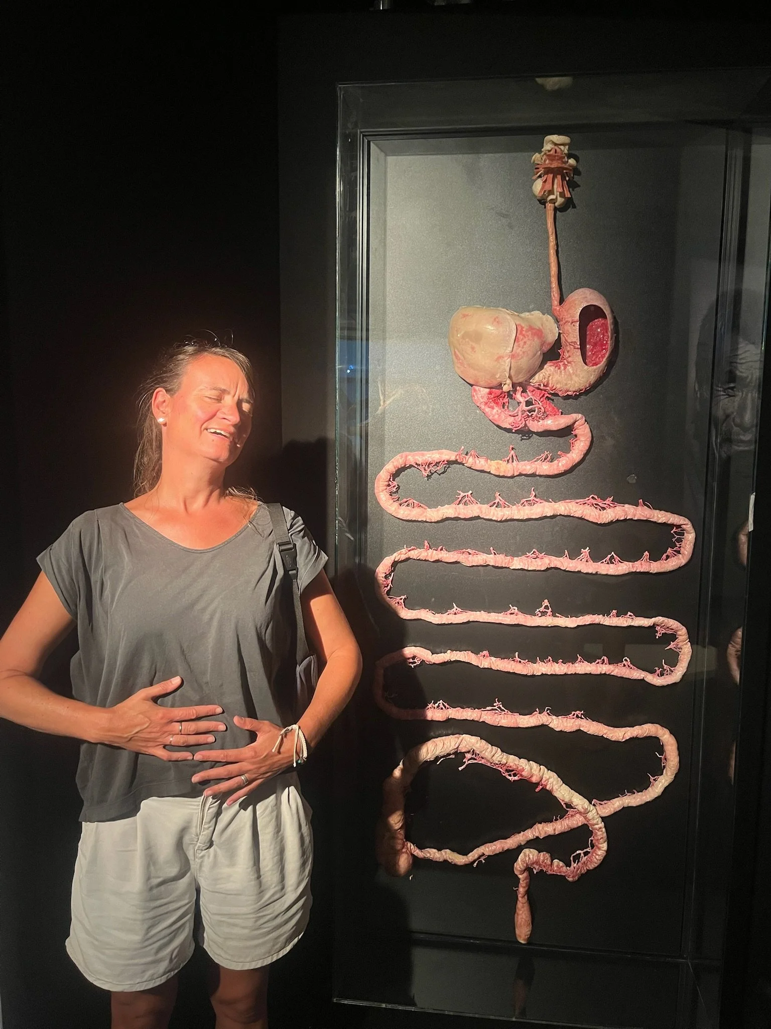 In de namiddag besluiten we om de expo ‘Body Worlds: the anatomy of happiness’ mee te pikken, het beter gekende Körperwelten van Gunther Von Hagen. De expo houdt eigenlijk weinig steek, maar het is wel eens tof om de geplastineerde lichamen te zien. Al kan je op de blog van de kindjes wellicht ook over deze activiteit een andere mening lezen over deze opgezette dode mensen in vitrines. Maar goed, we beschouwen het als een lesje biologie. Op het einde van de expo is er nog een muur ‘before I die I want to…’ waar de kindjes hun diepste wensen tijdens deze reis op pennen. Nog eventjes geduld, meisjes.
