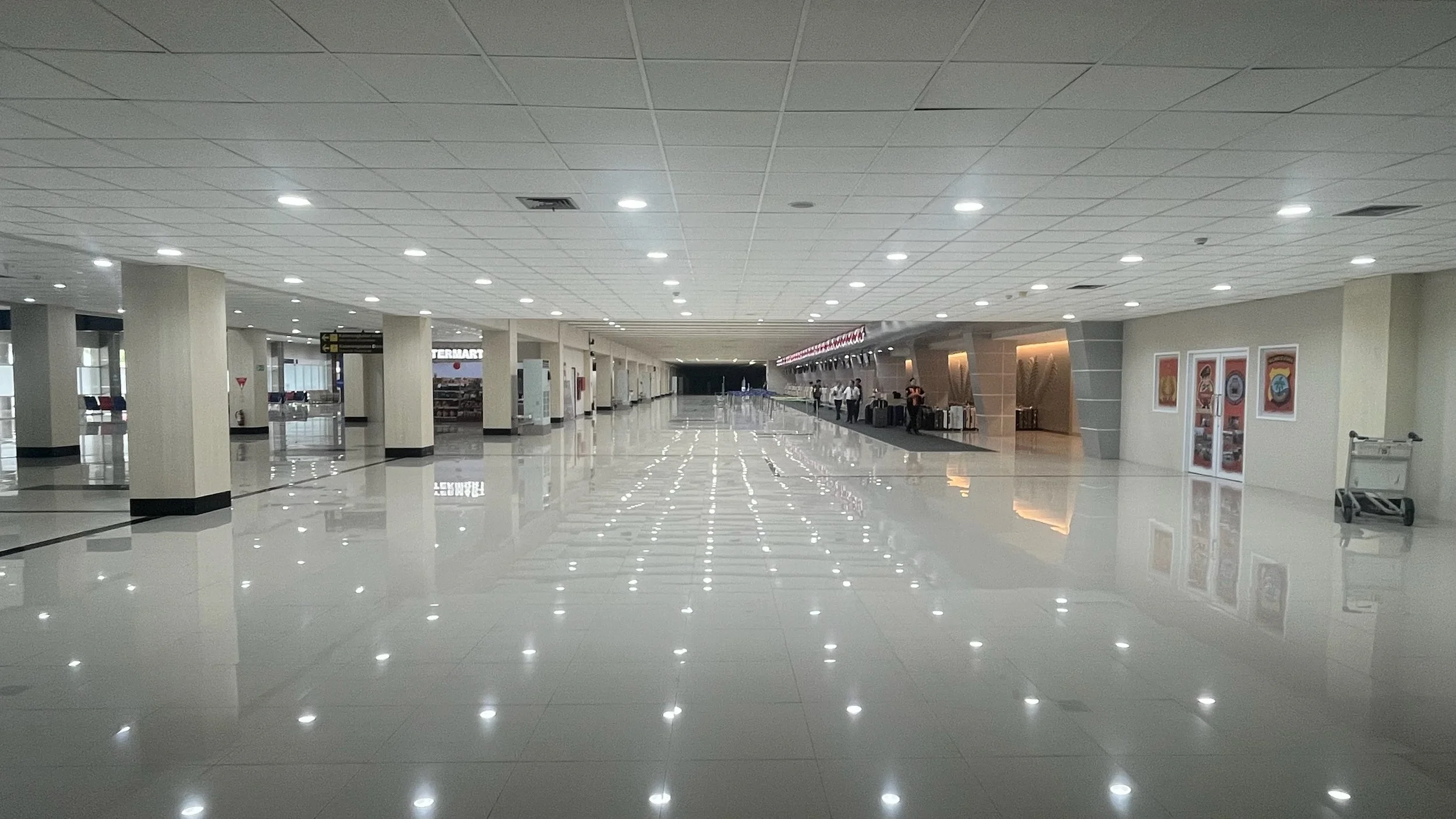 We zijn tijdens onze reis af en toe dapperen tegengekomen die over land van Zuid naar Noord Sulawesi reisden, maar het moet gezegd, ze zagen er stuk voor stuk gaargekookt en in slechte staat uit. De afstanden zijn echt niet van de poes: 13 uur op een boot, gevolgd door 10 uur in een auto, en dan ben je misschien bijna halverwege. Sommigen doen er 5 weken over, om de reistijden draaglijker te maken, maar als we dan vragen of het doenbaar is zeggen ze: “nou, t is mooi geweest, gelukkig gaan we overmorgen naar huis.” We beslissen dus om te vliegen van het noorden (Manado) naar het zuiden (Makassar). De luchthaven van Manado ziet er een beetje uit alsof iedereen alsnog over land is gegaan, maar ik heb gelukkig nog een pakje Sedistress in de rugzak. Dat moet genoeg zijn om me hierdoor te slepen