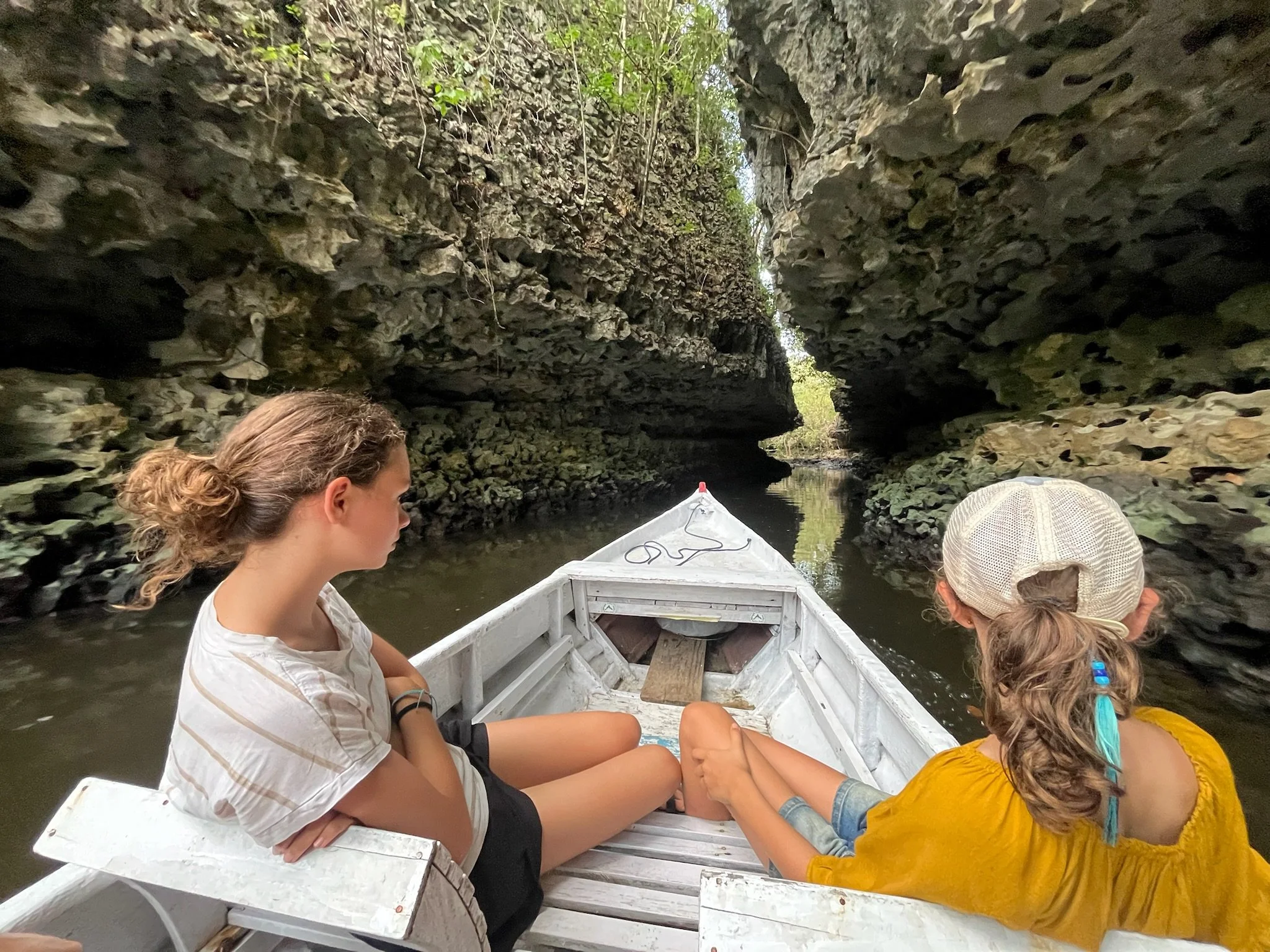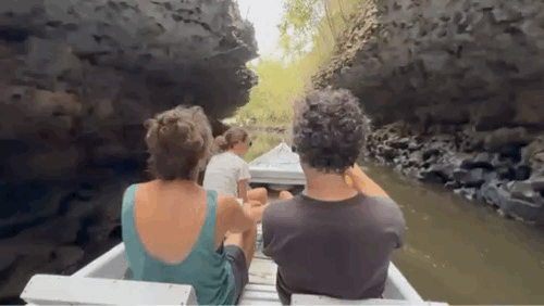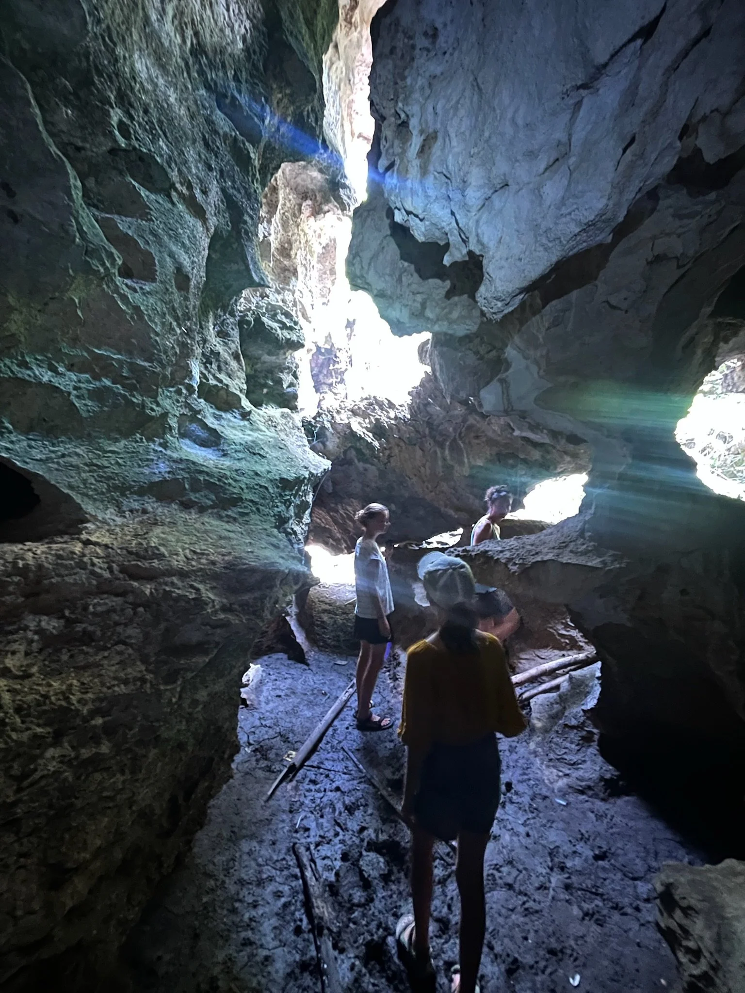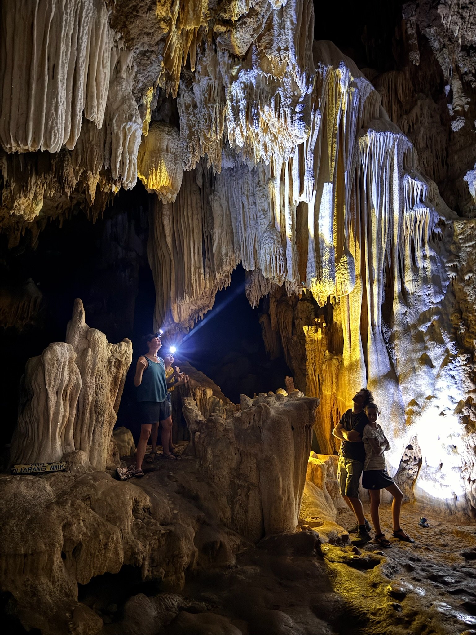 Daarnaast gaat hij ook naarstig op zoek naar de huntsman. Dat is zowaar de grootste spin ter wereld. Met zijn zaklamp schijnt hij over de donkere rotsspleten waar we door klauteren. In de schaduwen zien we het mogelijks 50 cm grote exemplaar al overal verschijnen, waardoor we nog amper een hand tegen de rotsen durven te laten steunen. Na een paar uurtjes zijn we, tot grote opluchting van de kinderen, klaar met deze ontspannende wandeling. Nasrul, die niet goed kan plaatsen waarom hij nog niet eerder werd gecontacteerd door het Magnum agentschap, heeft van de gelegenheid gebruik gemaakt om een voorraadje Insta-proof foto’s van ons gezin te nemen, terwijl we dapper door alle spleten en kieren klauterden. Somebody, please geef deze man een ticket naar Europa.