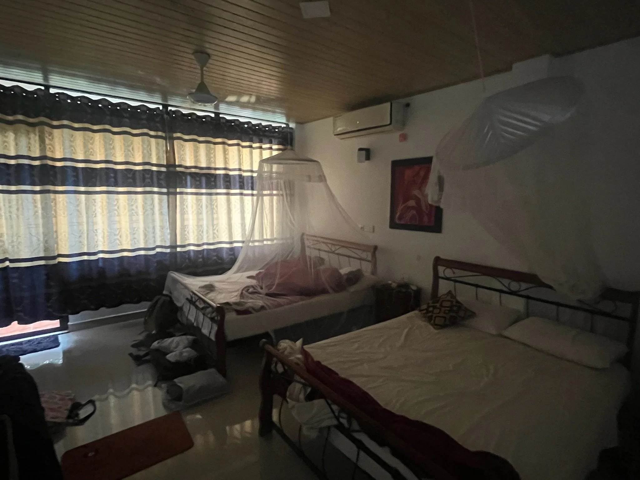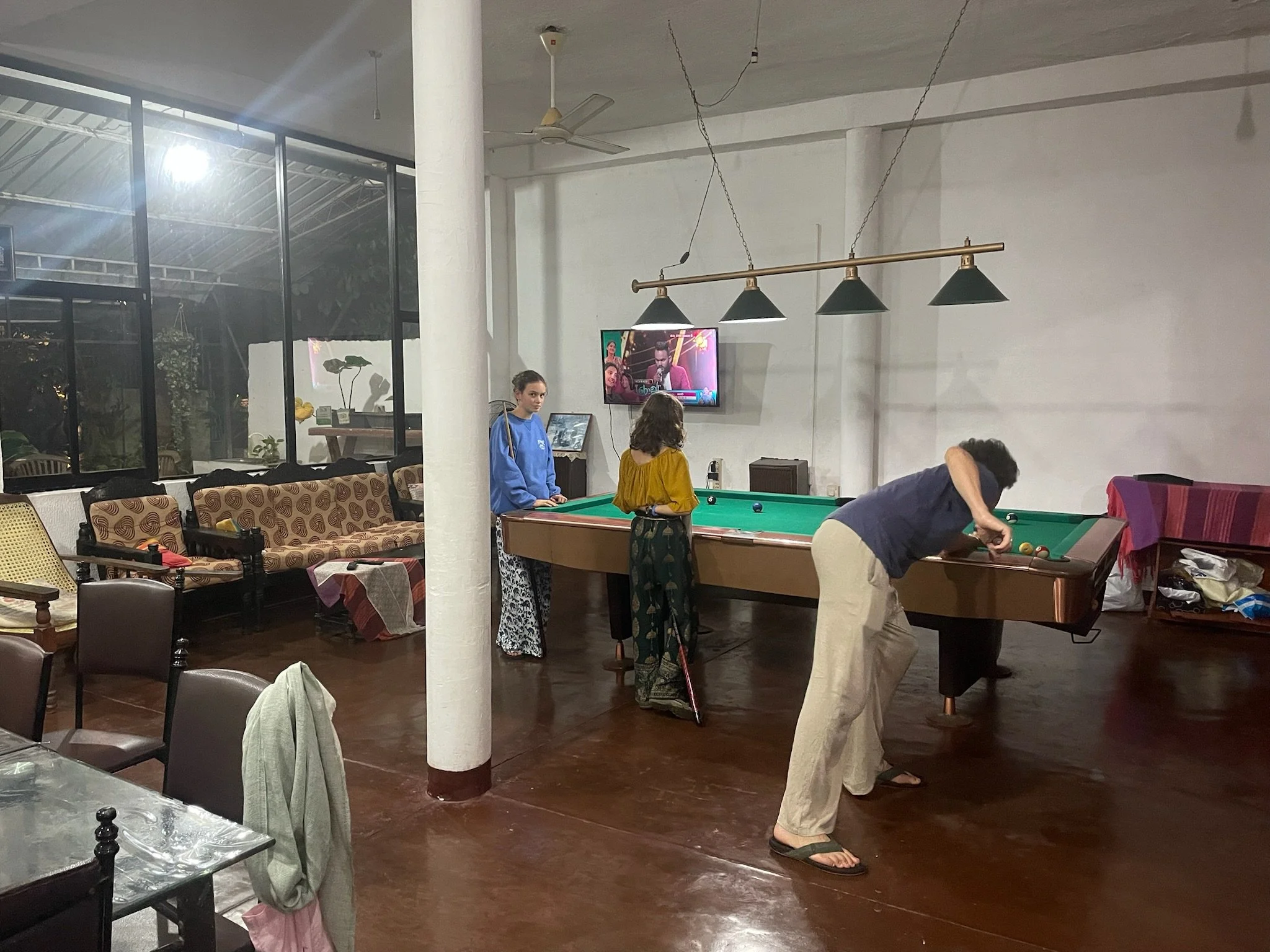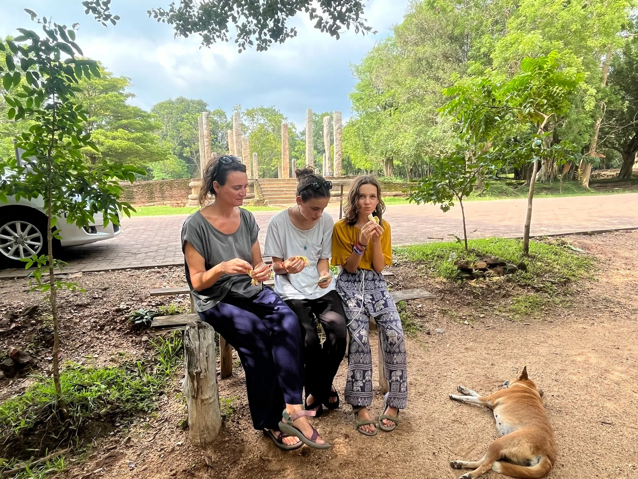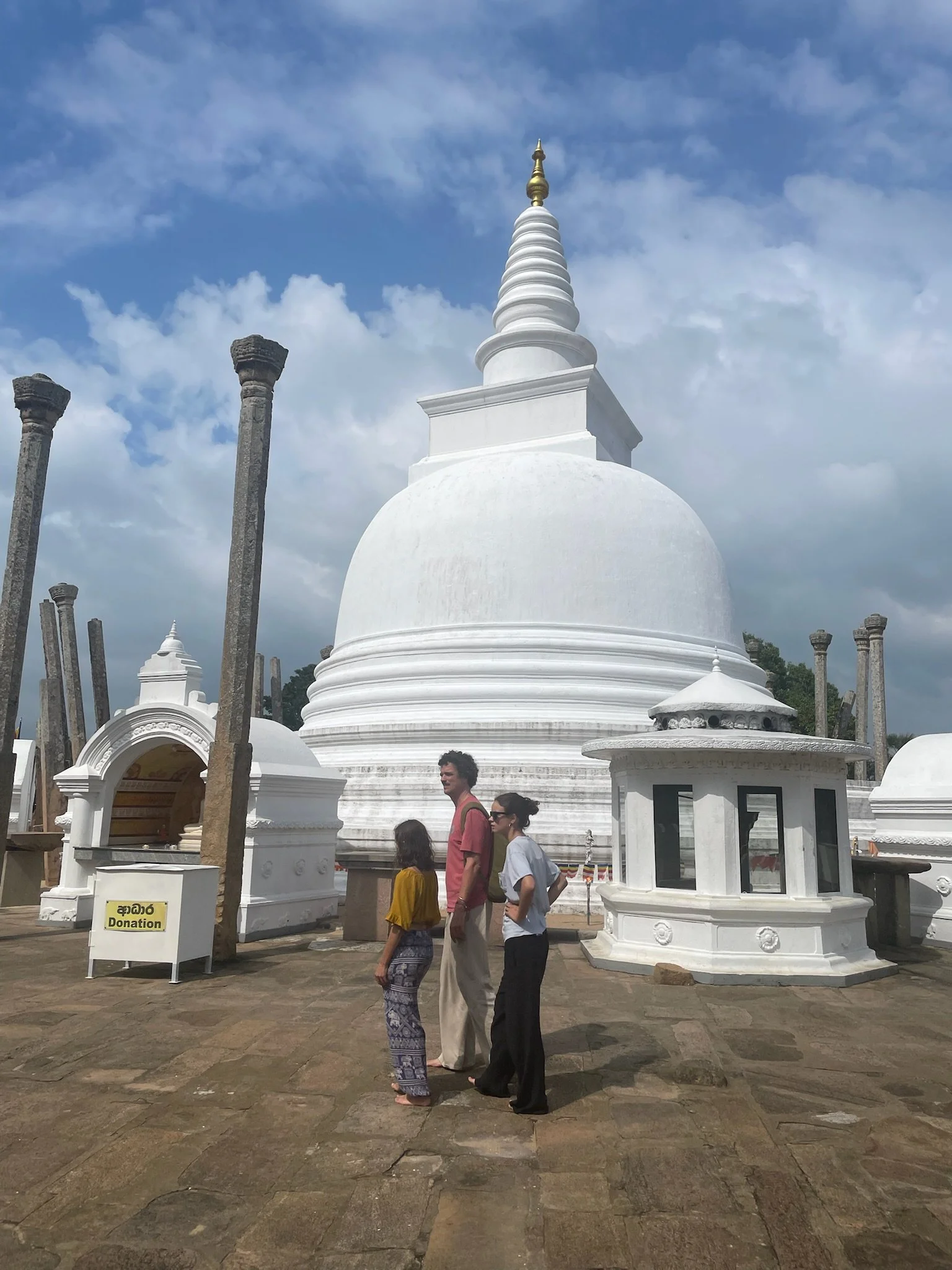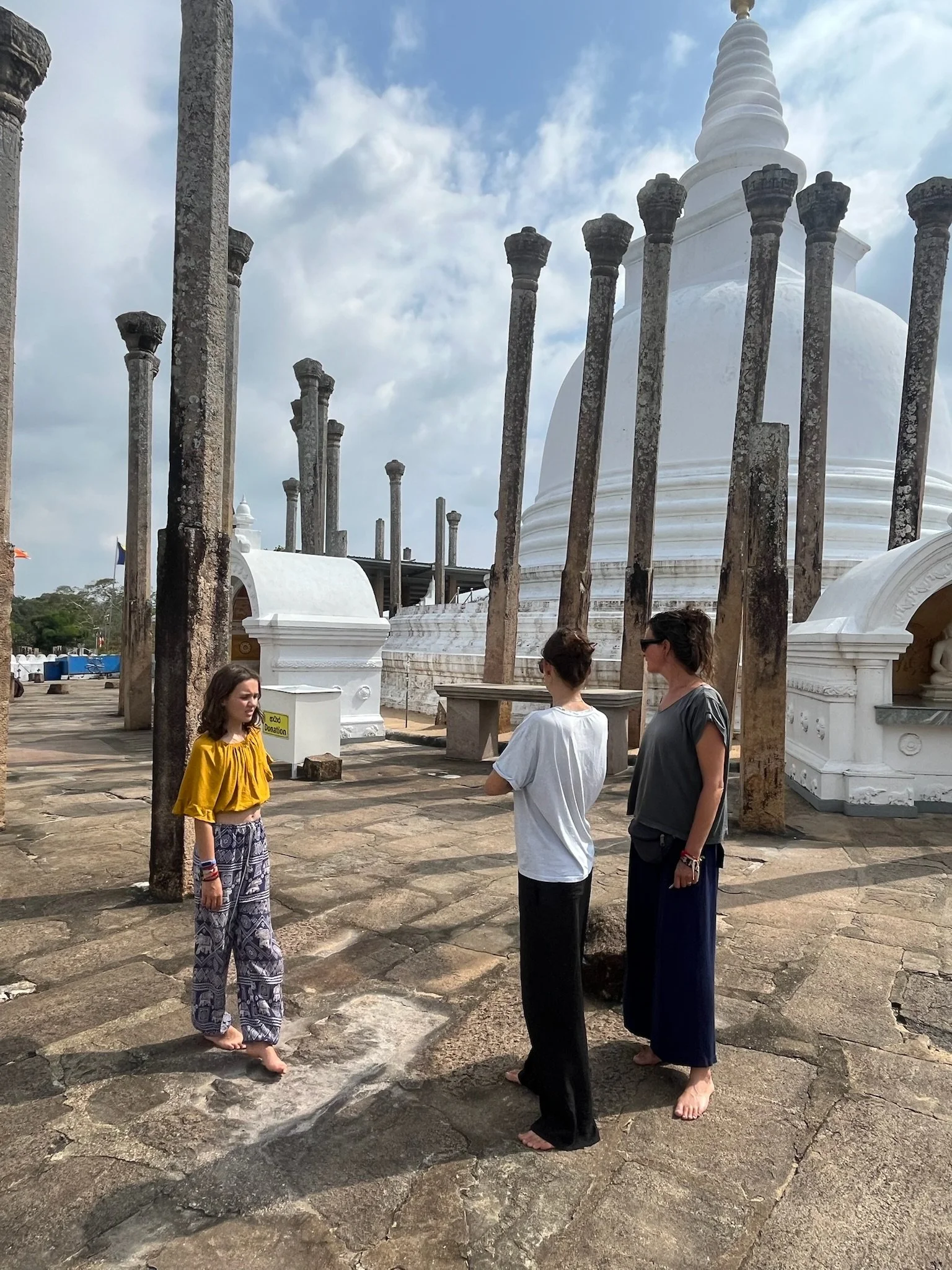 We reizen eerst naar Anuradhapura, 4 uur noordwaarts en het binnenland in. Sri Lanka is absoluut het land van de lettergrepen! het lijkt ook alsof de medeklinkers allemaal onderling inwisselbaar zijn. Arunadhapura, Anuradhapura, de Pidurangala rock, of de Pirudangala rock, ⦠het klinkt allemaal even gek. Het Lake Wave Hotel brengt ons wel weer met onze voetjes op de grond wat betreft het luxe gevoel. De benedenverdieping heeft de allures van een jeugdhuis, maar er staat een pooltafel en we maken er handig gebruik van om onze kinderen deze nieuwe sport aan te leren. De eigenaar vertelt ons over de nieuwe president, een toffe democratische peer die na 60 jaar de corrupte president heeft vervangen, maar ook over de tegenslagen die ze hier al te verduren hebben gekregen, waaronder dus twee weken geleden de vernietigende cycloon Ditwah.