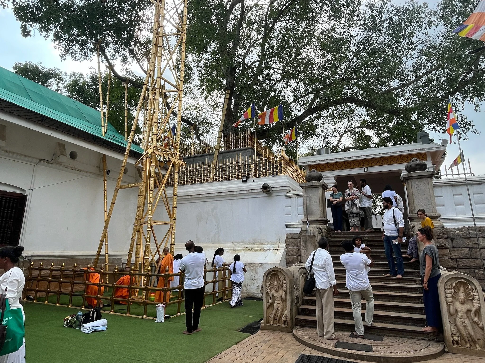 Uiteindelijk komen we ook aan bij de Sri Maha, de oudste boom ter wereld. 2000 jaar oud. Deze boom is geplant met een stekje van de originele Bodhi boom, alwaar boeddha zelf tot de verlichting is gekomen. De boom wordt liefdevol ondersteund door gouden stellingen, die samen met de boom vereerd worden.