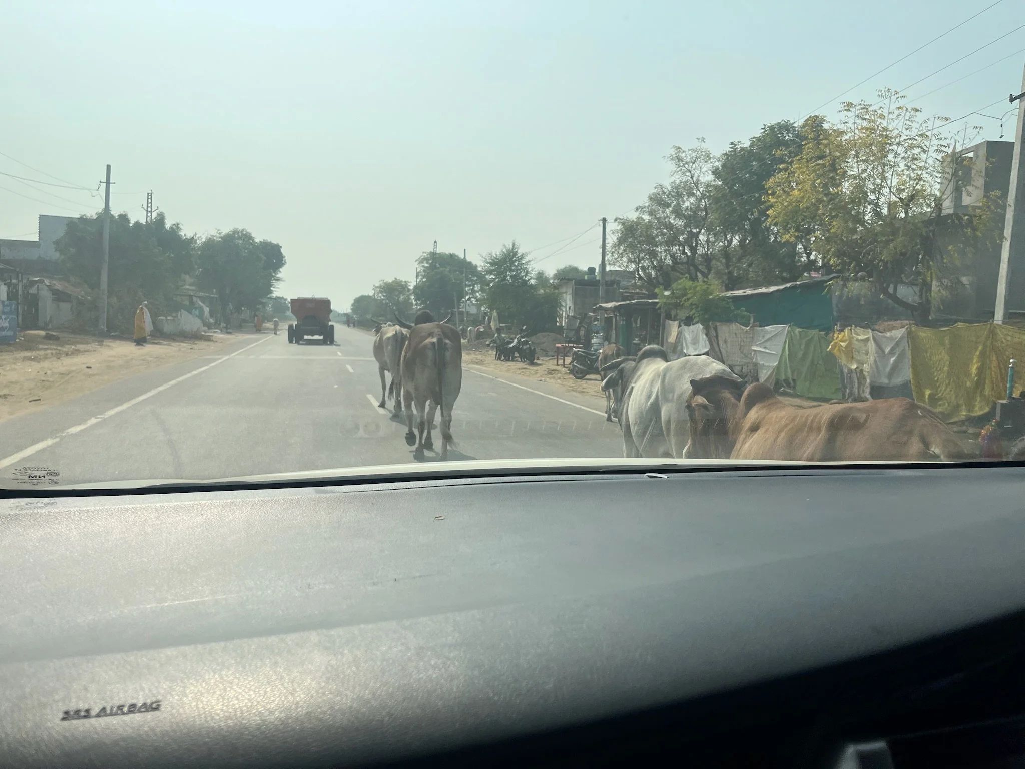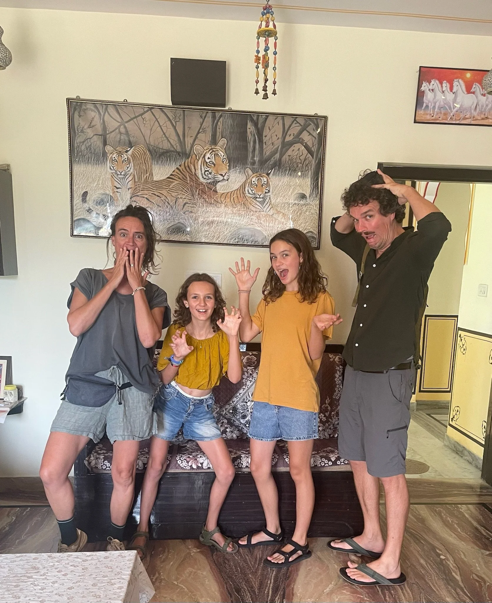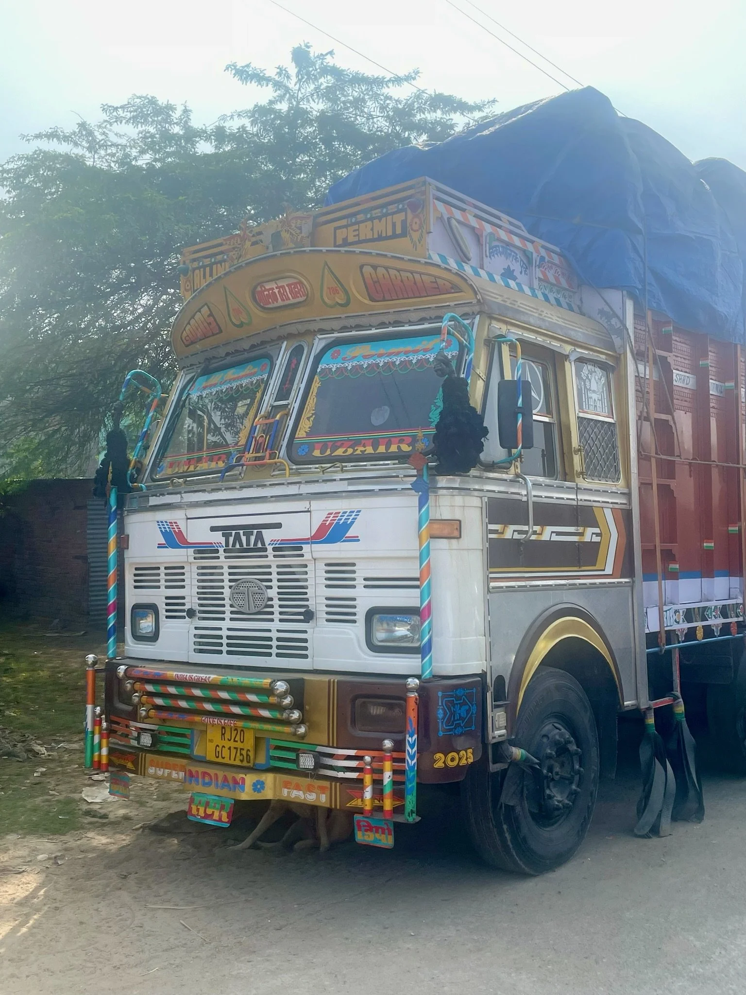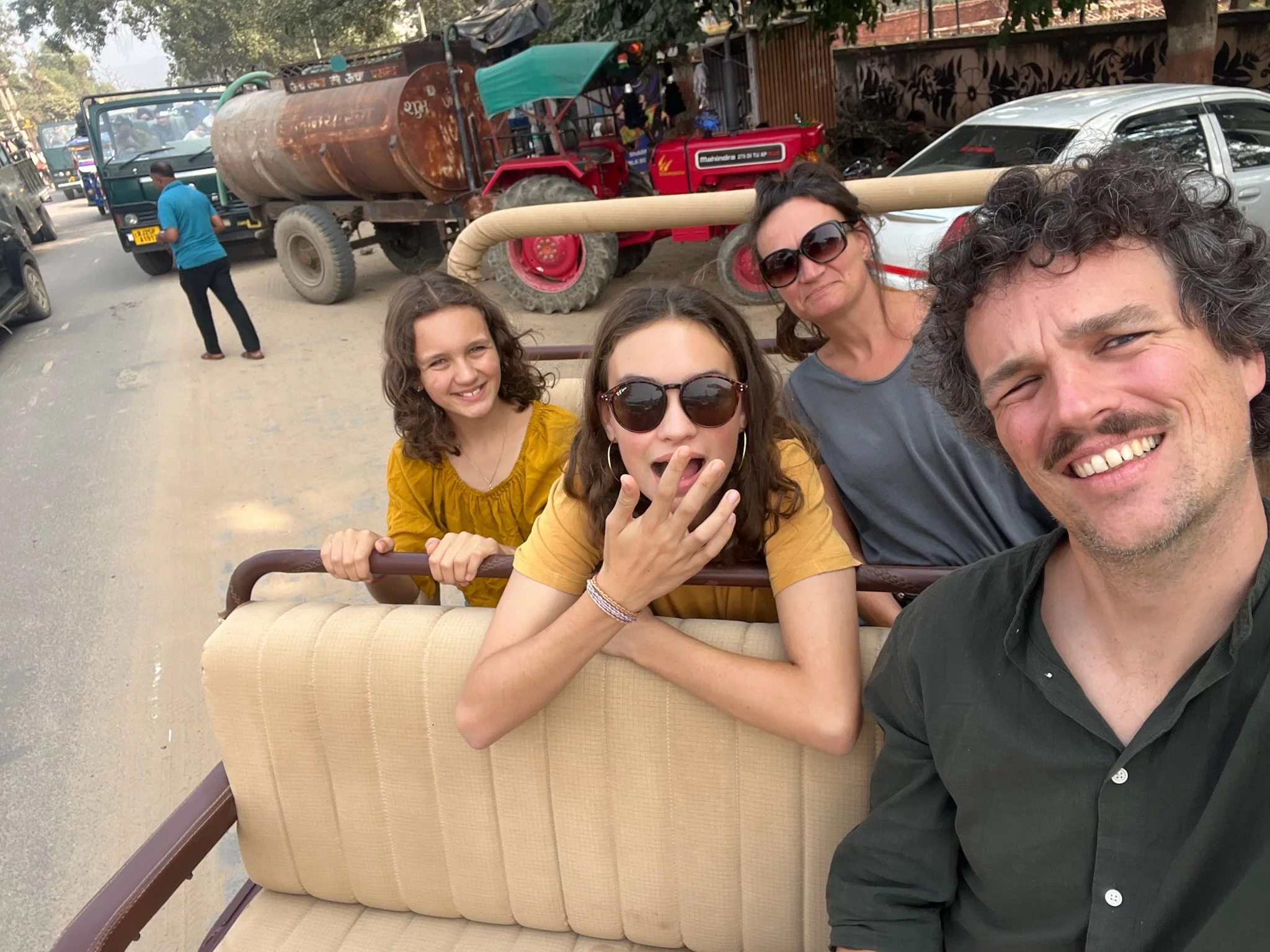Je kan in India perfect per trein reizen, maar omdat het qua safari-timings niet zo eenvoudig is, hebben we voor 5 dagen een driver geregeld die ons van Jaipur naar Ranthambore zal brengen en die ons - terwijl we dan toch bezig zijn - daarna via Bundi en een tussenstop in Chittorgargh mag droppen in Udaipur, waar we hebben afgesproken met meme toren! De rit van Jaipur naar Ranthambore duurt een dikke drie uur en onderweg kijken we naar de velden, de koeien en de camions, die ze hier altijd prachtig versieren (“Means good luck!”). Ideetje voor thuis. Onze driver heet Rohit en met Rohit klikt het niet. Hij rijdt rustig en voorzichtig, daar niet van, maar hij heeft een soort humor (ten minste, dat denken we) die we niet echt begrijpen. Hij vindt het maar niets dat Sam en Robin naar muziek luisteren terwijl hij onderweg vanalles vertelt. Je kan het hen niet kwalijk nemen, want wat hij vertelt is eigenlijk zelden echt boeiend (“This area famous for stone” … “This city also lot of stone”) en vaak ook compleet onverstaanbaar in eindeloze zinnen die nergens heen gaan (“You know old time people is bringing water here not always is for family people watertank is parents going from city land but old time different.”). Hij noemt Sam “mama” en Robin “auntie” en zegt de hele tijd dat hij hen een boete gaat geven omdat ze naar muziek luisteren. Hij lacht dan wel, maar hij lijkt het ook te menen, dus we weten niet goed wat we ermee moeten. Als Robin een paar dagen later haar kettinkje vergeet in het hotel in Bundi en daar halfweg de rit in tranen achterkomt, schiet hij ook keihard in de lach “Oooh, auntie sad, hahaha auntie cry, you buy new one, lot of shops in Udaipur.” ‘t Had niet veel gescheeld of auntie had op driver op z’n bakkie geslaan. (Het kettinkje is terecht, trouwens, dankzij de vriendelijke man van het Bundi hotel. Eat that, funny-is-not-laughing-necklace-child-old-times-Rohit.