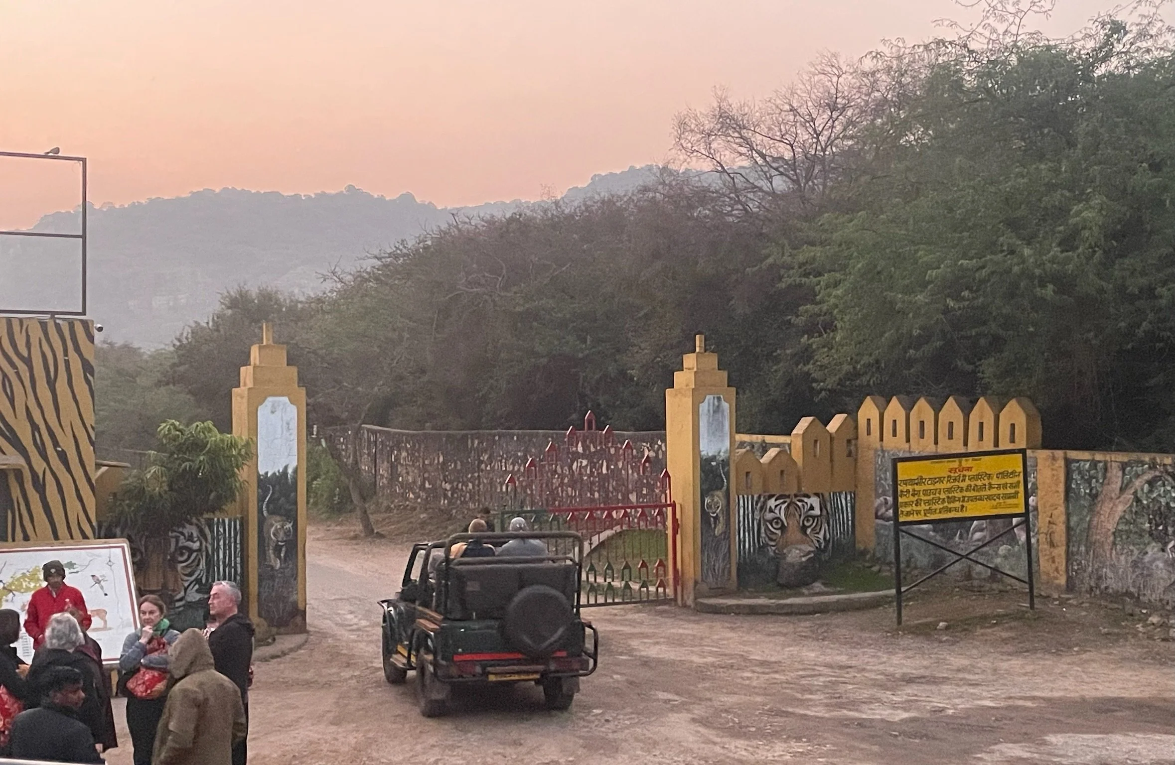 Ranthambore ligt net zoals ons Rajputana Heritage hotelletje in het stadje Sawai Madhopur. Dat is op zich eigenlijk ook een soort safaripark. De helft van de beesten die we in Ranthambore zagen, zien we daarvoor en daarna ook gewoon vrolijk op straat rondlopen: koeien, olifanten, kamelen, langurs, zwijnen, schapen,… je houdt ‘t niet voor mogelijk. En daartussen brommers, tuktuks, jeeps, canters, bussen en auto’s maar eindeloos manoeuvreren, inhalen en toeteren. Crazy. ‘s Avonds koelt het behoorlijk af. Ik ben er niet echt op gekleed en bibber me een weg naar huis in de open jeep. De verkoudheid protesteert, ik krijg wat koorts en begin al even te vrezen dat ik ook op safari mag langs de Indische gezondheidszorg , maar gelukkig is ‘t de volgende morgen al weer beter. We duffelen ons deze keer warm in als de canter ons ophaalt om 6u voor onze tweede safari. ‘t Is nog donker en er is zowaar bijna geen verkeer op weg naar Zone 2, een van de beste plaatsen om tijgers te zien. Allez, maar ‘t hoeft dus echt niet he. Bonus, bonus!