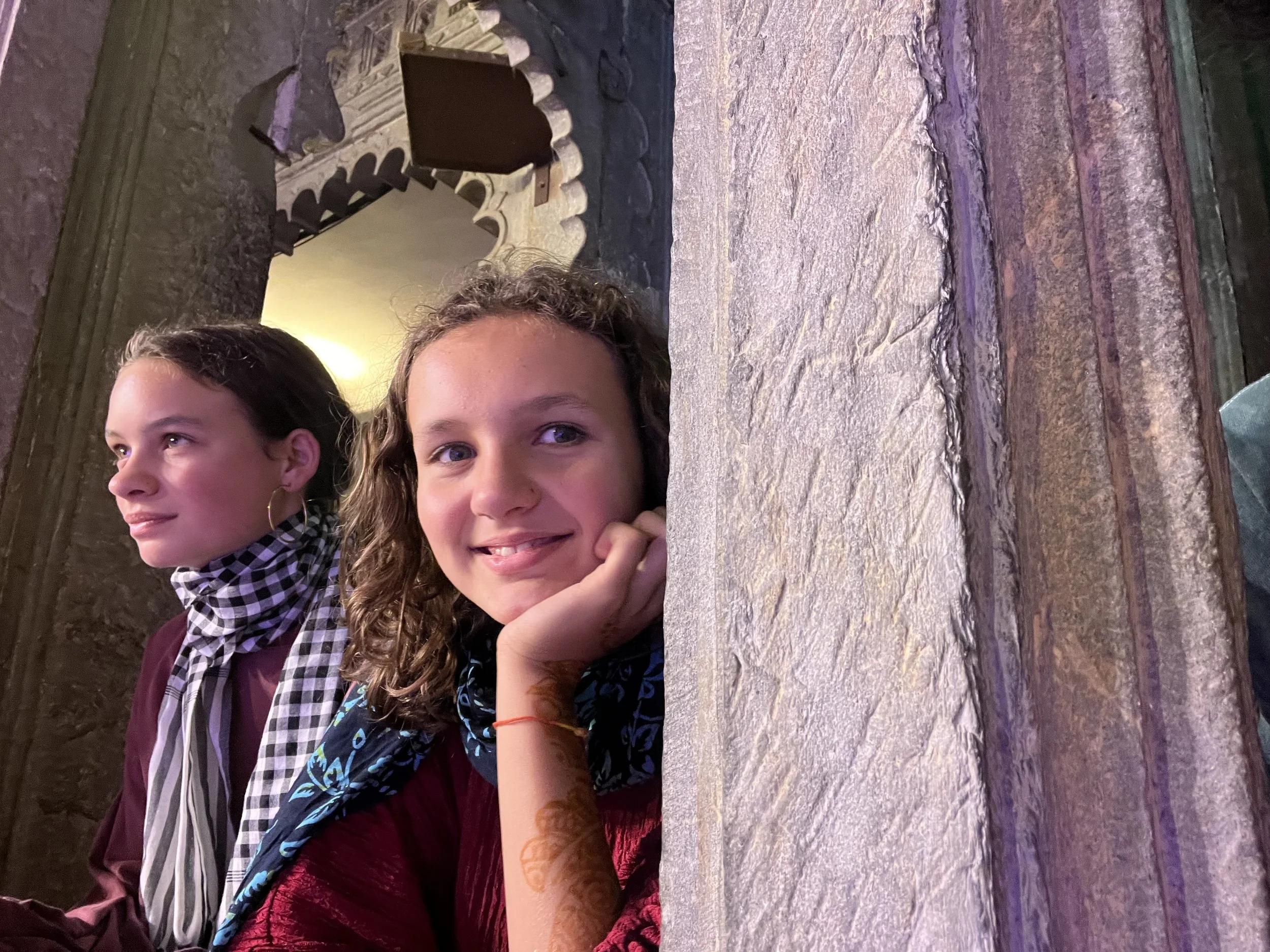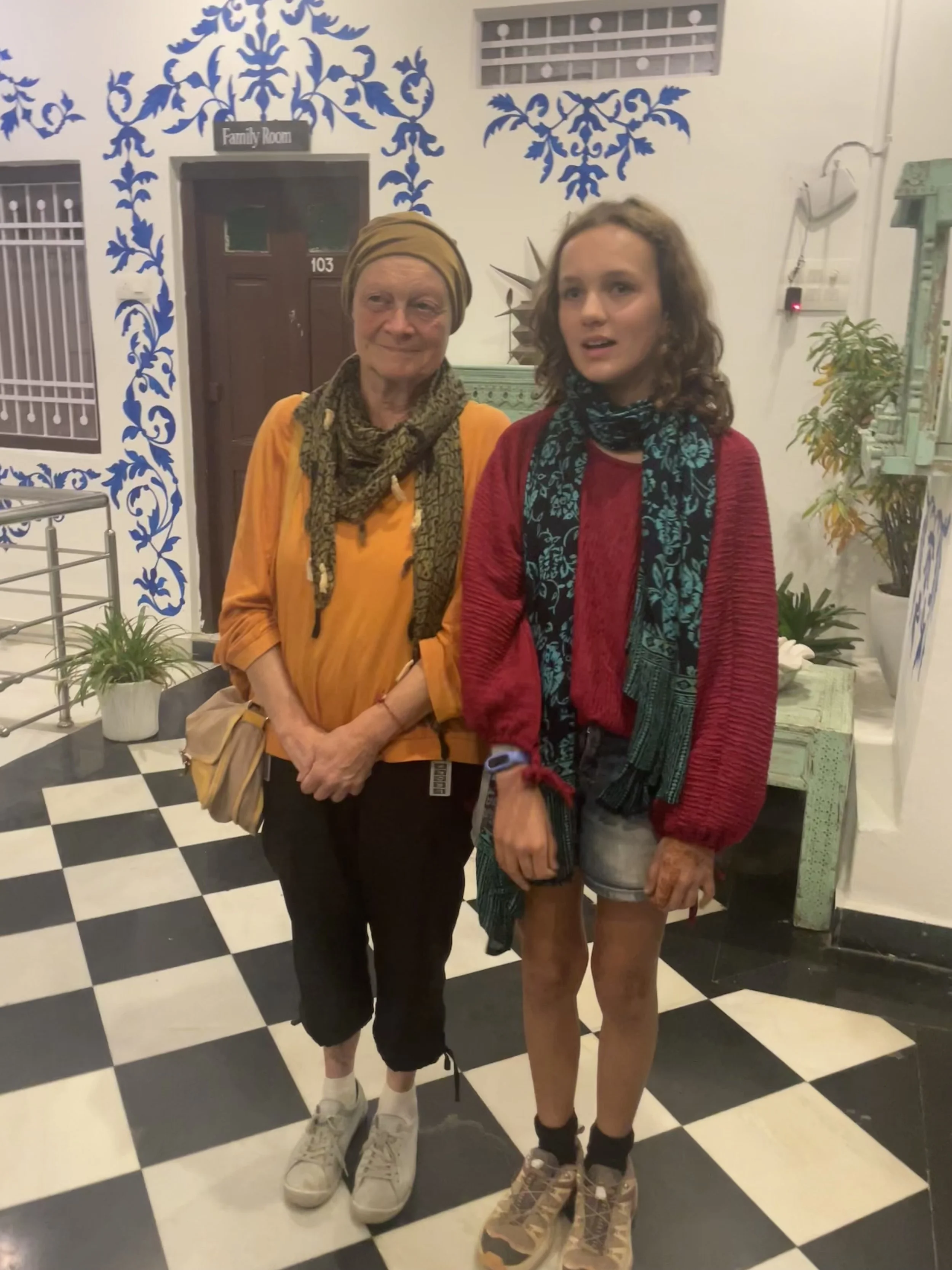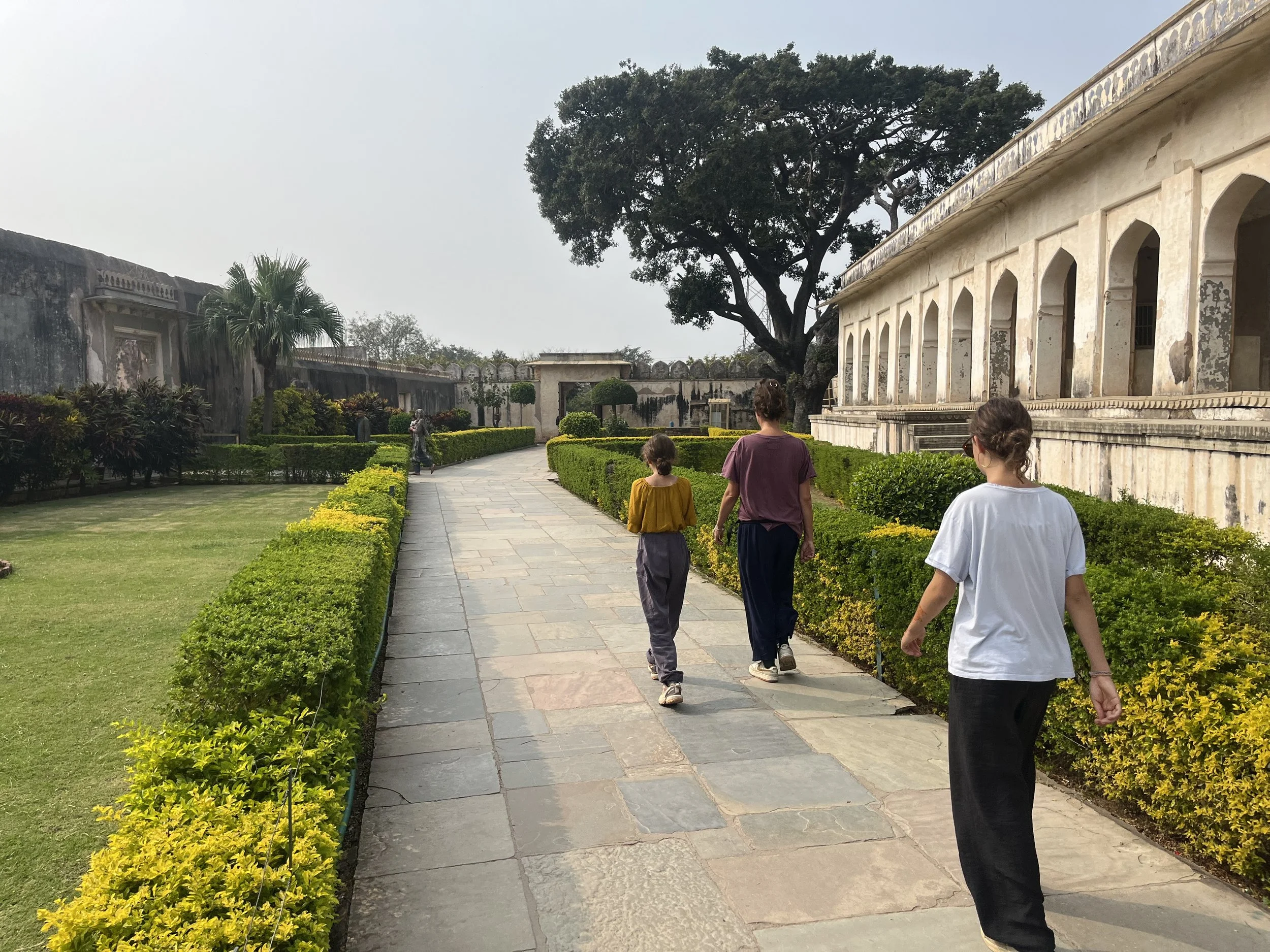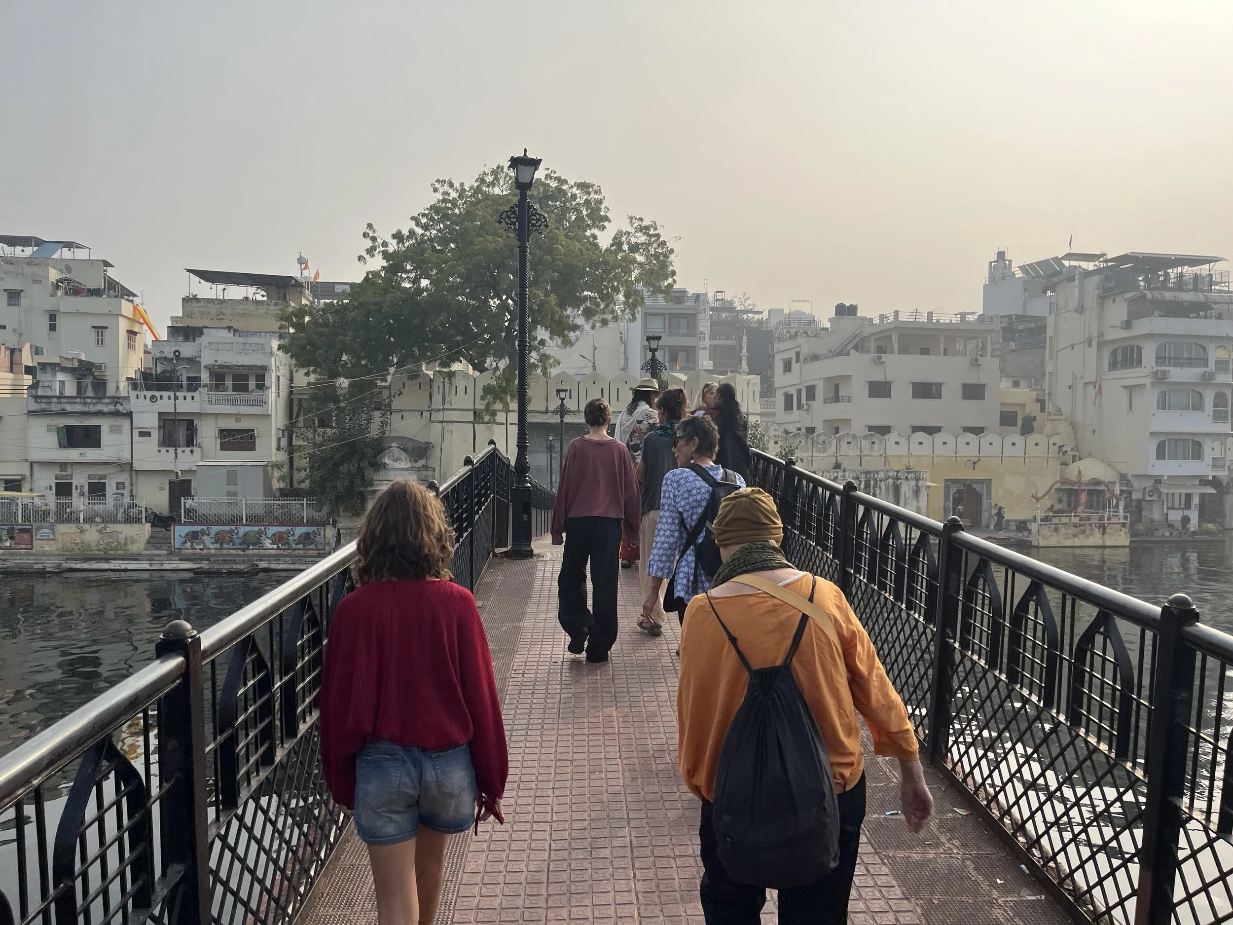 Het weerzien met Meme Toren en Erna is uiteraard de max. Ze zijn een uurtje of voor ons gearriveerd en hebben al een goed restaurantje gevonden, waar we ons met een cocktail op de rooftop installeren. Je moet het die twee wel geven, vind ik. Twee madammen van in de 70, die efkes volledig op hun eigen zonder groepsorganisaties of pakketformules naar India reizen, ik zie het er nog niet zo heel veel doen. Ze vertellen dat ze er in Delhi twee keer na mekaar zijn ingeluisd door een tuktuk-driver die hen meenam naar een plek waar ze helemaal niet moesten zijn, maar sinds die eerste kennismaking gaat ‘t als vanzelf (of zo doen ze het toch lijken). Ze regelen alles old-school, wandelen een reisbureautje binnen en wandelen weer buiten omdat ‘t te duur is. “Fourthousand rupies? Too much!” Die auto fixen ze wel ergens anders. Op een namiddag bezoeken ze het folkloristisch museum in Udaipur terwijl wij met de kinderen wat homeschoolen en tegen de avond hebben ze via een gids 6 tickets gefixt voor een traditionele dansvoorstelling die anders altijd bomvol zit. Dat de gids die hen beloofd heeft om de wachtrij over te slaan ‘s avonds vaneigens nergens meer te bespeuren is, maakt niet uit. De show is mooi, de muziek luid en de kruiken op het hoofd heel hoog.