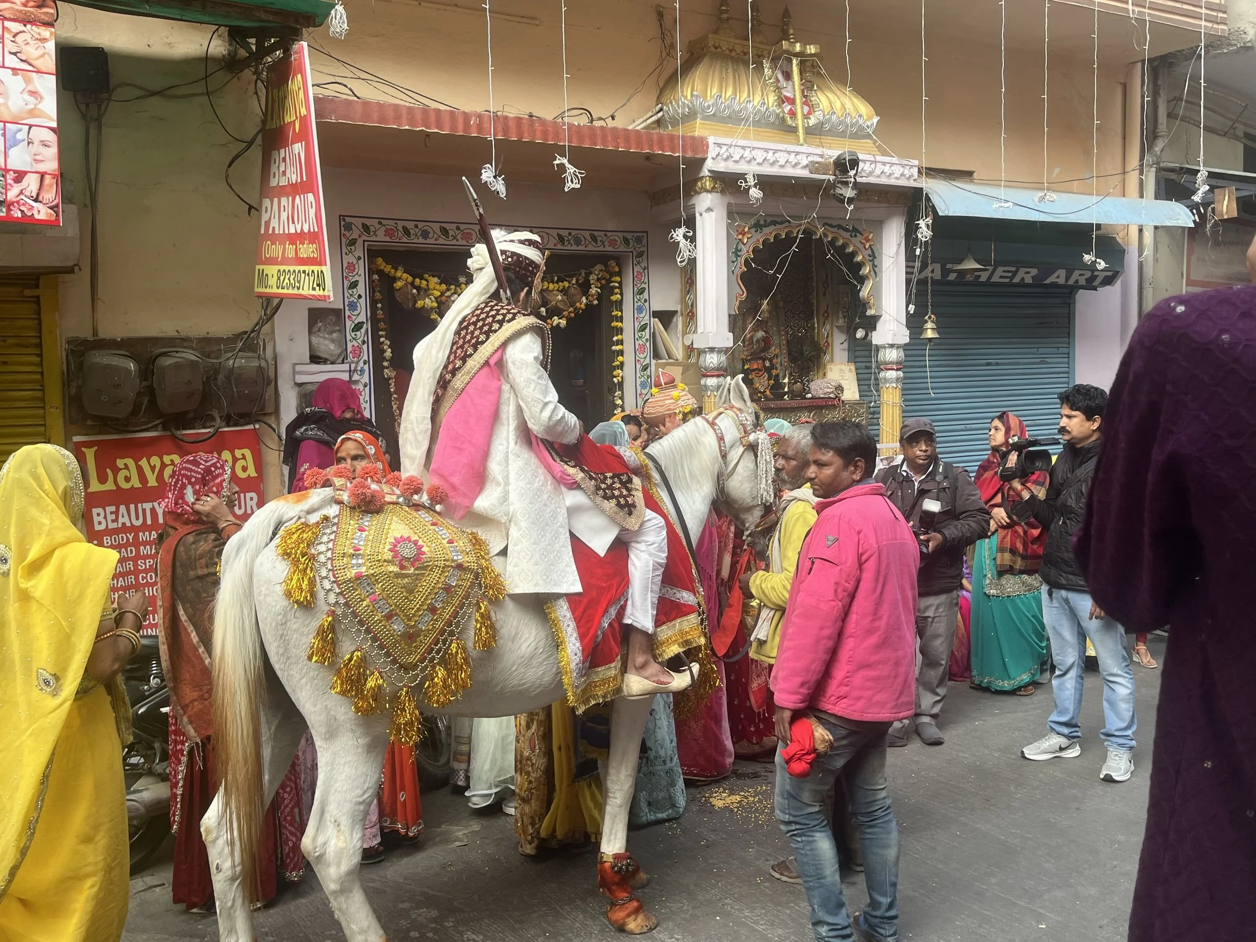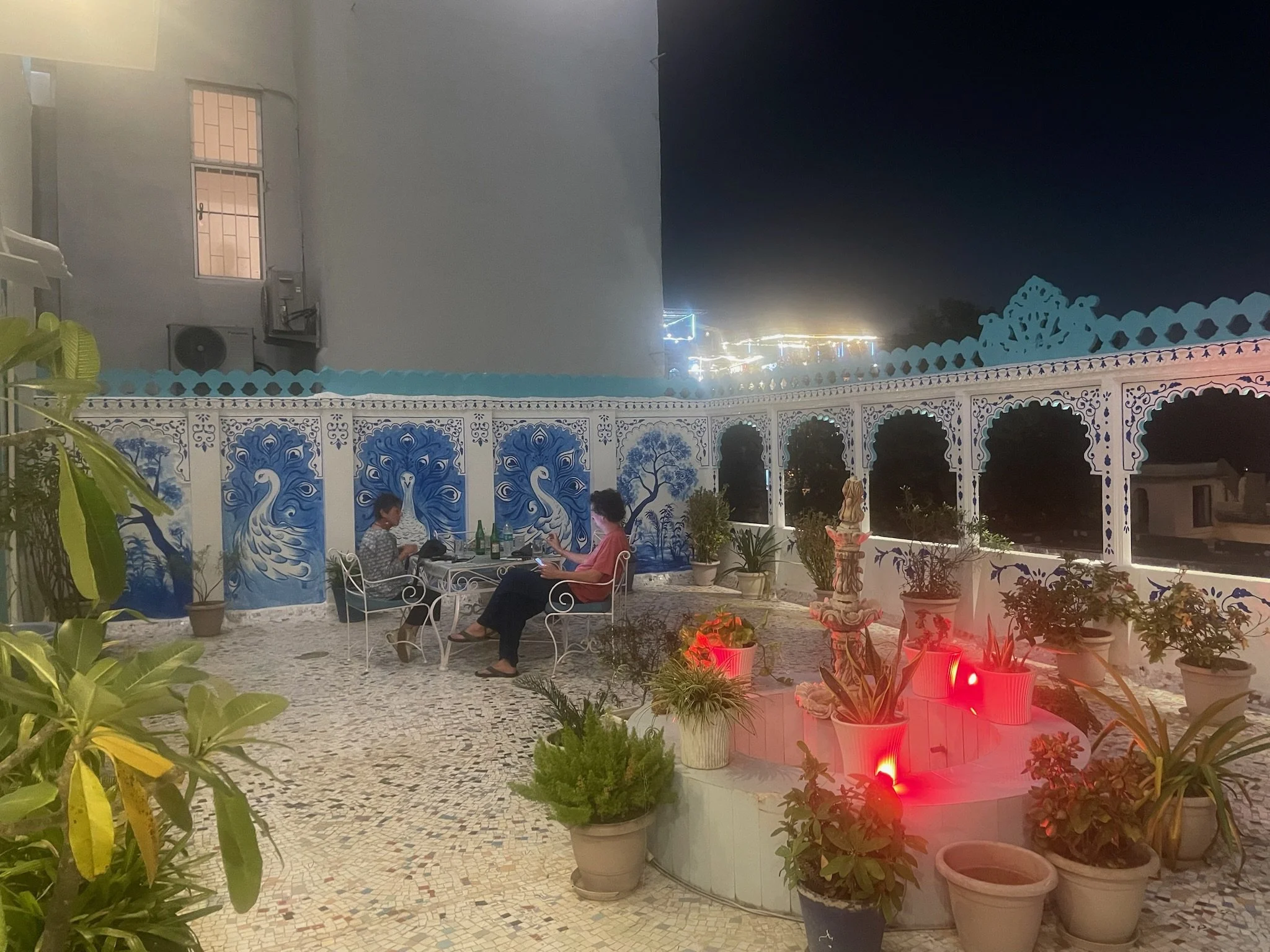 Ook ‘s avonds wordt het hier nooit echt rustig. We hebben een mooi rooftop-terras, maar als we ons daar installeren met een pintje, horen we live-muziek van op 3 terrassen tegelijkertijd, afgewisseld met vuurwerkknallen doorheen de stad. Dag en nacht passeren er ook voortdurend trouwoptochten (“Yes, it’s wedding season now.”), allemaal om ter luidst. Elke stoet heeft - naast de bruidegom op een paard en de bruid geflankeerd door een dertigtal enthousiaste danseressen - een fanfare met vooral veel trommels en achteraan ook een autootje met een generator op, waar een soort soundsystem met gigantische speakers de keyboards en elektrische instrumenten versterkt. Niemand stopt ooit met spelen, soms uren aan een stuk. ‘t Is op zich wel een tof idee om naar België te verhuizen. En dan kijken hoe lang het duurt vooraleer je last krijgt met politie, de buren en nog een belangenvereniging of vijf.
