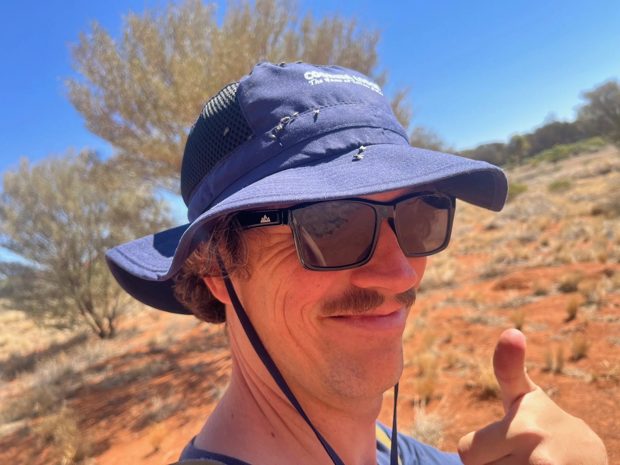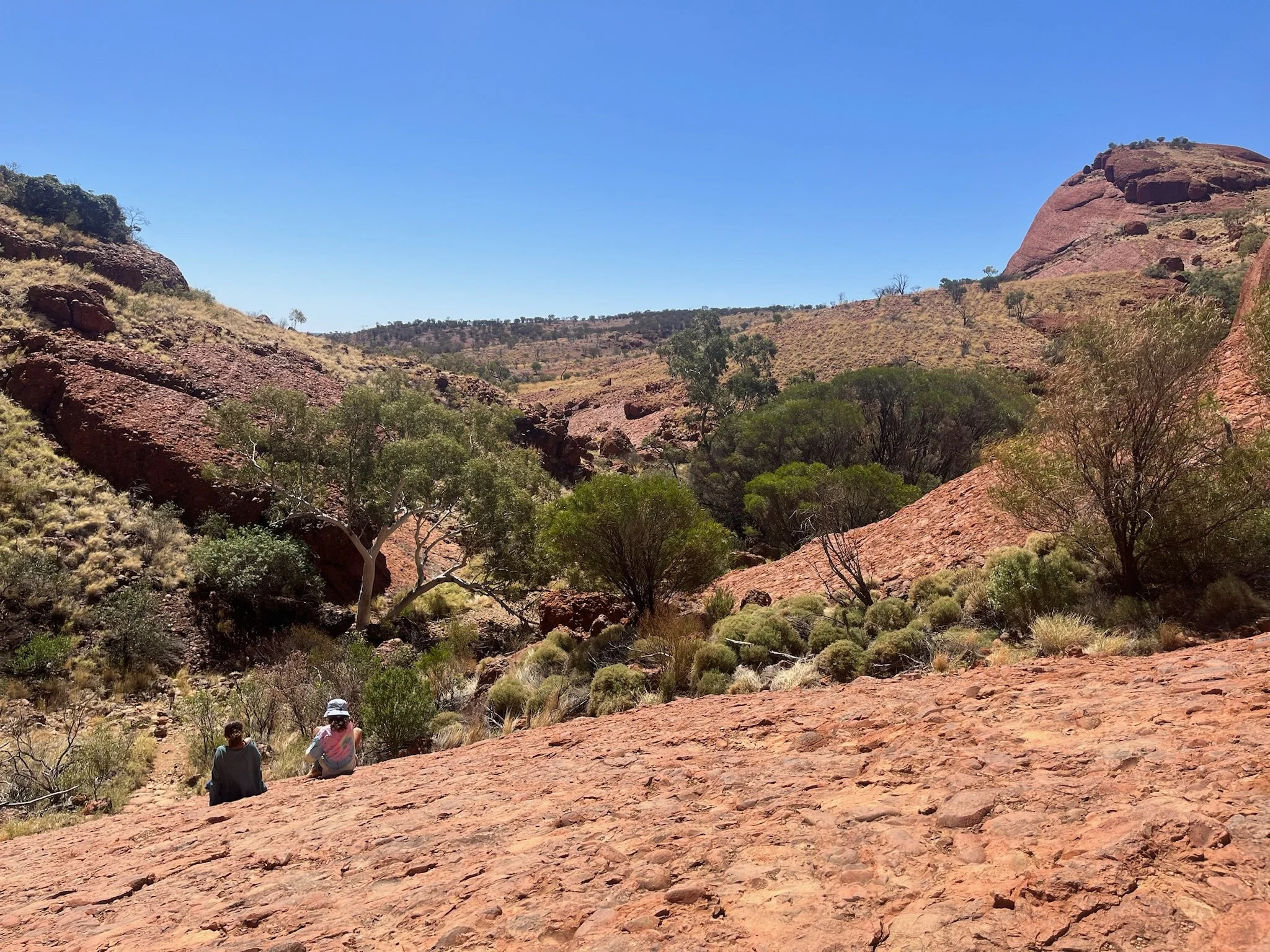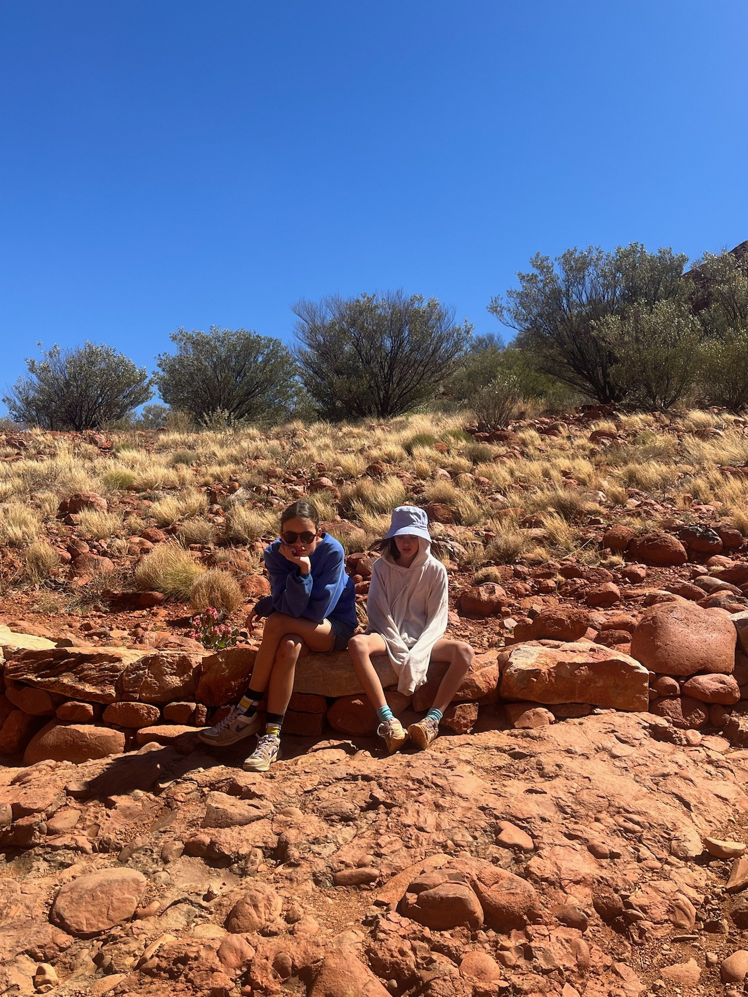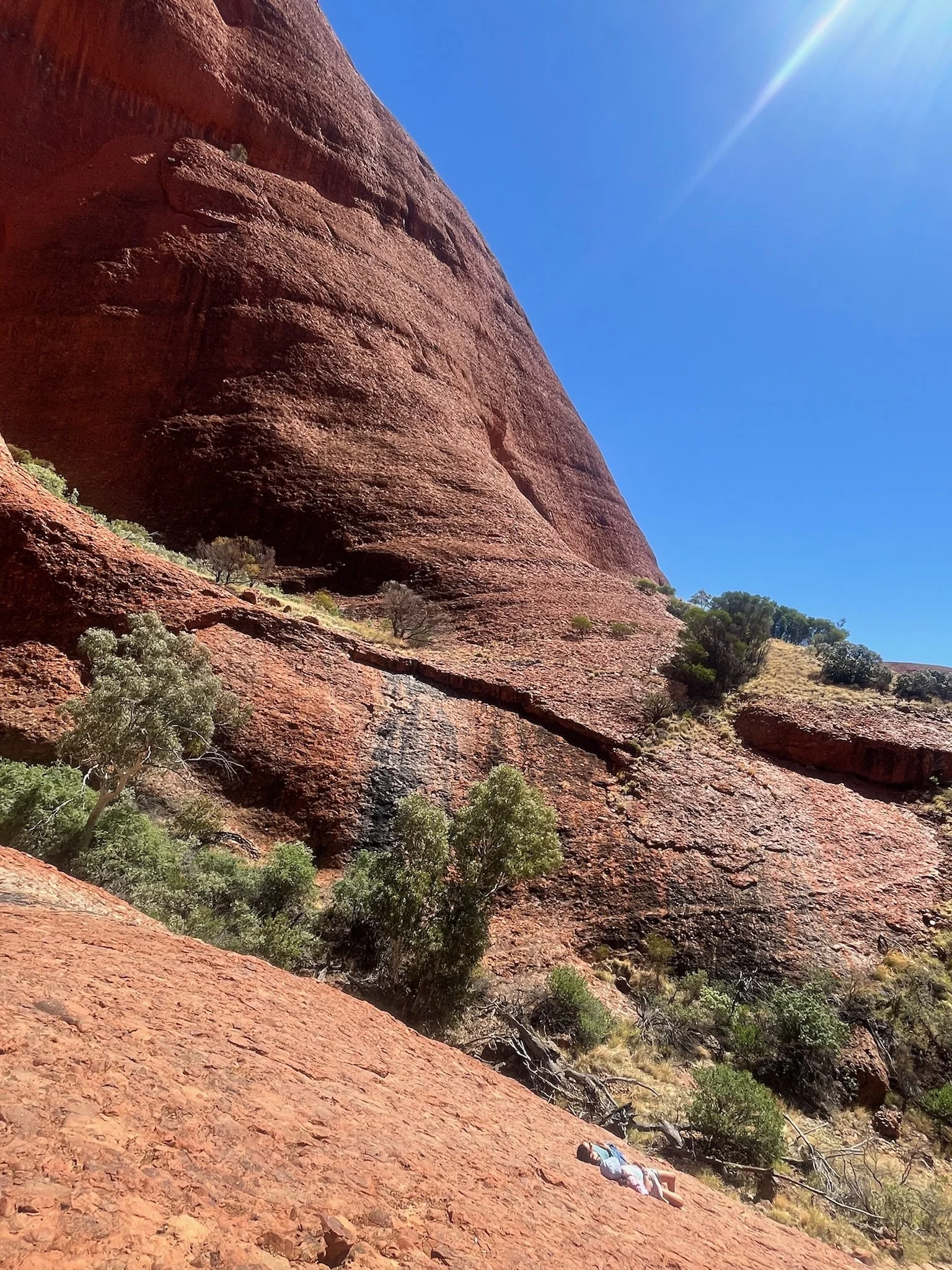 De volgende dag rijden we drie kwartier naar Kata Tjuta, de grotere, maar minder bekende broer van Uluru. Kata Tjuta (ook wel The Olga’s genoemd) betekent “vele hoofden” in de taal van de Anangu en zo ziet het er eigenlijk ook wel uit. Geen individuele berg, maar een soort op zichzelf staande rotsformatie, ontstaan in dezelfde periode als Uluru. De bekendste wandeling hier is de Valley Of The Winds en die is wat ons betreft een stuk indrukwekkender dan de vlakke loop rond Uluru. Het pad gaat op en neer en we mogen hier nog echt op de stenen klimmen (zoals dat tot in 2019 ook nog op Uluru mocht, trouwens). Het eerste deel is echt machtig tussen de metershoge rotswanden. Op de terugweg is het minder Valley Of The Winds en meer Plain Of The Flies, maar gelukkig struikelt er deze keer niemand over z’n broek en gaat het met Griet haar nek al een klein beetje beter, waardoor ze iets eleganter rond zich heen kan meppen. We rijden terug richting Uluru en in de namiddag is ‘t van souveniertjes kopen, homeschoolen en chillen. Robin verzamelt in een envelopje nog wat zand uit de woestijn en is een beetje teleurgesteld dat we niet nog 200 km verder naar het zuiden rijden, “want dan waren we eindelijk in South Australia en eens in een andere provincie!” Een beetje geduld, schat, die komt eraan; de outback hebben we na 14 dagen nu stilaan wel gezien. Tijd om het meest zuidelijke punt van deze 5-maanden reis achter ons te laten, terug te keren naar het noorden en vervolgens af te slaan naar rechts. Een andere provincie, ‘t zal wel zijn, Queensland, here we come!